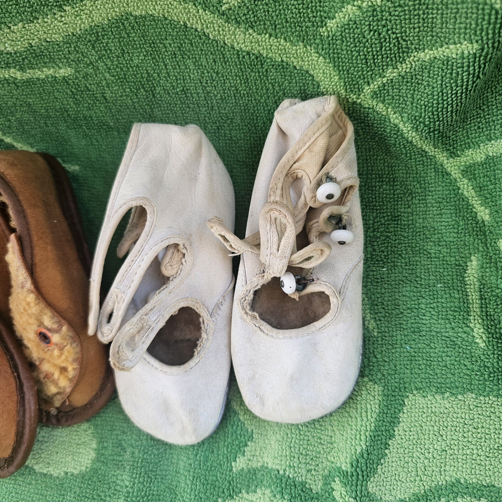 как выглядит Antique Baby Shoes 2 Different Models Leather And Velvet So Cute Good фото