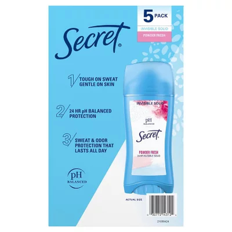 Secret Invisible Solid Antiperspirant Deodorant - Powder Fresh, 2.6 oz, 5 Pack