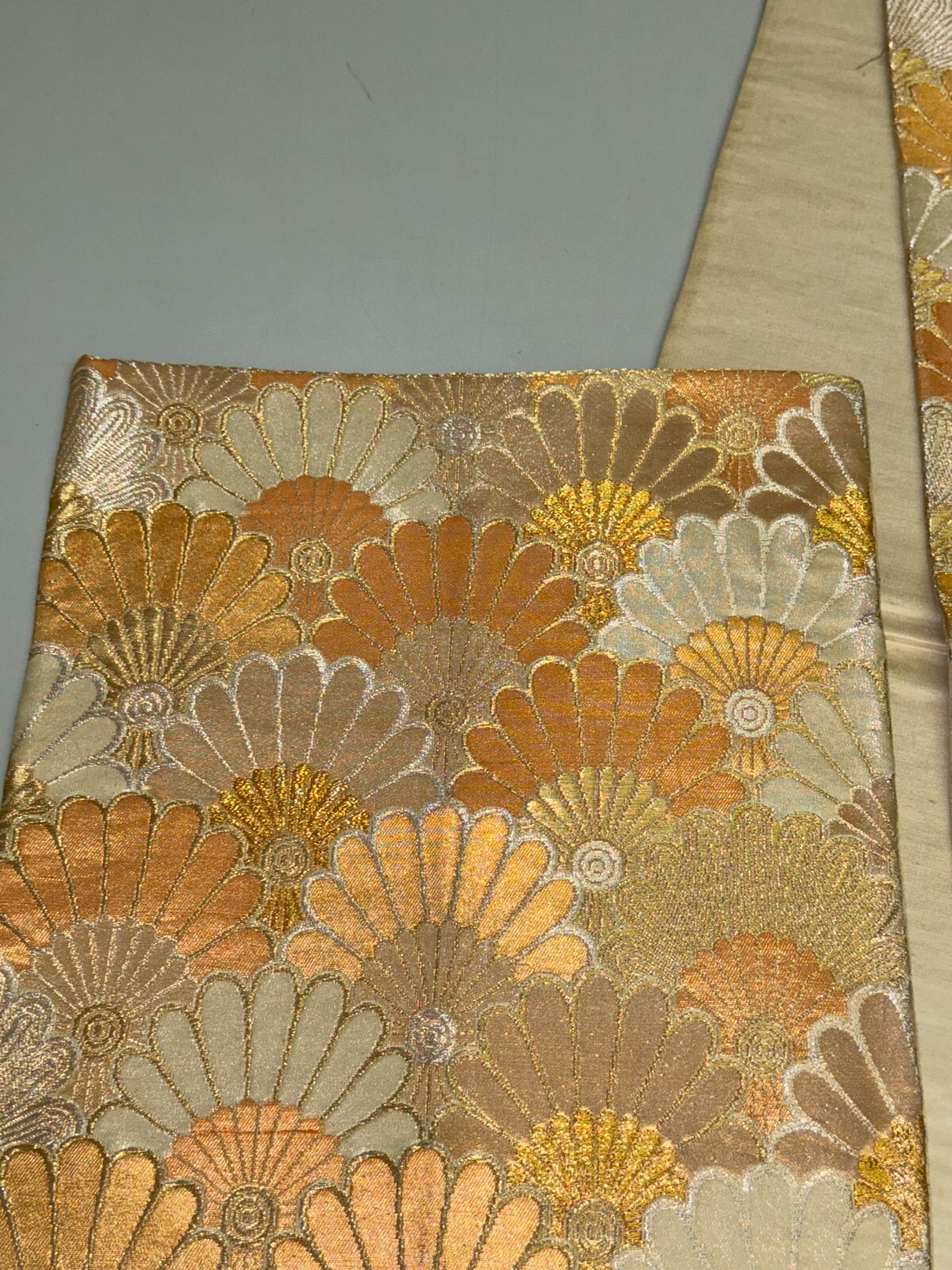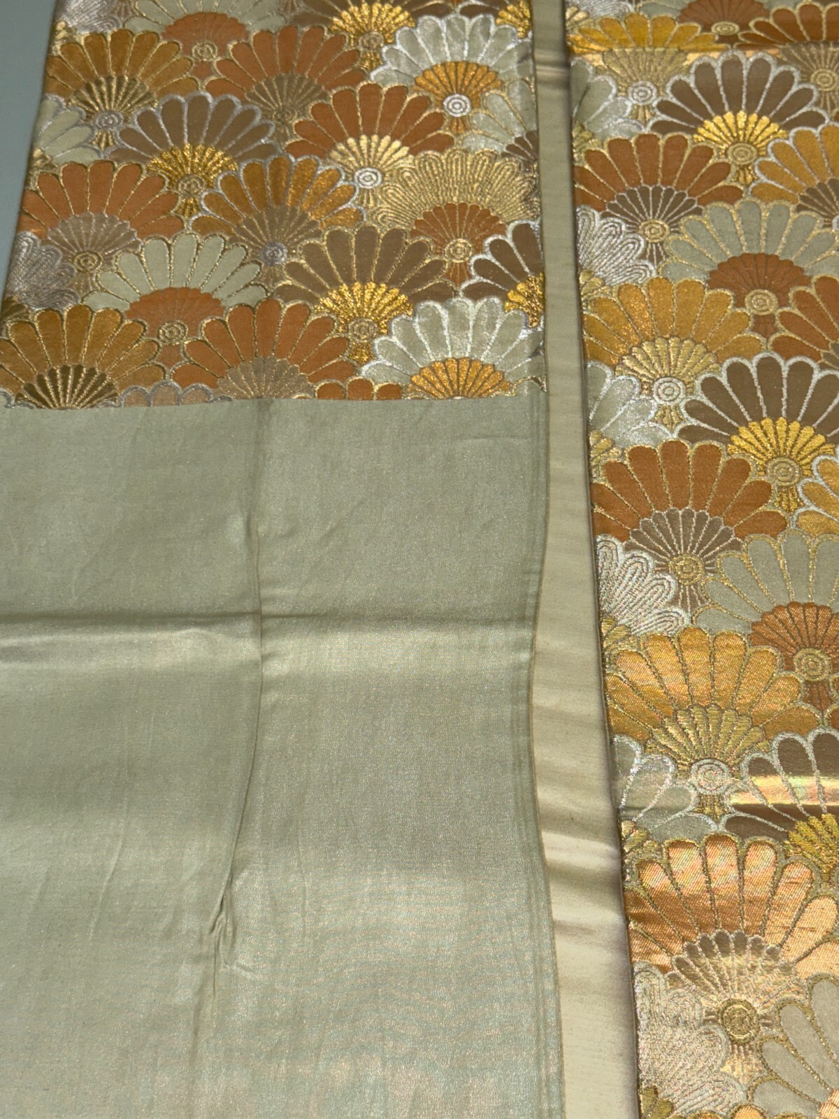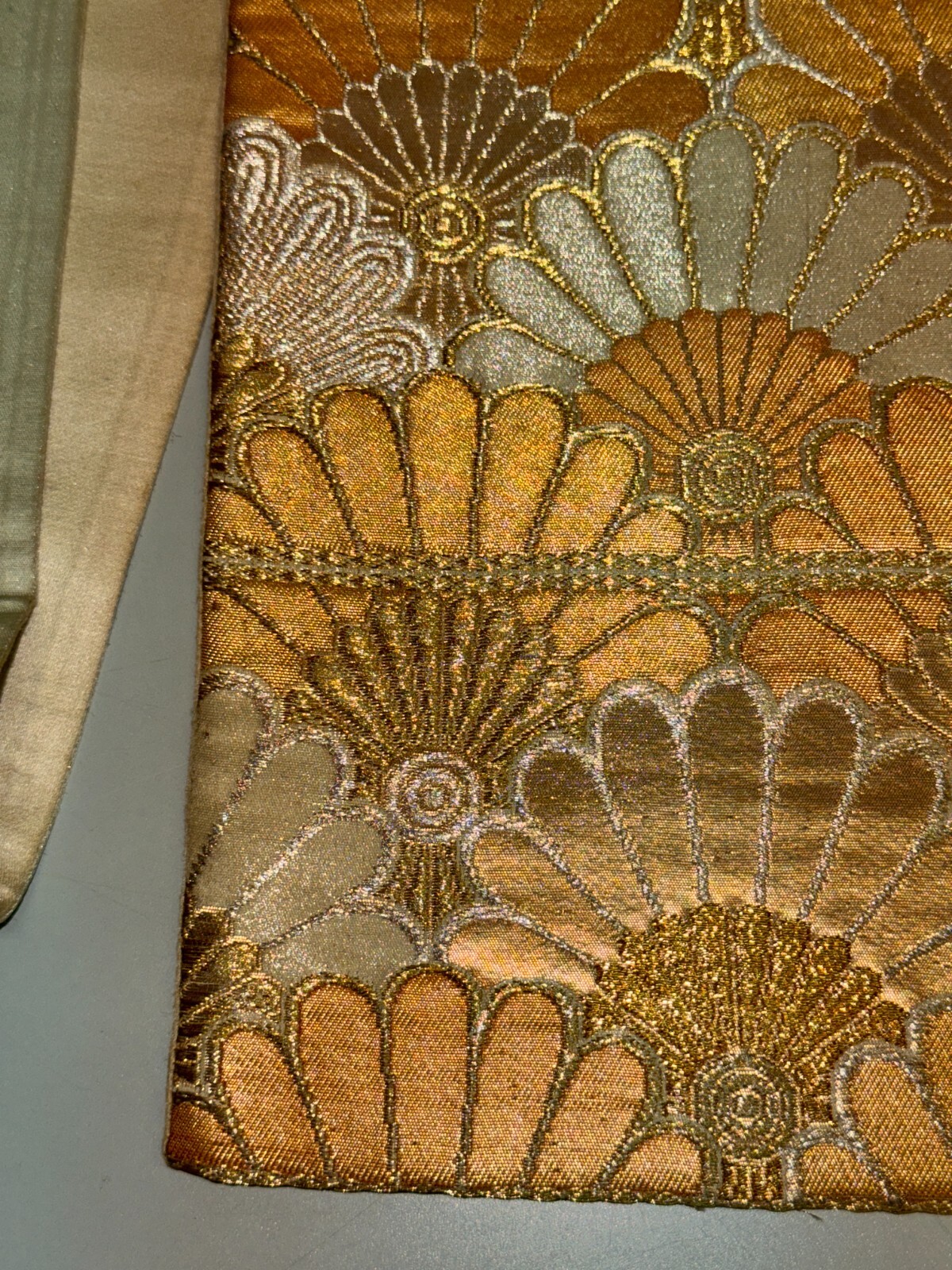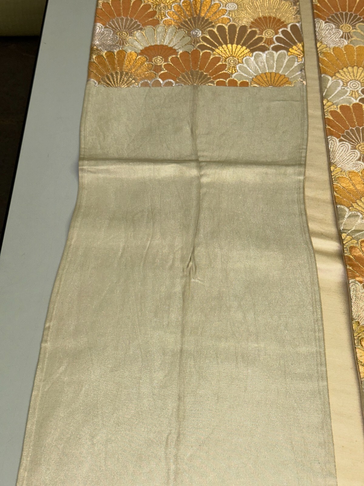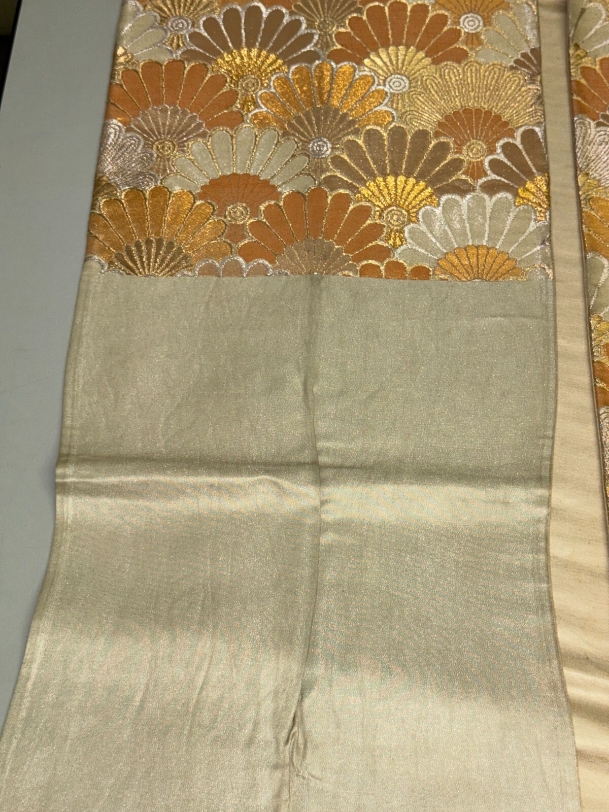 как выглядит Japanese Vintage Kimono Fukuro Obi silk gold expensive embroidery 155.9x11.8in фото