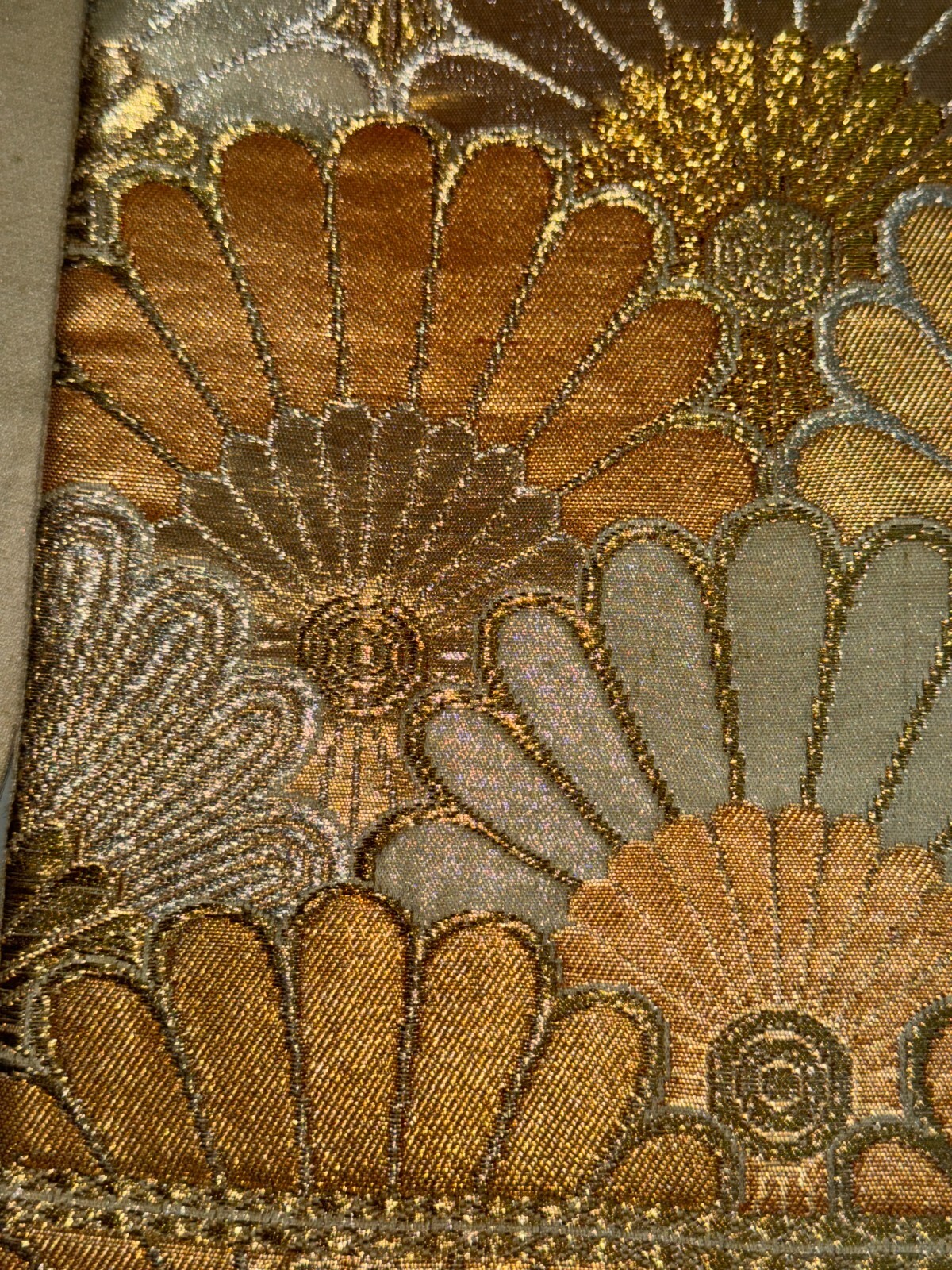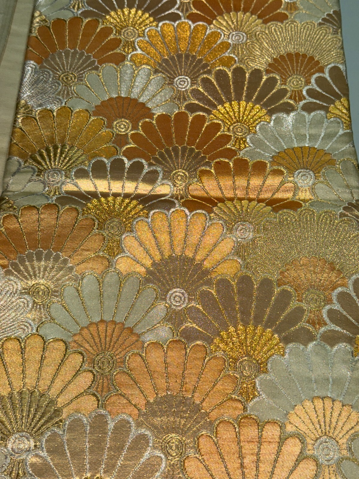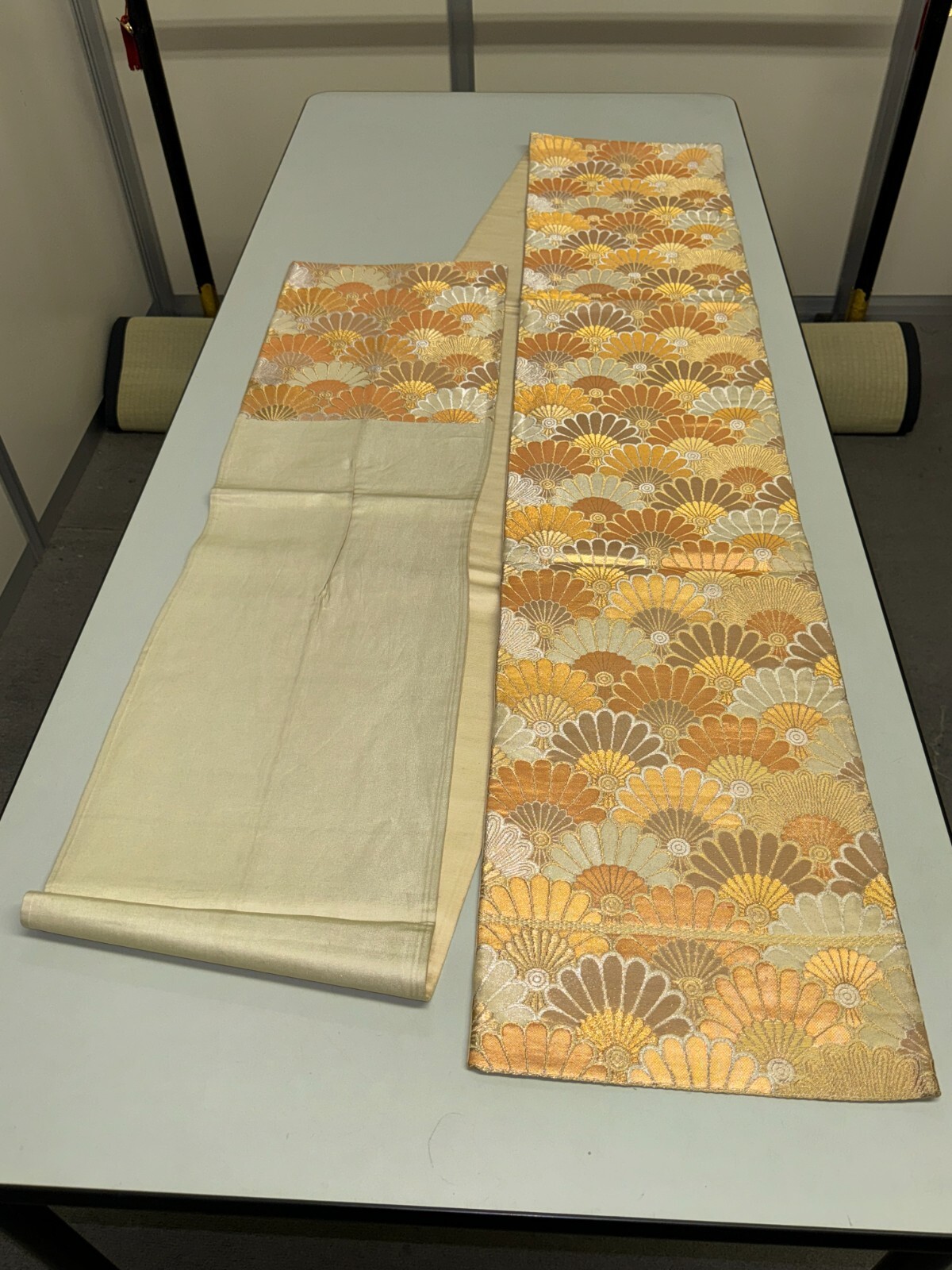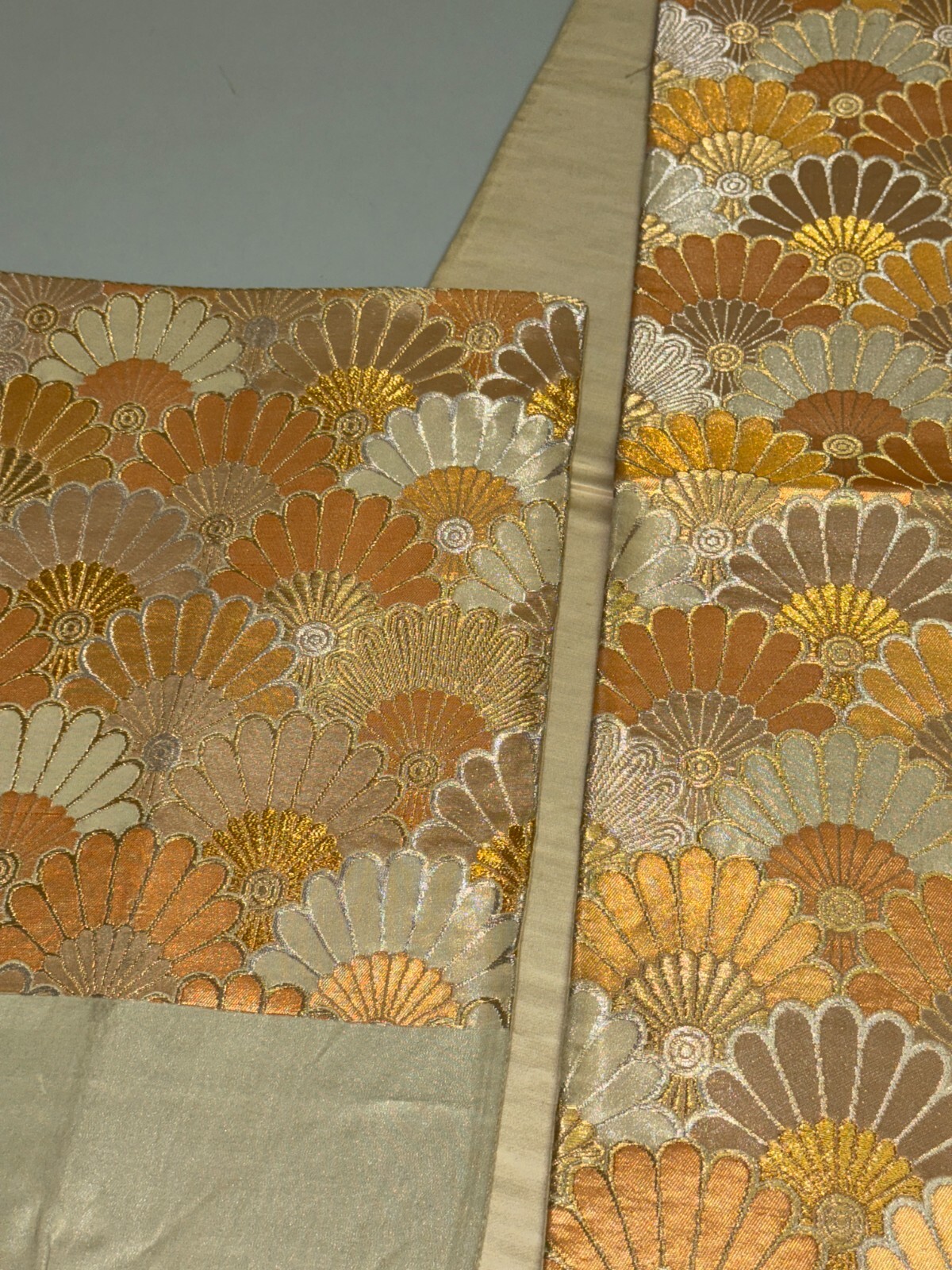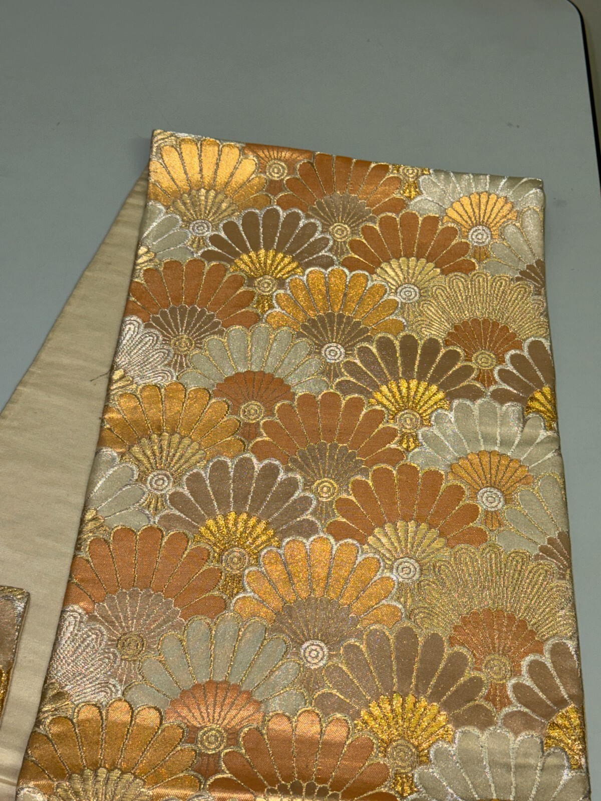 как выглядит Japanese Vintage Kimono Fukuro Obi silk gold expensive embroidery 155.9x11.8in фото