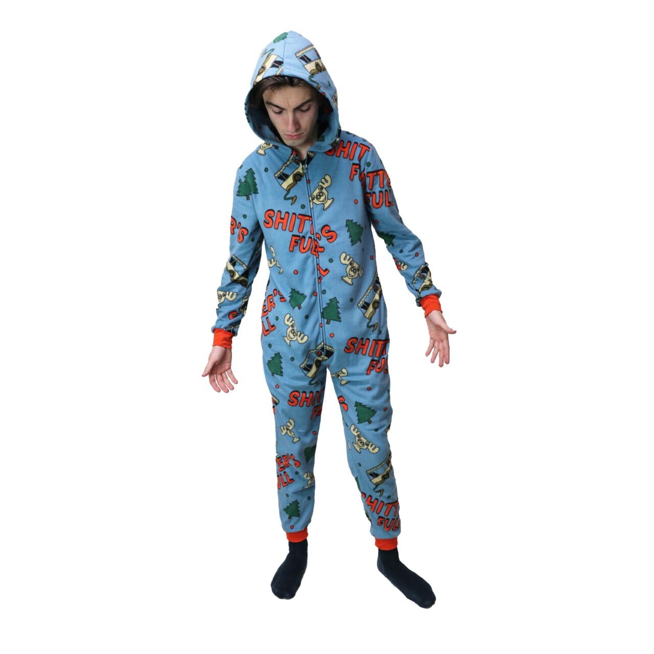 как выглядит Unisex Christmas Vacation Movie "Sh tters Full" Ugly Christmas Pajama Jumpsuit фото