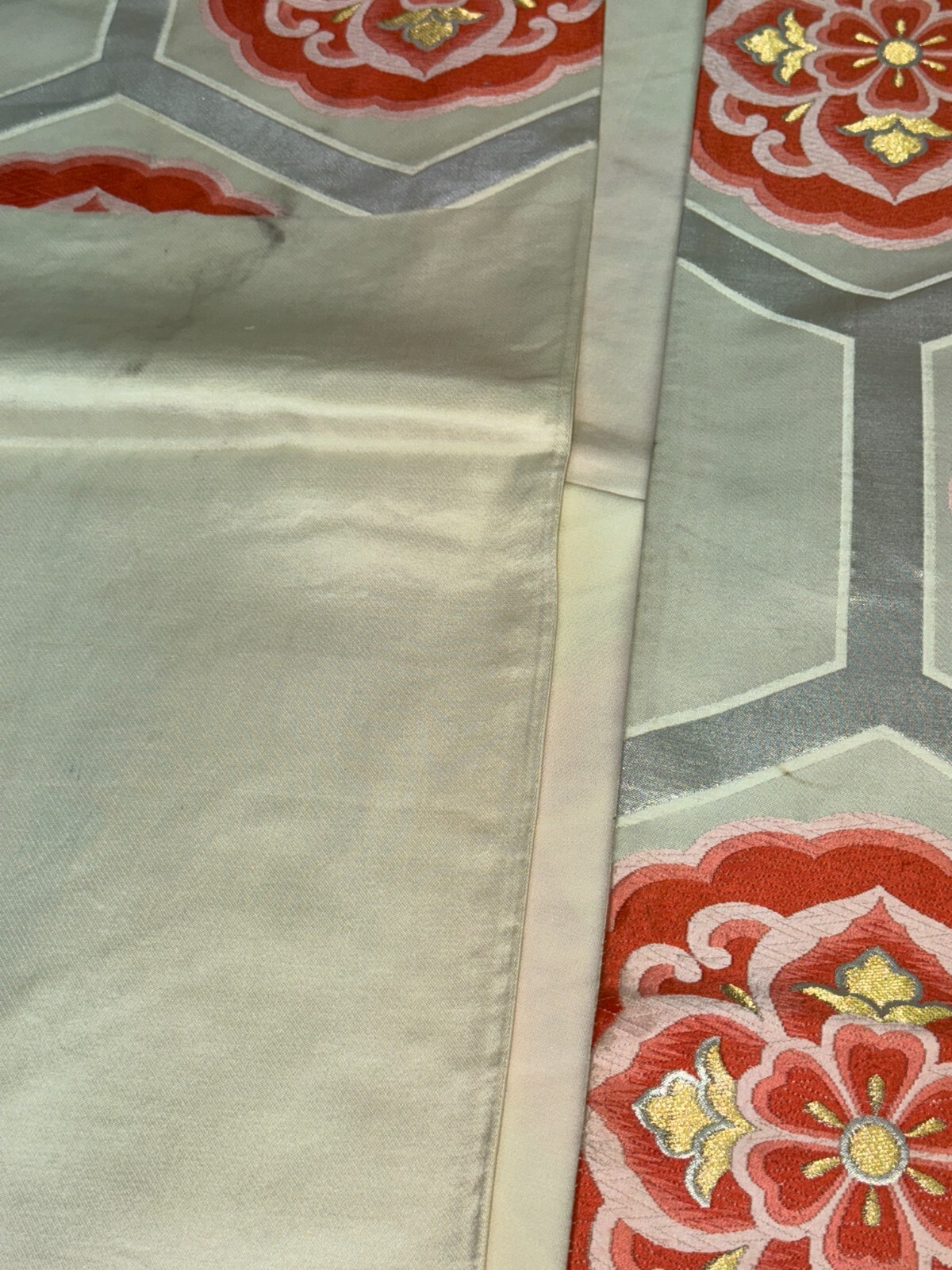 Japanese Vintage Kimono Fukuro Obi silk White expensive Embroidery Dirt 162x12in