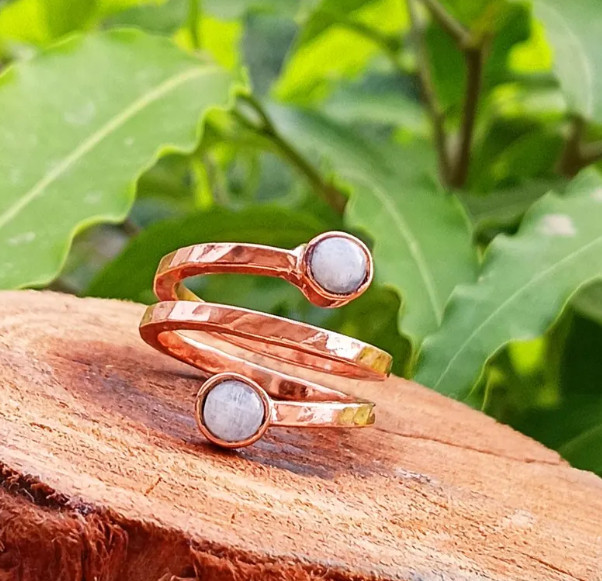 как выглядит Handmade Rainbow Moonstone Ring Arthritis Pain Relief Copper Ring All Size SR376 фото