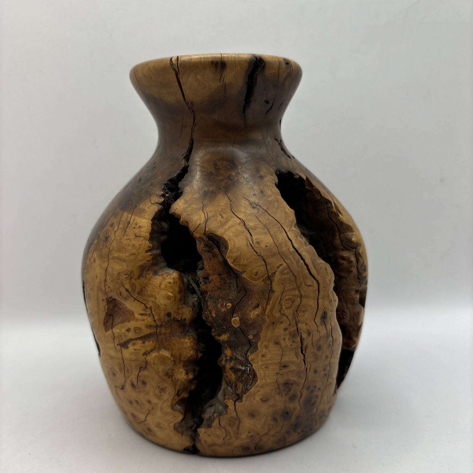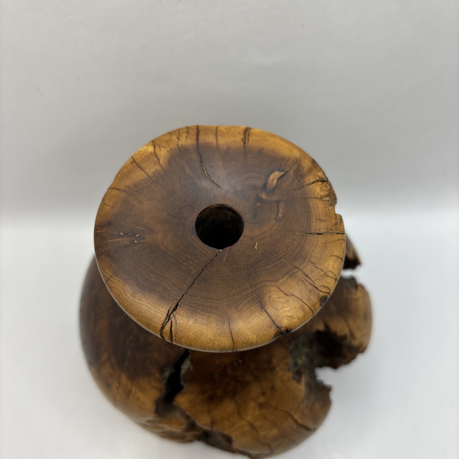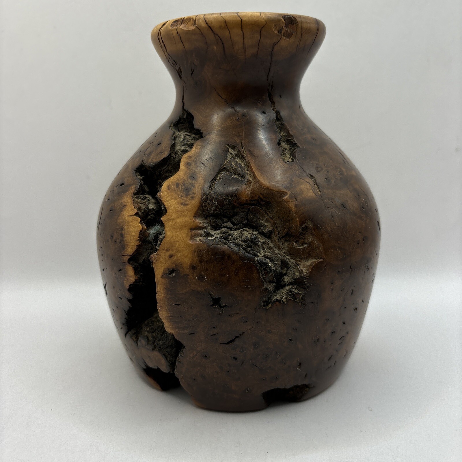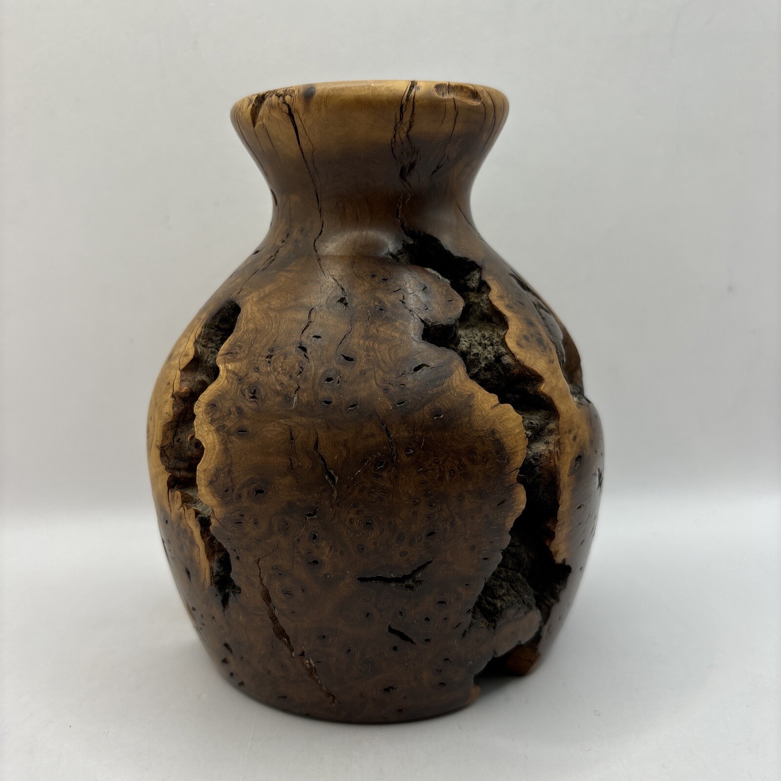 • Vintage Turned Burl Wood Bud Vase