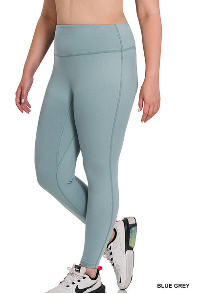 Zenana 3X Cotton/Spandex Brushed Microfiber Wide Waistband Leggings Blue Gray