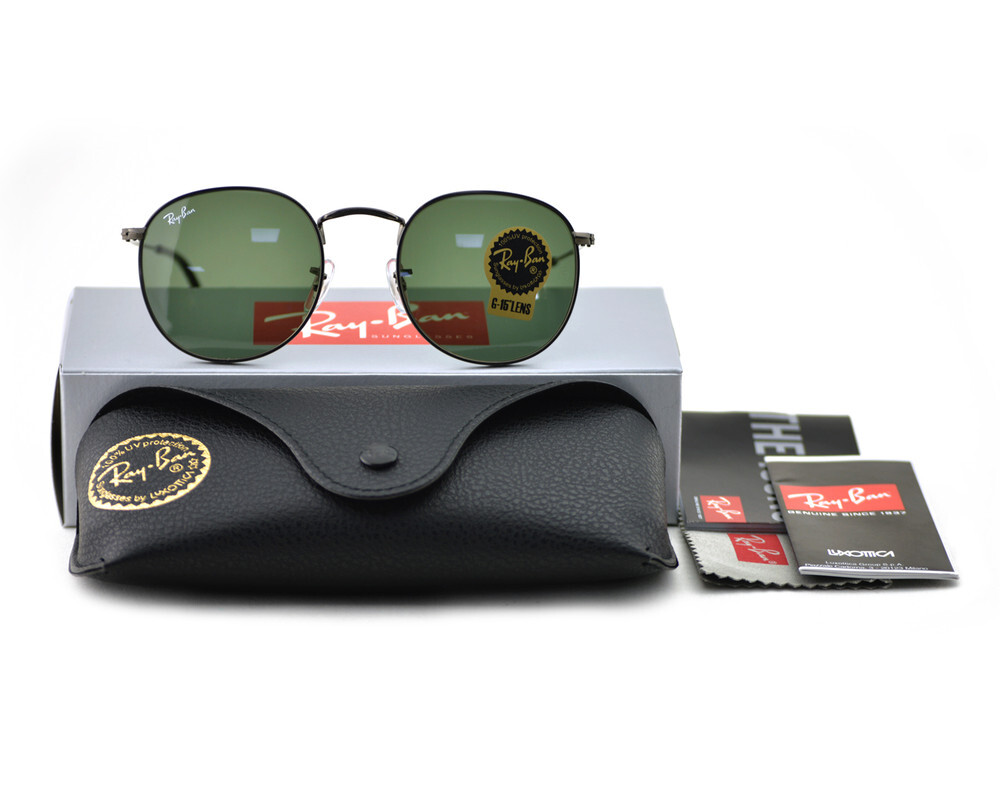 Ray-Ban Sunglasses RB3447 Round Metal Gunmetal Frame Green Classic Lens 50mm
