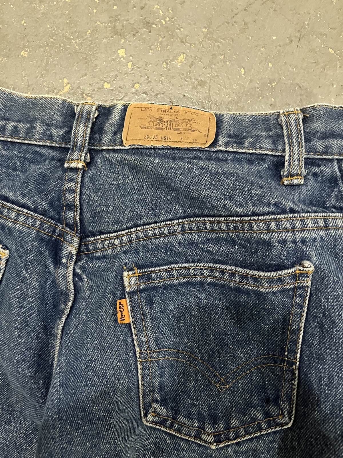 Vintage Distressed 70 s Orange Tab Levi s Grunge Blue Jeans-Size 14