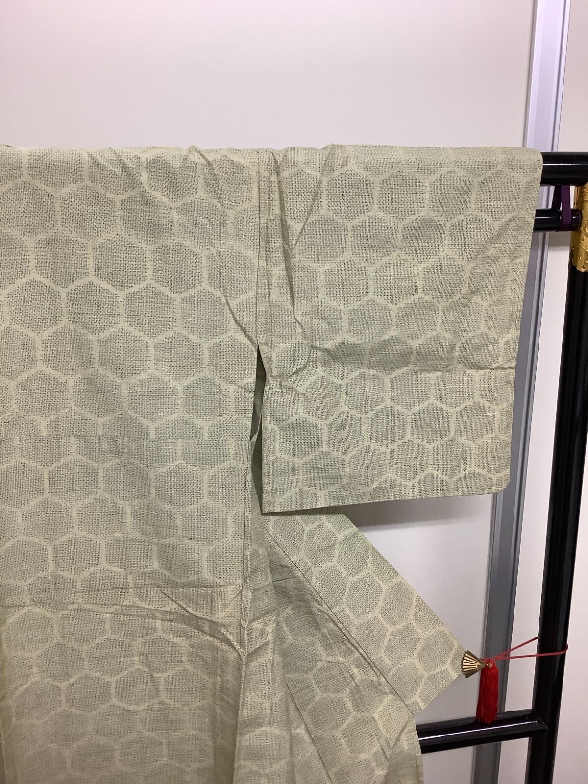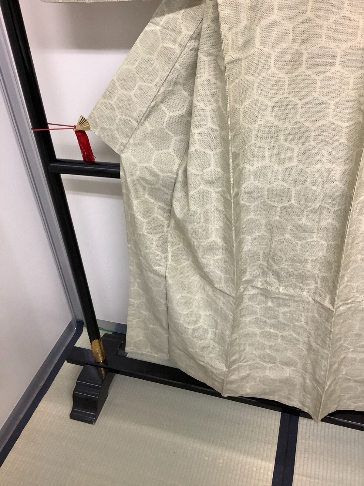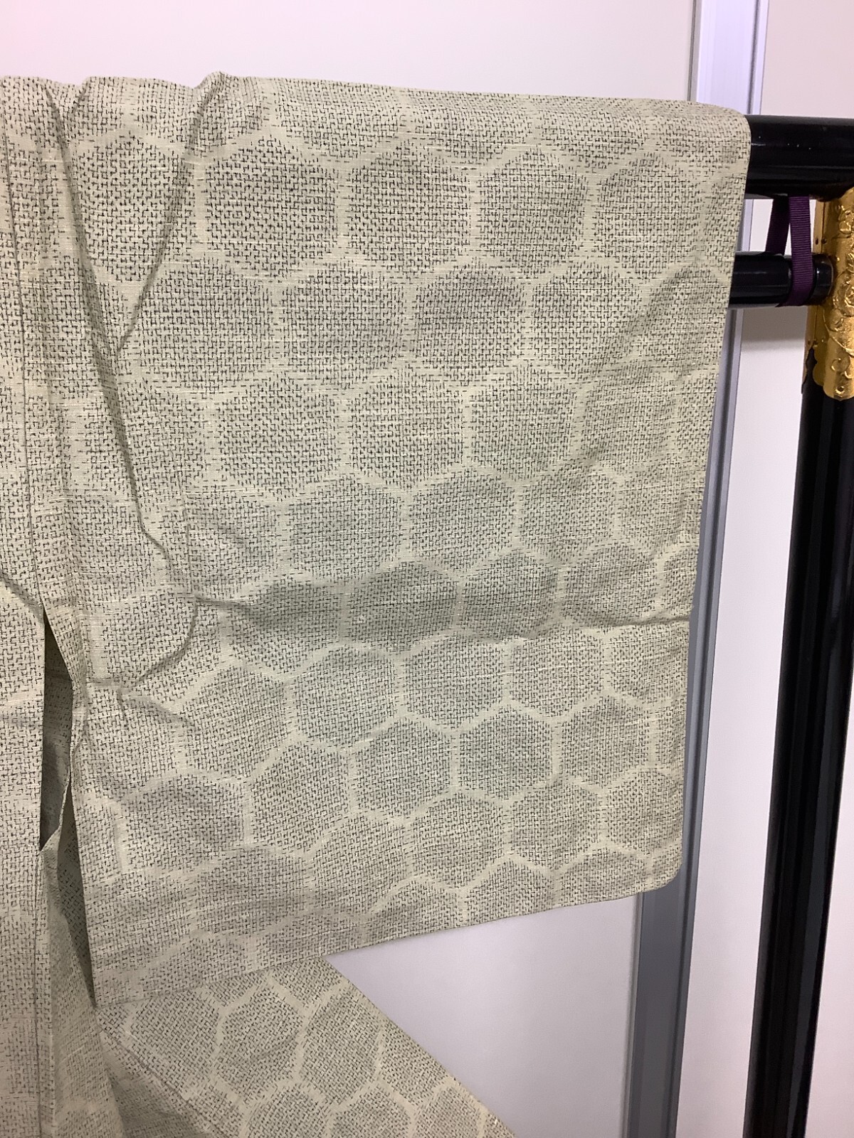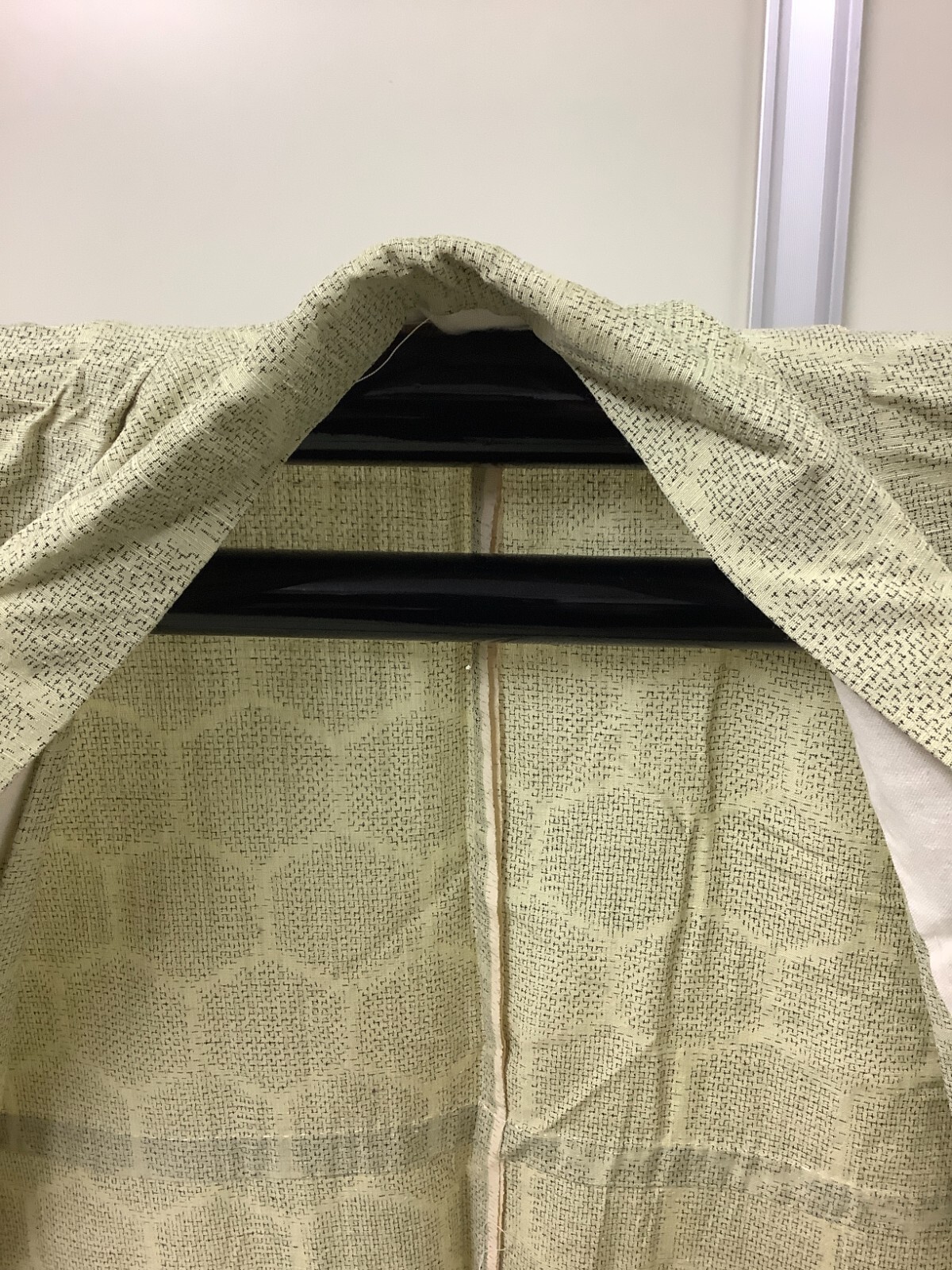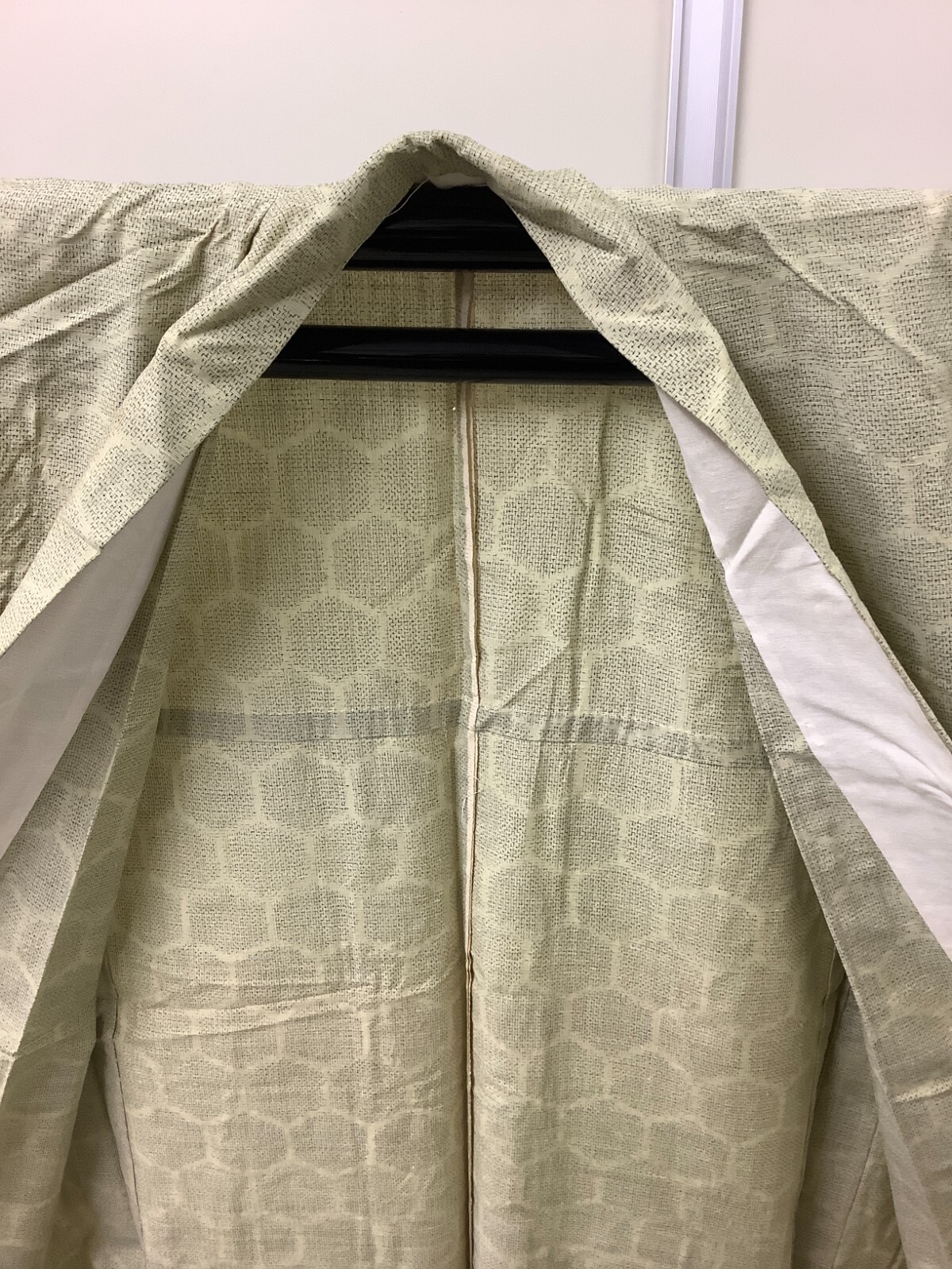Japanese Vintage Kimono pure silk light green Tumugi tradition Height 62.2inch
