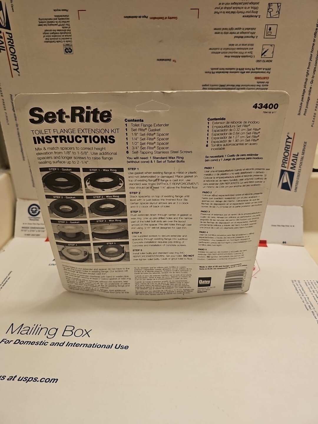 Oatey Set-Rite 43400 Toilet Flange Extension Kit NEW