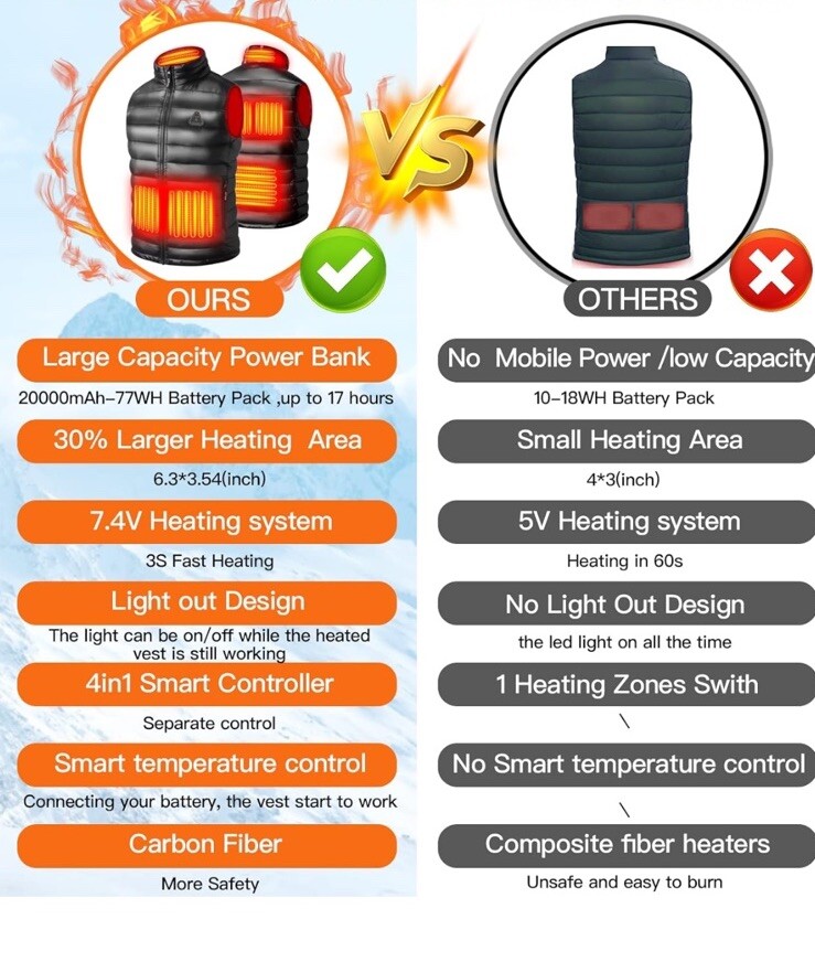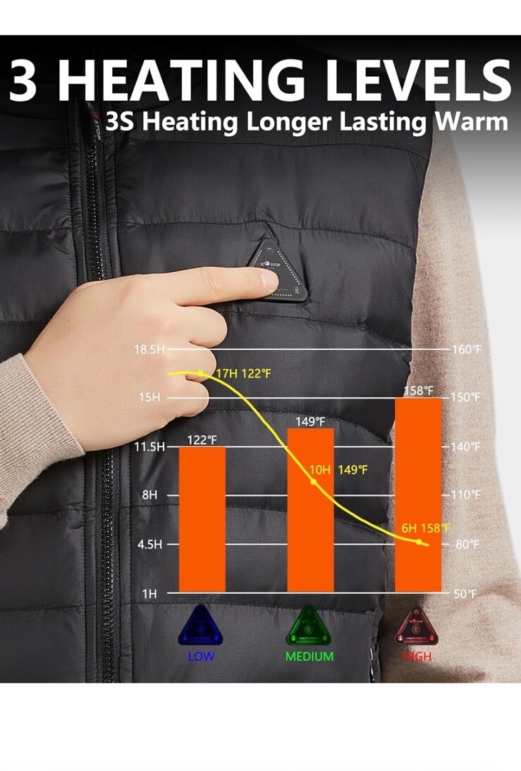 Heated Vest w/ 20000mAh Battery Pack 7.4V Rechargeable - Size 2XLBlack