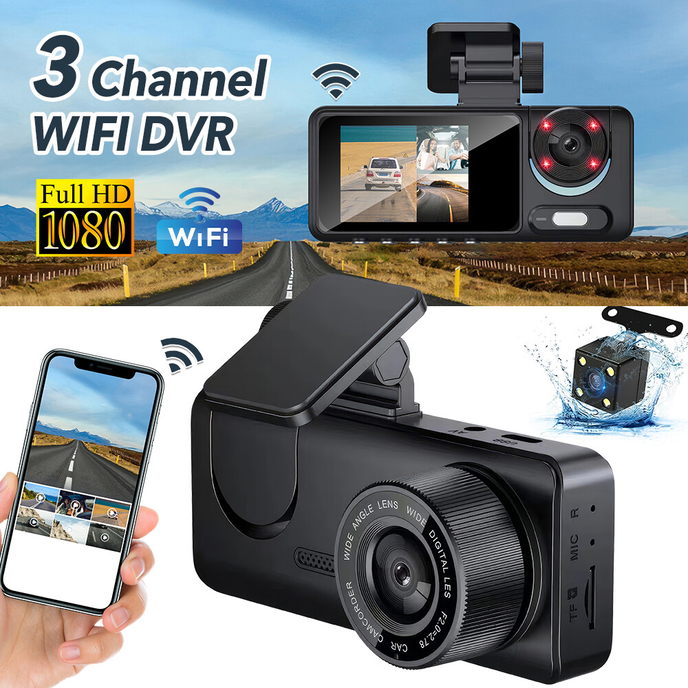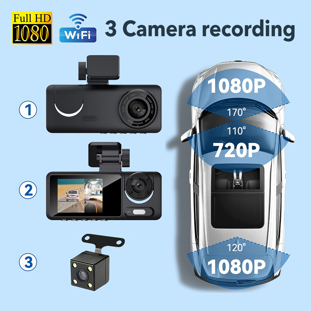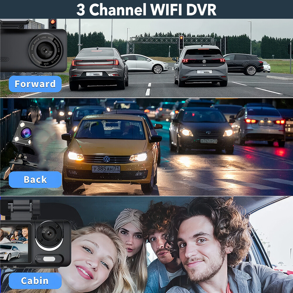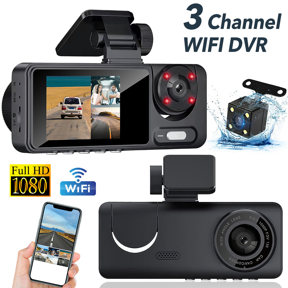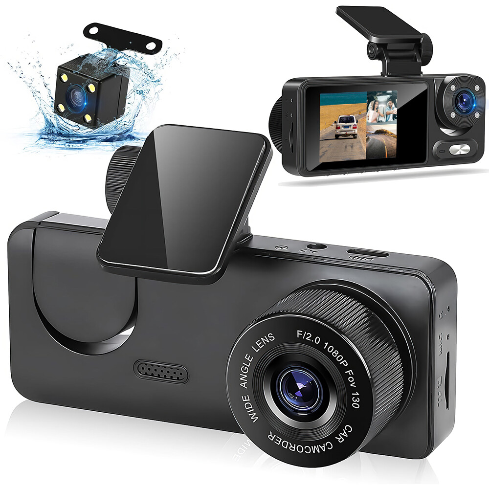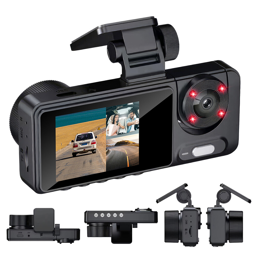 HD 1080P Car Dual Lens Dash Cam Front/Rear/Inside Video with Free 64 GB SD Card