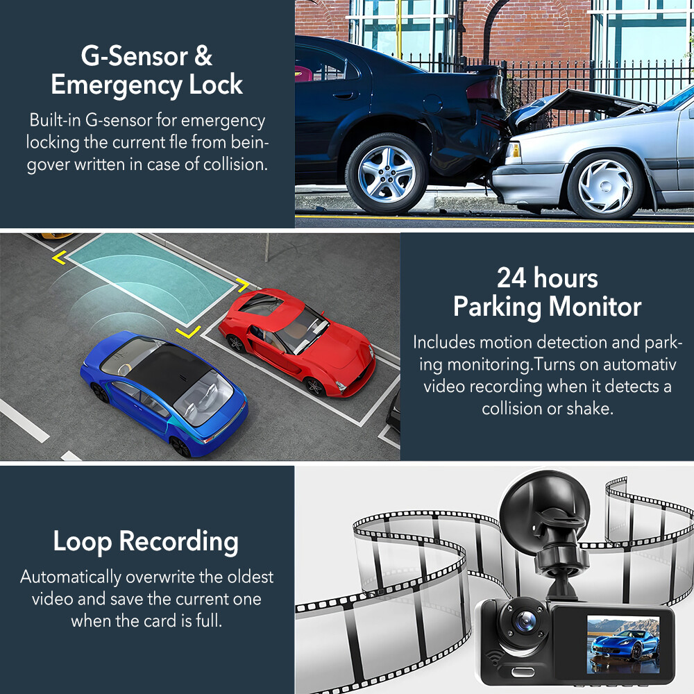 Supported System: Cycle recording,G-sensor,Parking Monitoring,Motion Detection