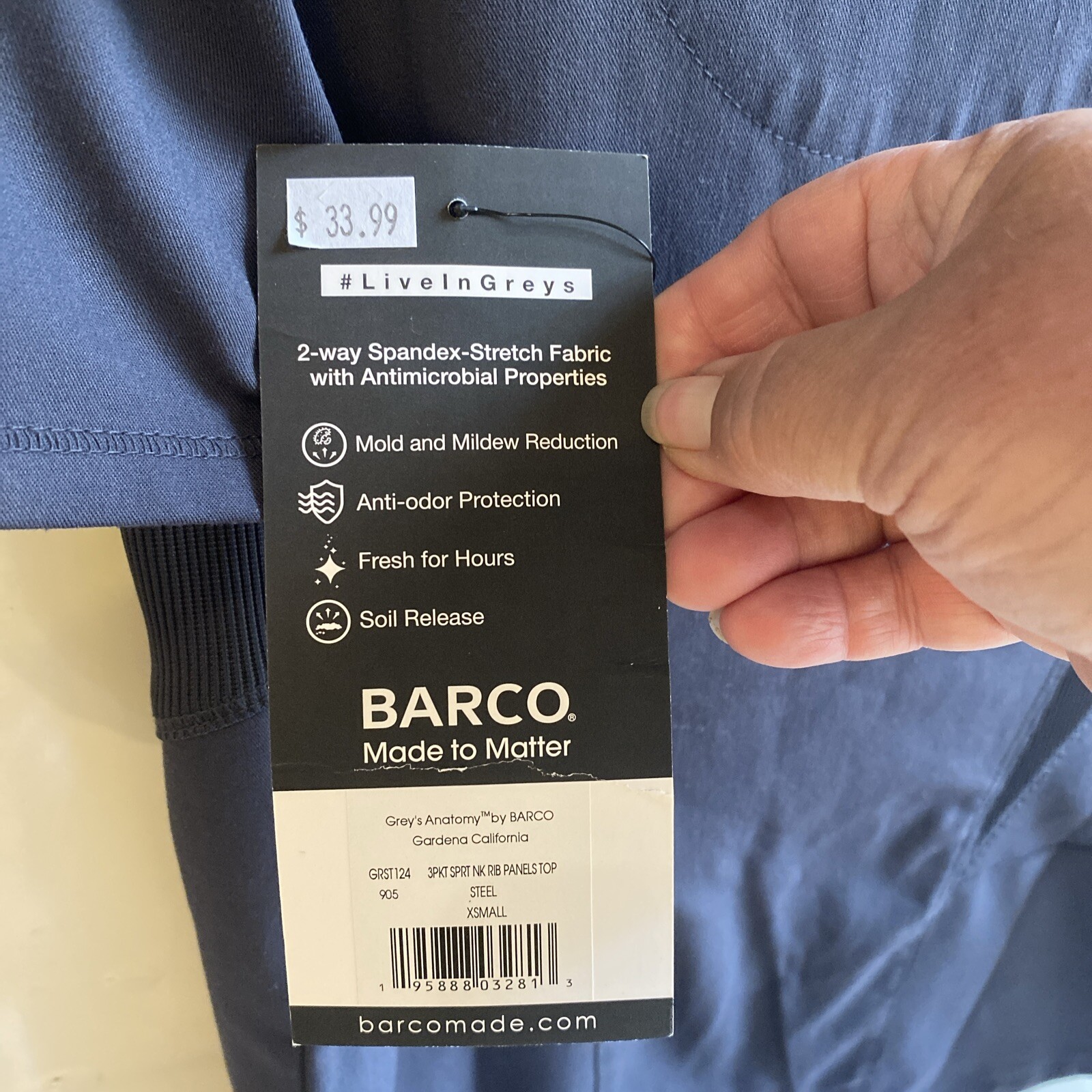 GREY S ANATOMY BARCO Stretch Spandex 3 POCKET SCRUB TOP Gray NEW w Tag Size XS