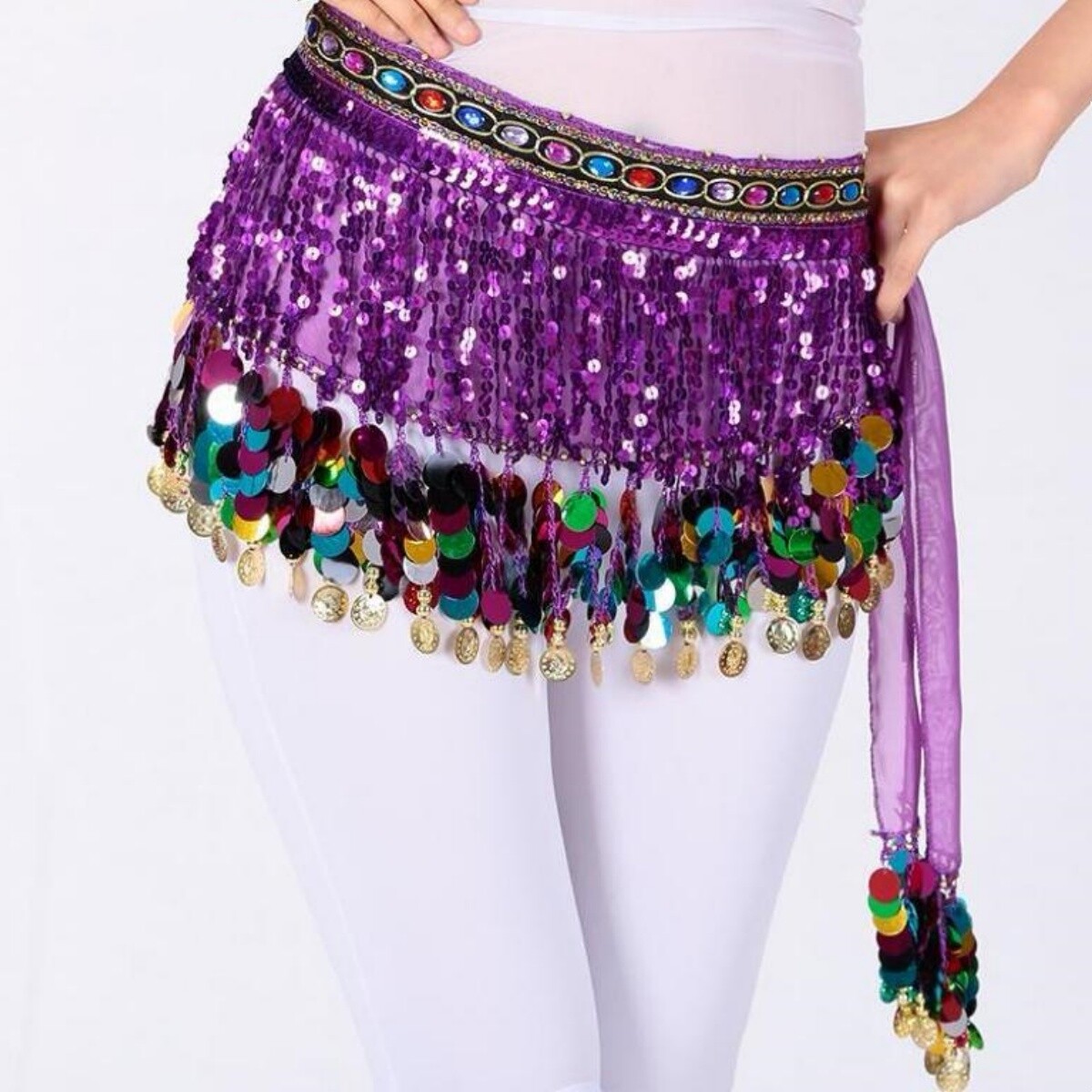 Belly Dance Hip Scarf Dancing Coins Sequin Women Waist Chain Skirt Belt Wraps
