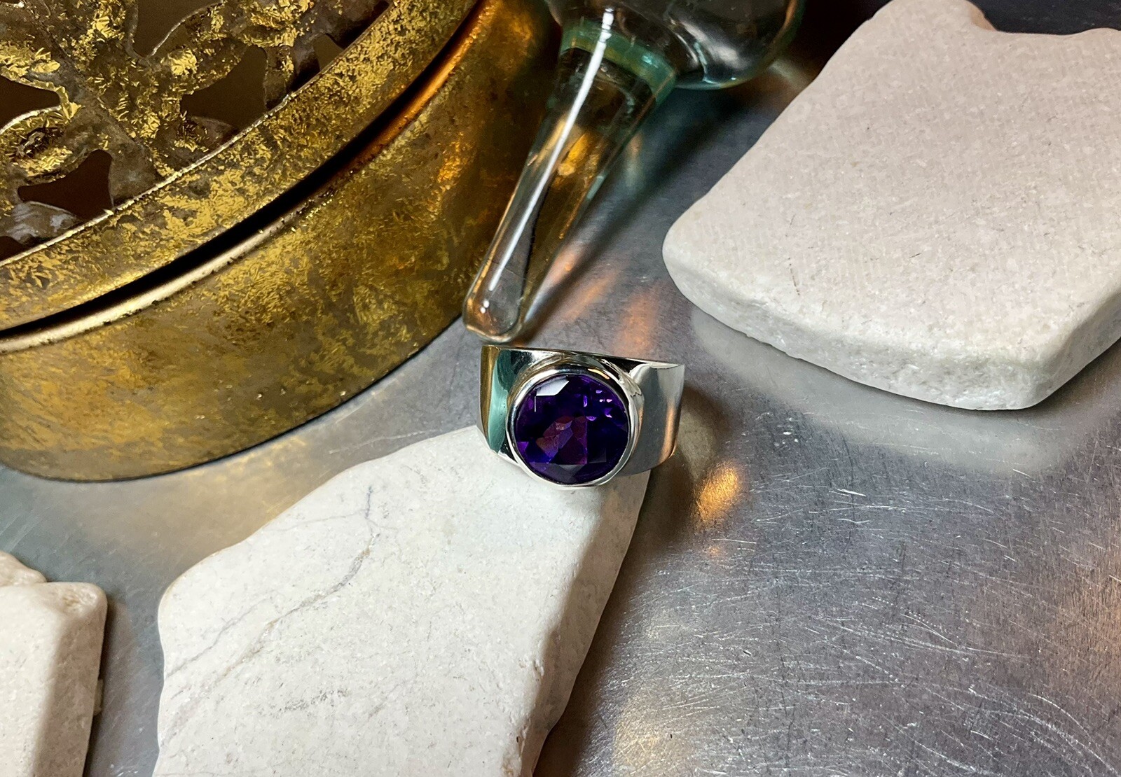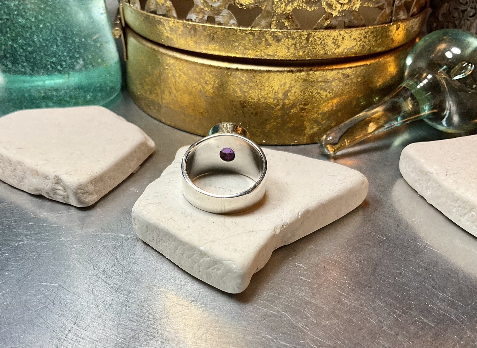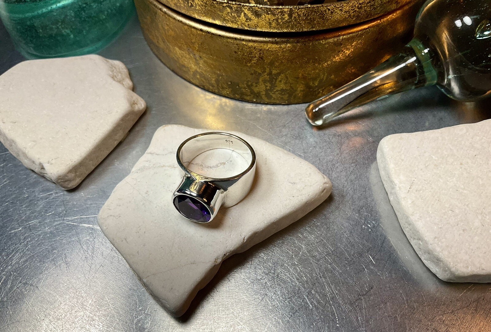 Genuine 925 Sterling Silver Amethyst Gemstone Ring Size 8.5