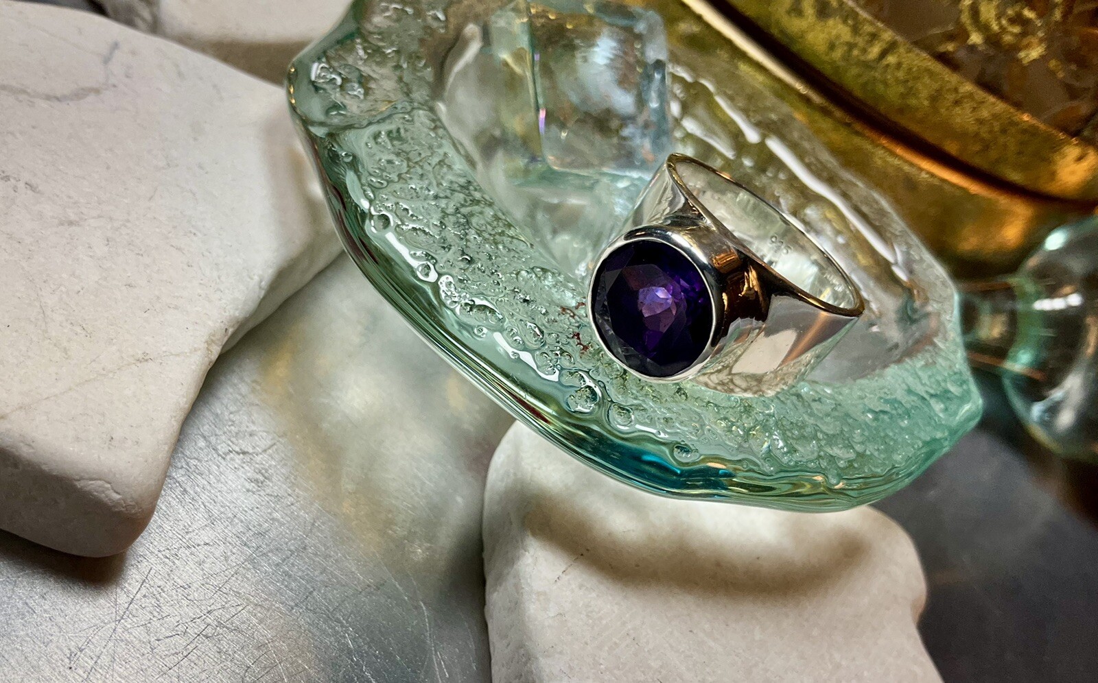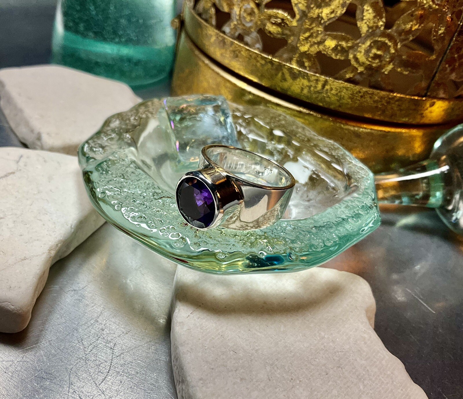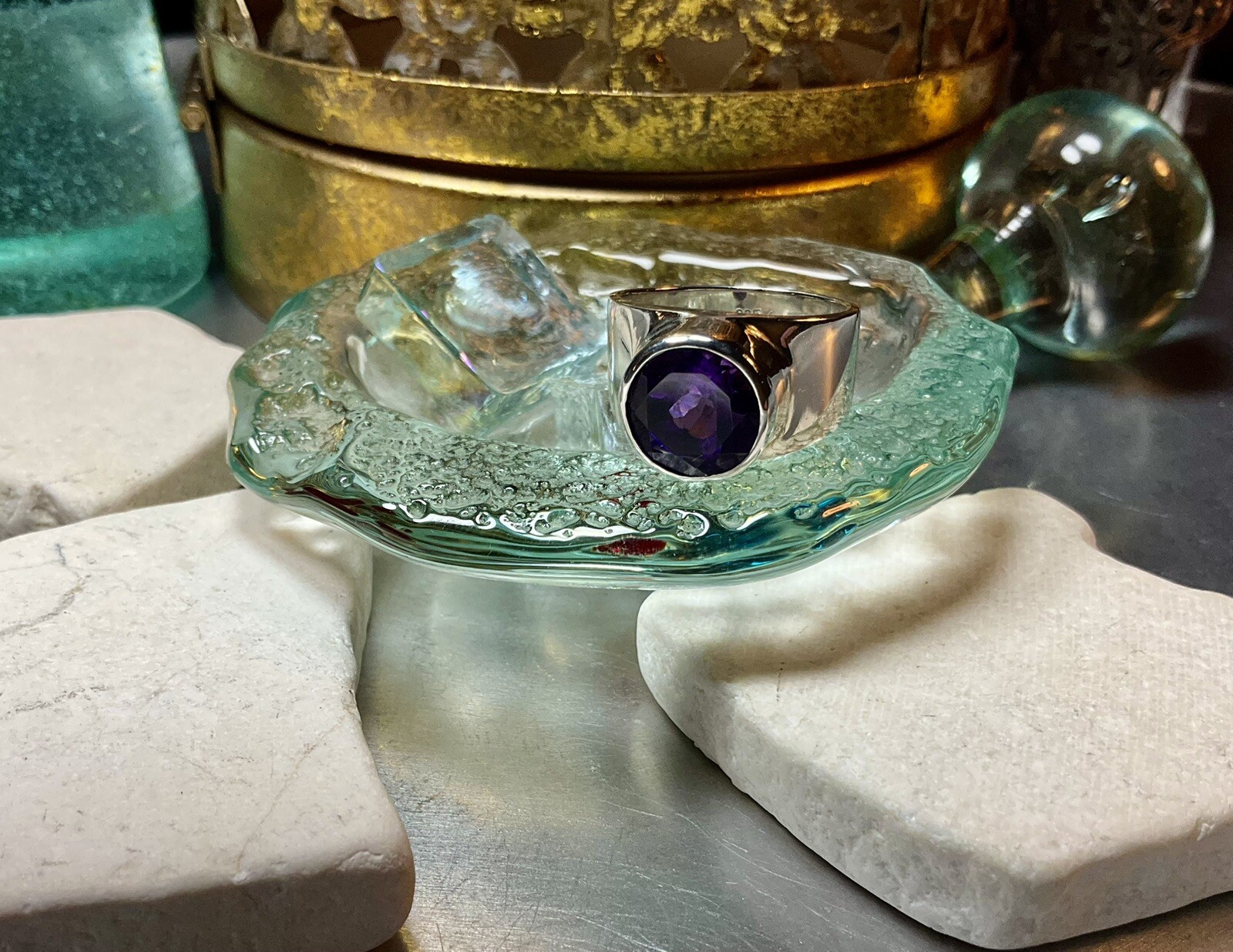 Genuine 925 Sterling Silver Amethyst Gemstone Ring Size 8.5