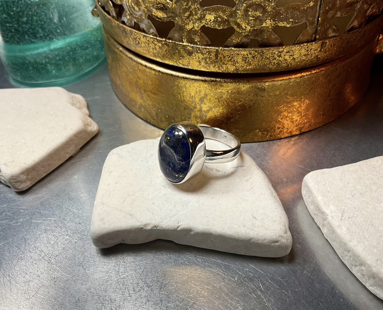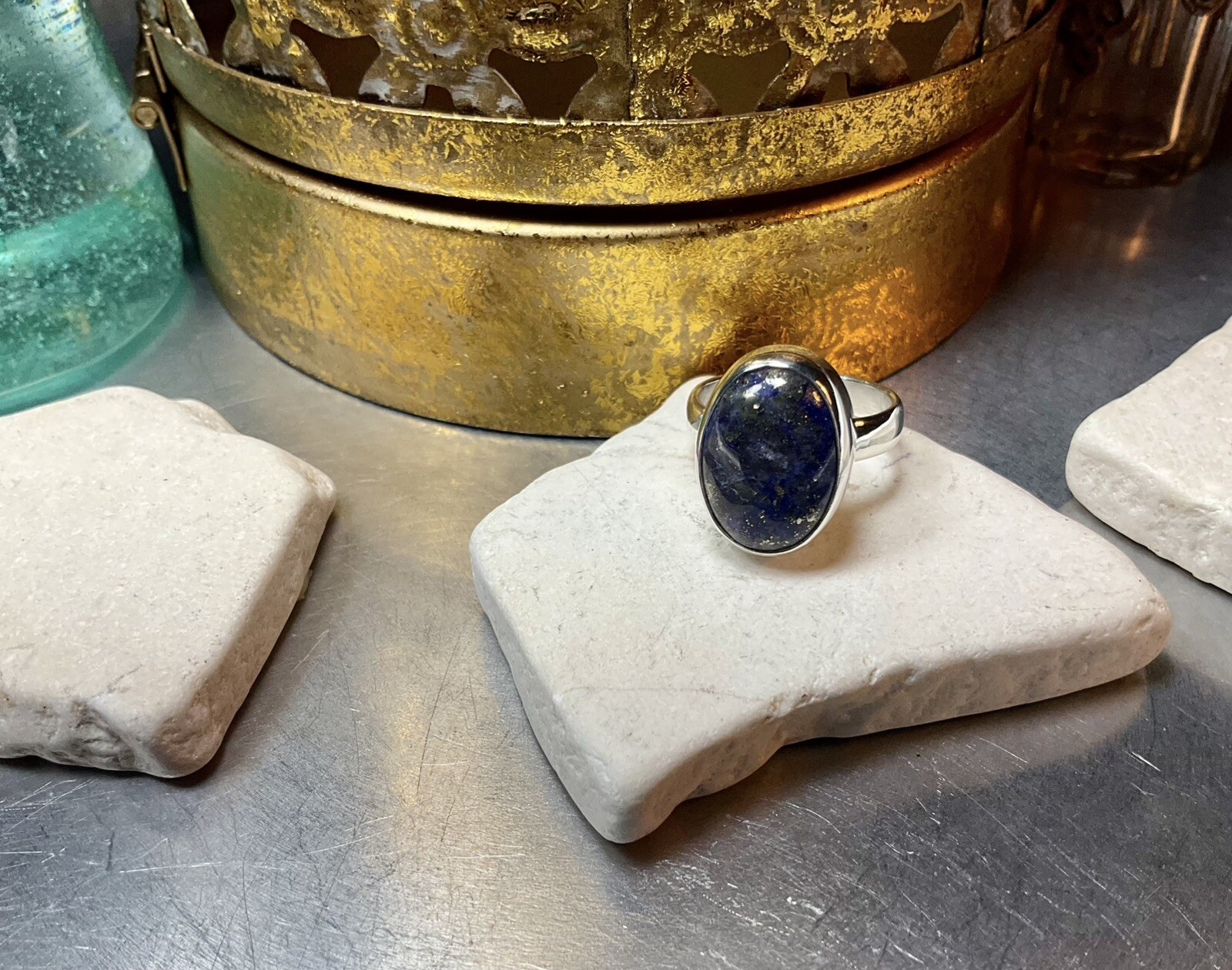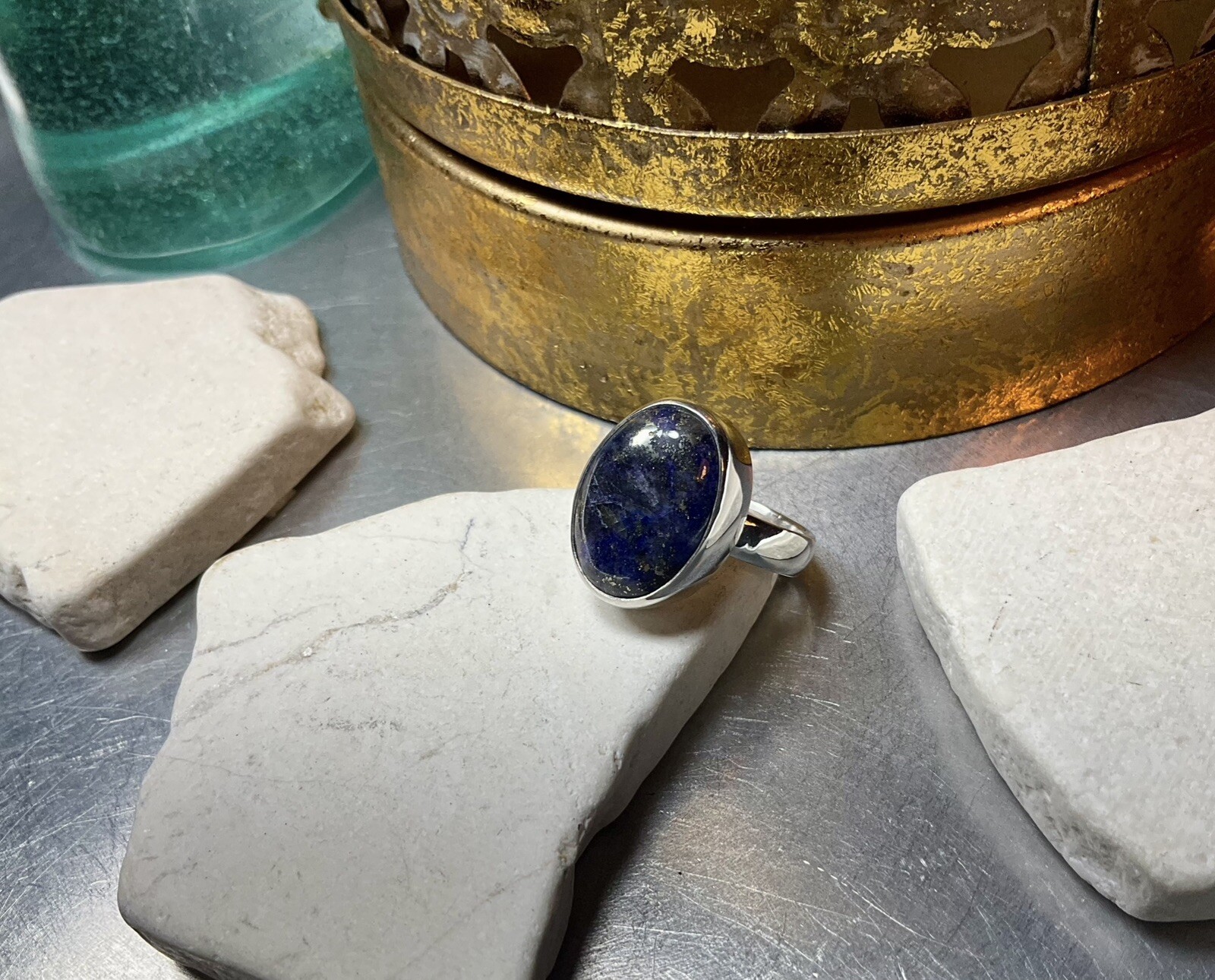 как выглядит Genuine 925 Sterling Silver Lapis Lazuli Gemstone Ring Size 8.5 фото