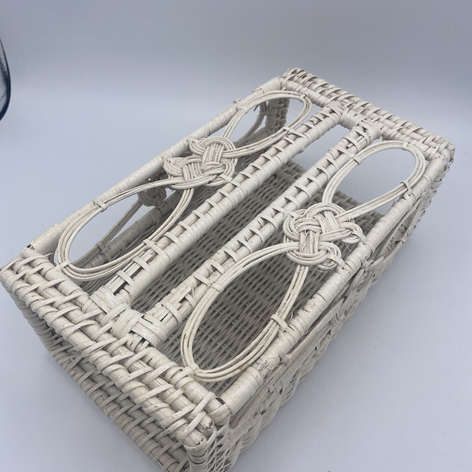 VINTAGE 70's White Wicker Rattan Rectangular Tissue Box Cover Holder