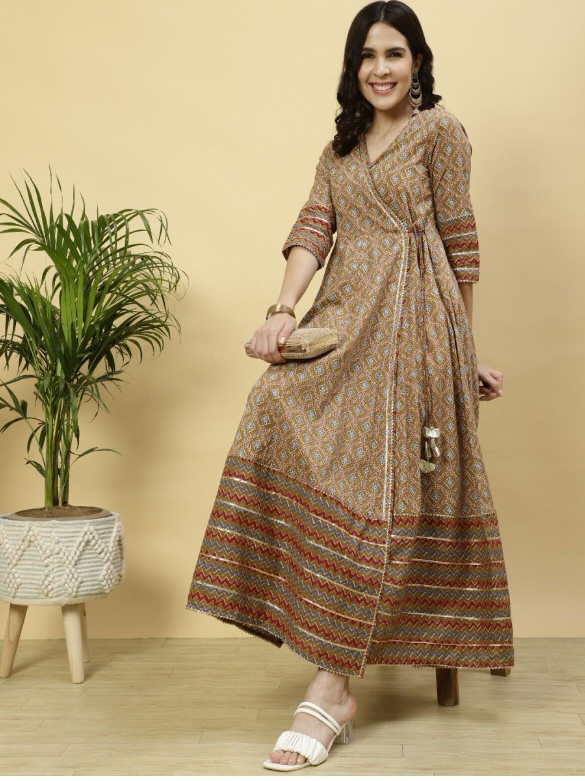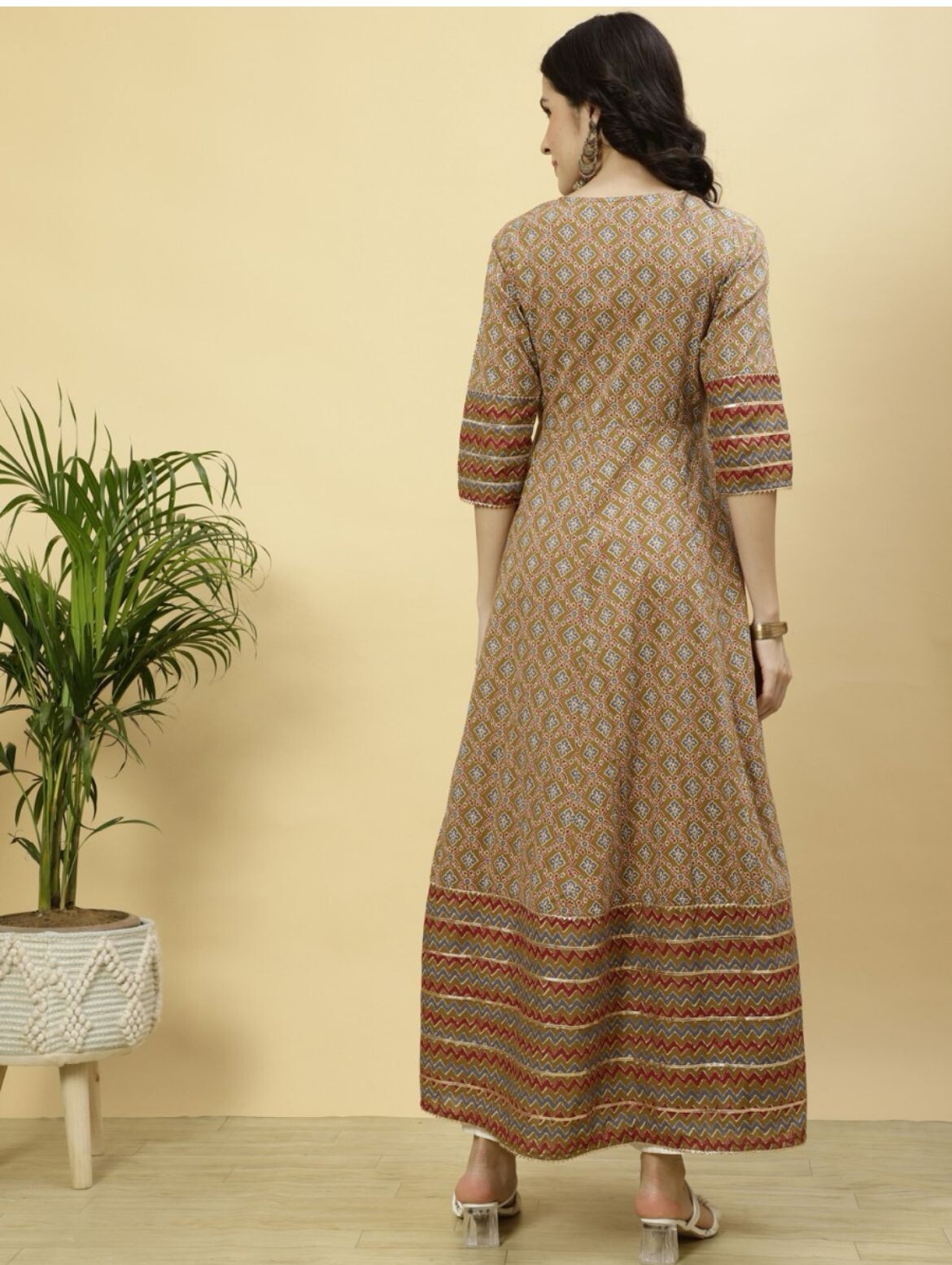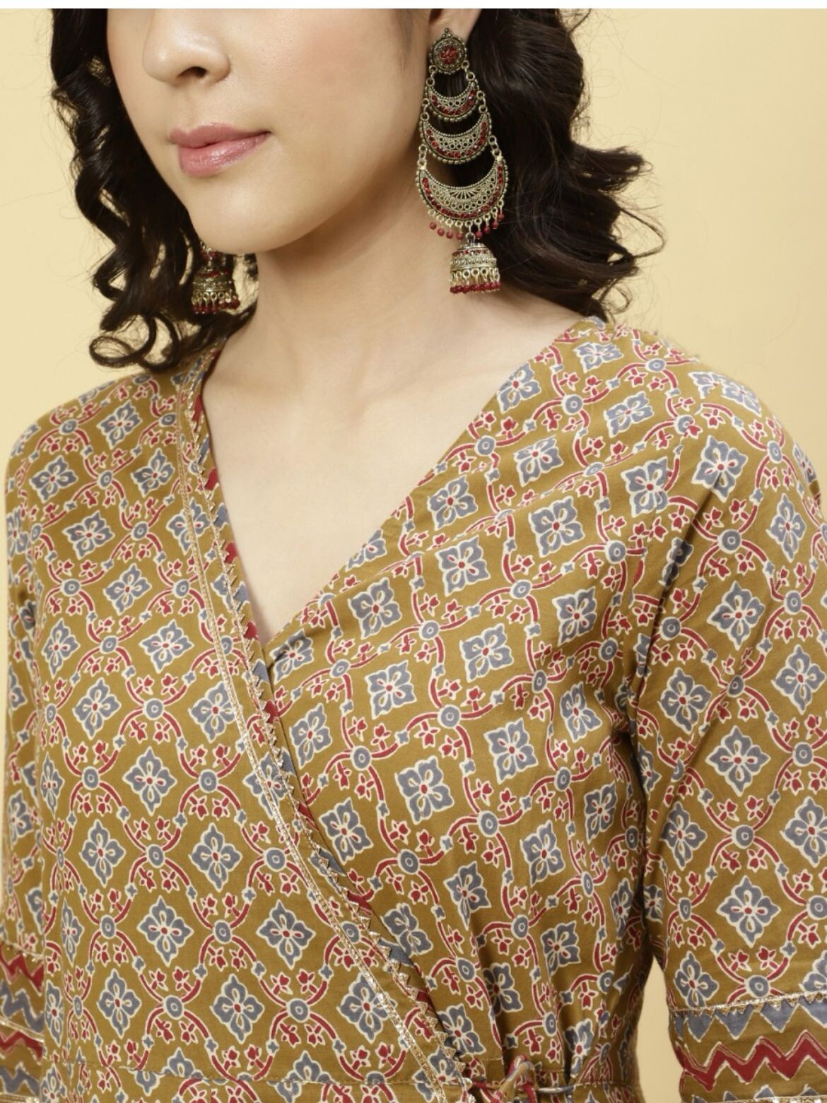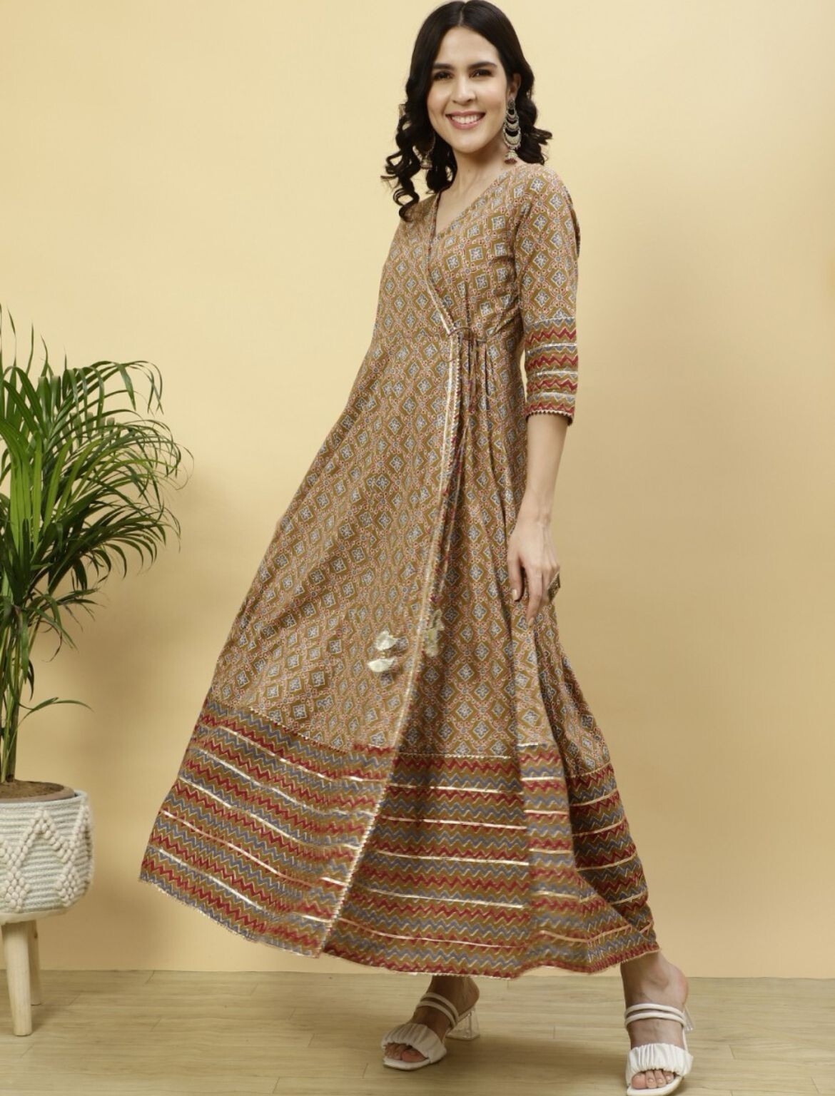 как выглядит Women Anarkali Floral Printed Regular Mustard Flared Kurta , Summer Casual Dress фото