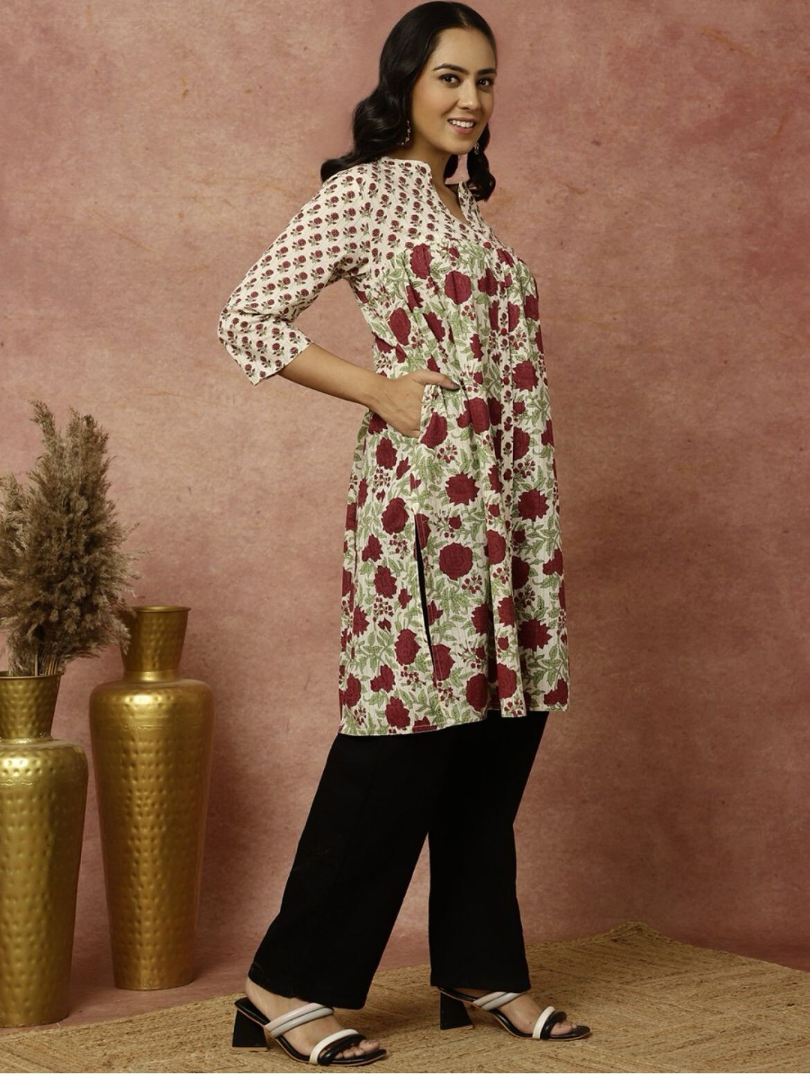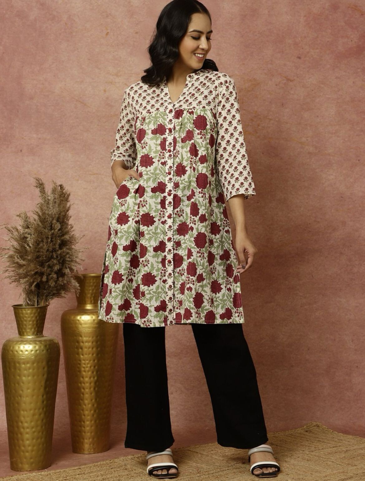 Women Anarkali Floral Printed Regular Mustard Flared Kurta , Summer Casual Dress