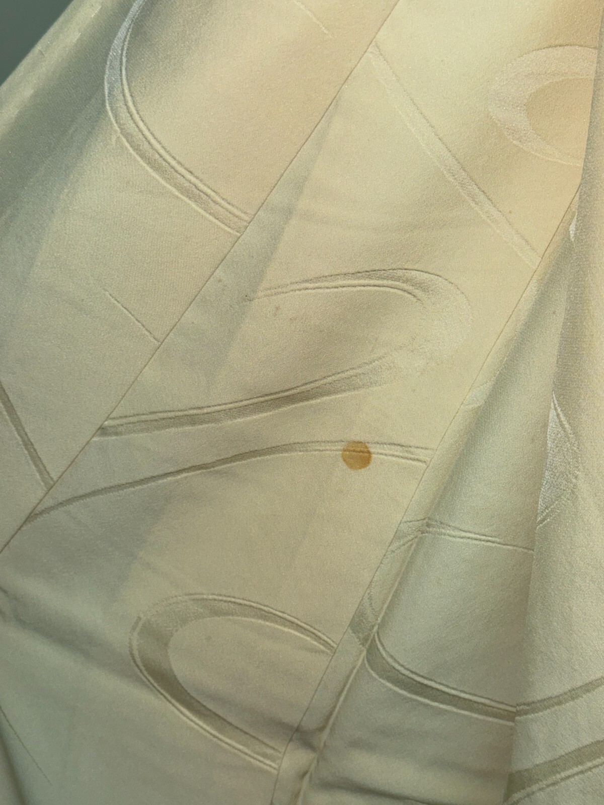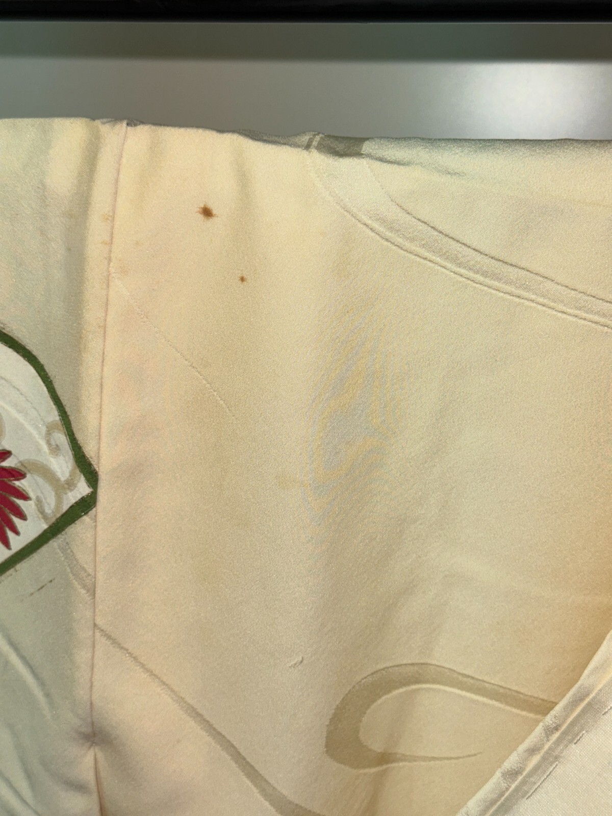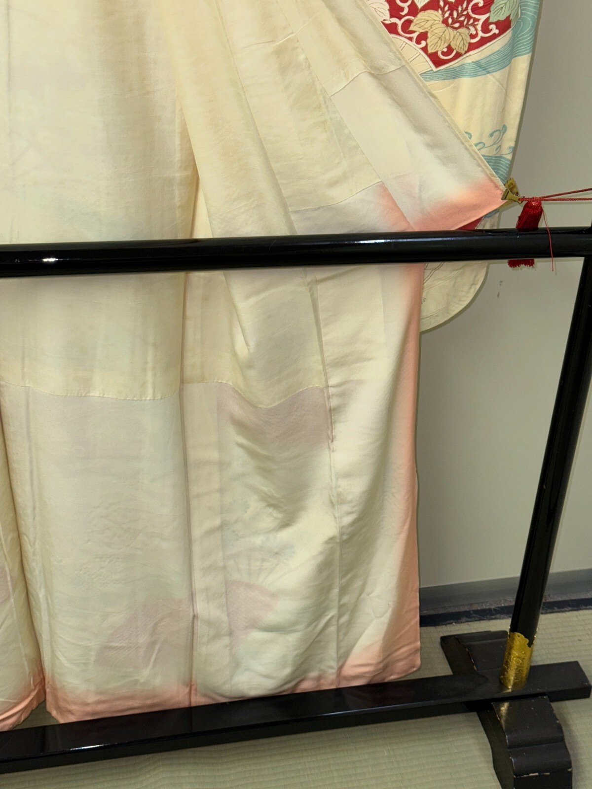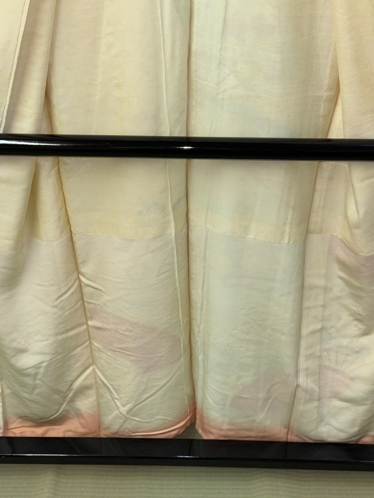 Japanese Vintage Kimono Furisode silk White Flower Fan Expensive Height 61.41in