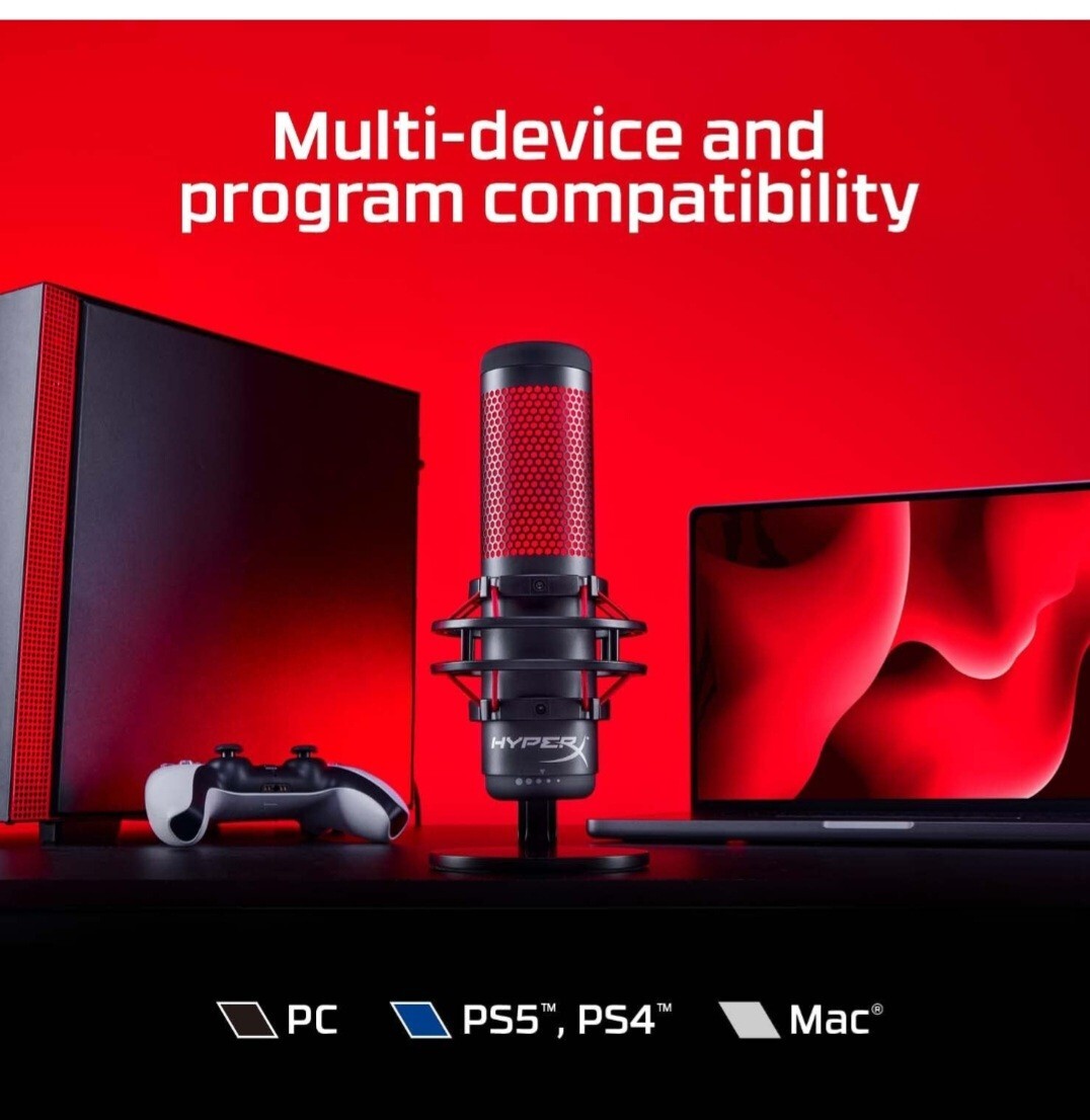 Hyperx Quadcast USB Condenser Gaming Microphone Red LED Four Polar Pattern