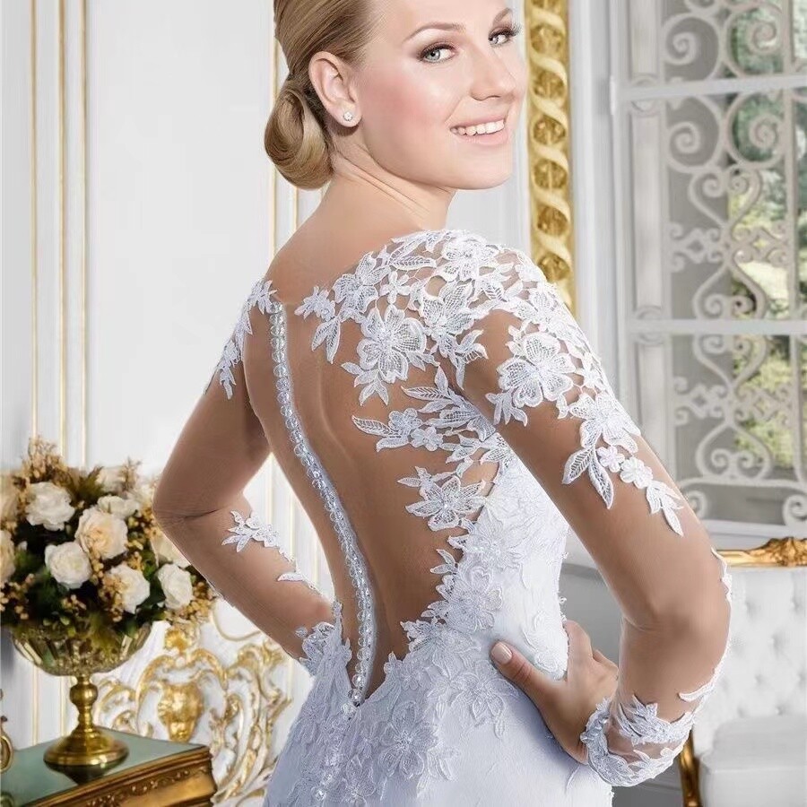 как выглядит Elegant Mermaid Wedding Dresses O Neck Long Sleeves Lace Appliques Bridal Gowns фото