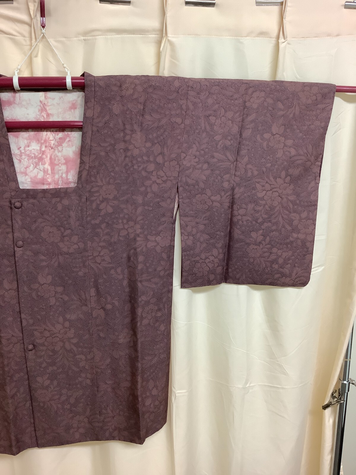 как выглядит Japanese Vintage Kimono MICHIYUKI coat silk Marron flower length 32.67 inch фото