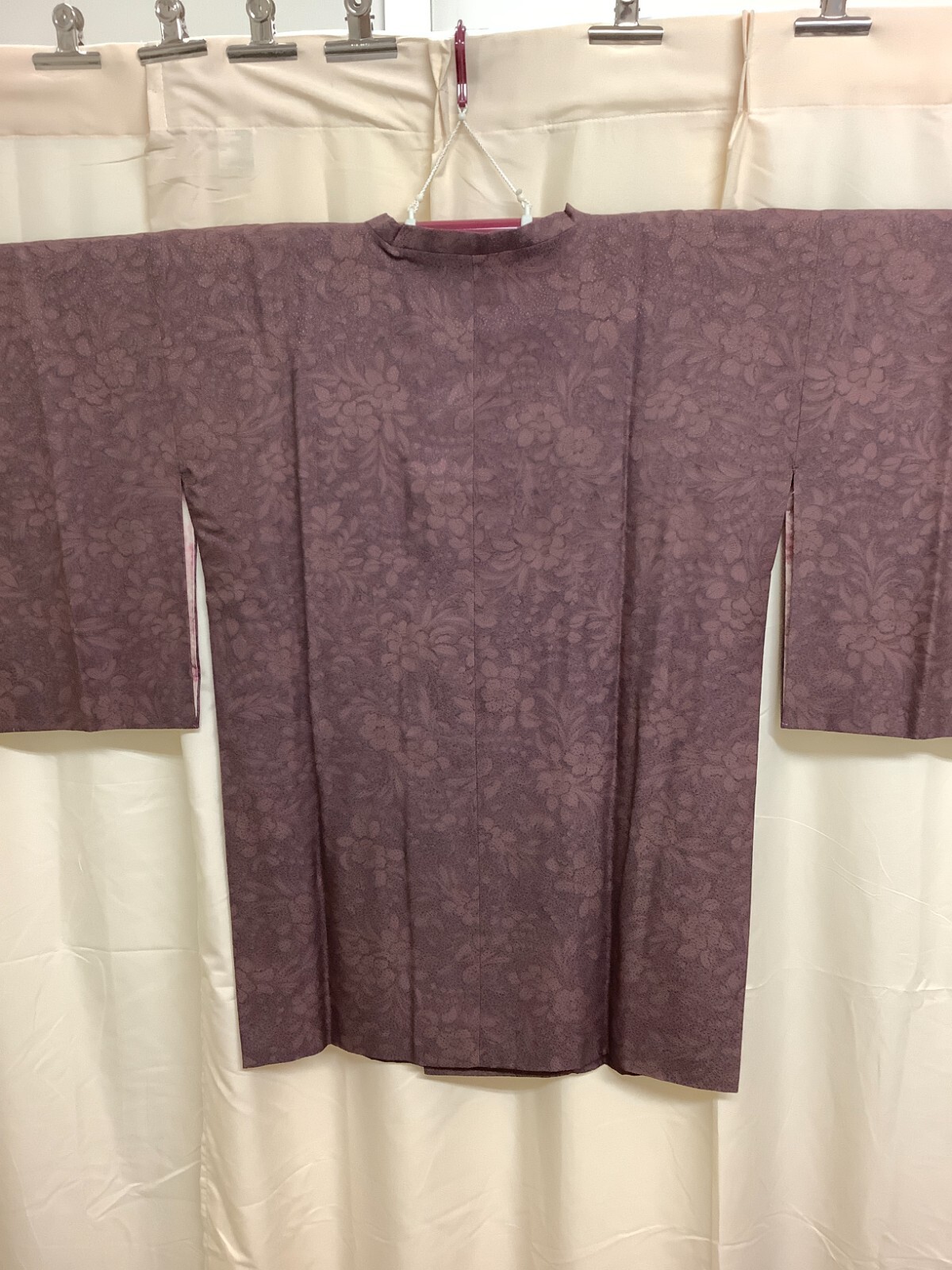 Japanese Vintage Kimono MICHIYUKI coat silk Marron flower length 32.67 inch