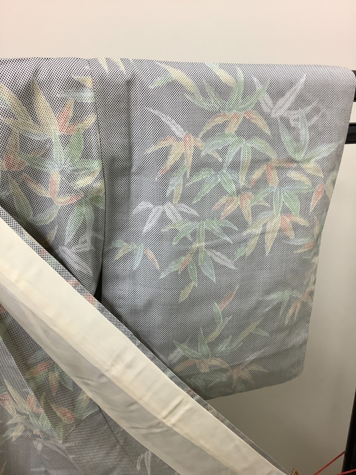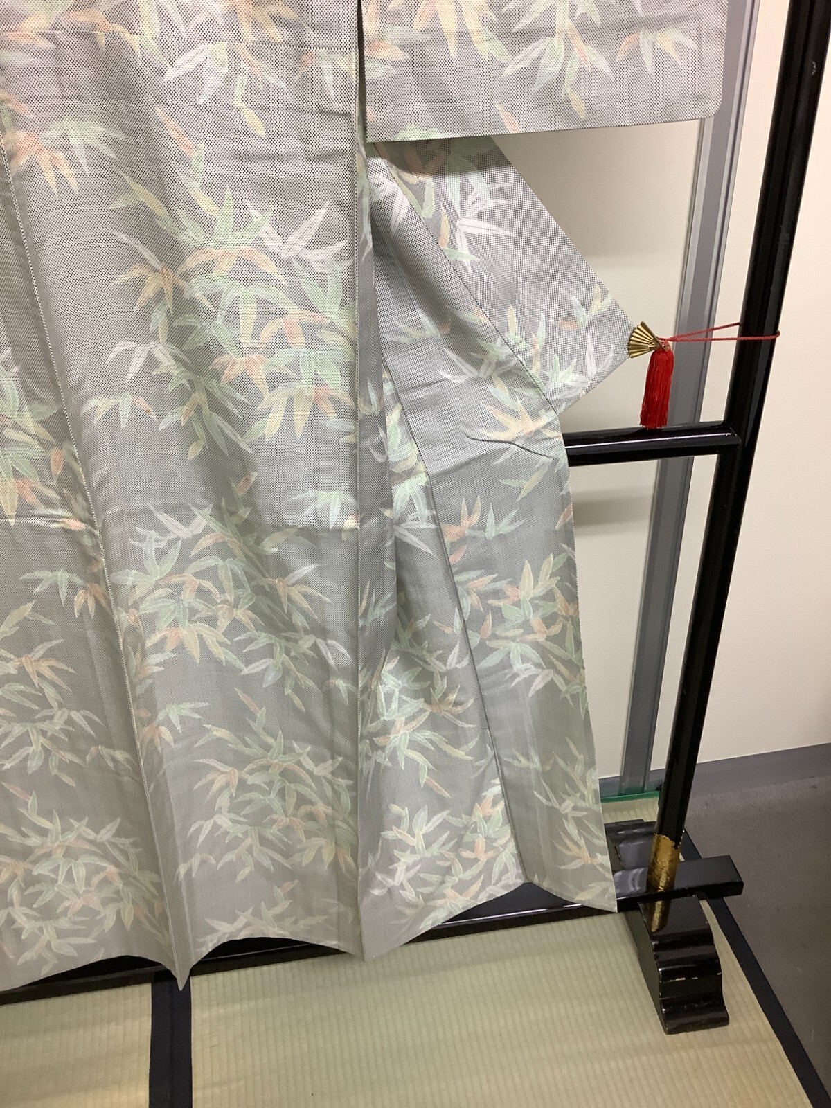 Japanese Vintage Kimono pure silk Light gray tradition expensive Height 60.23in