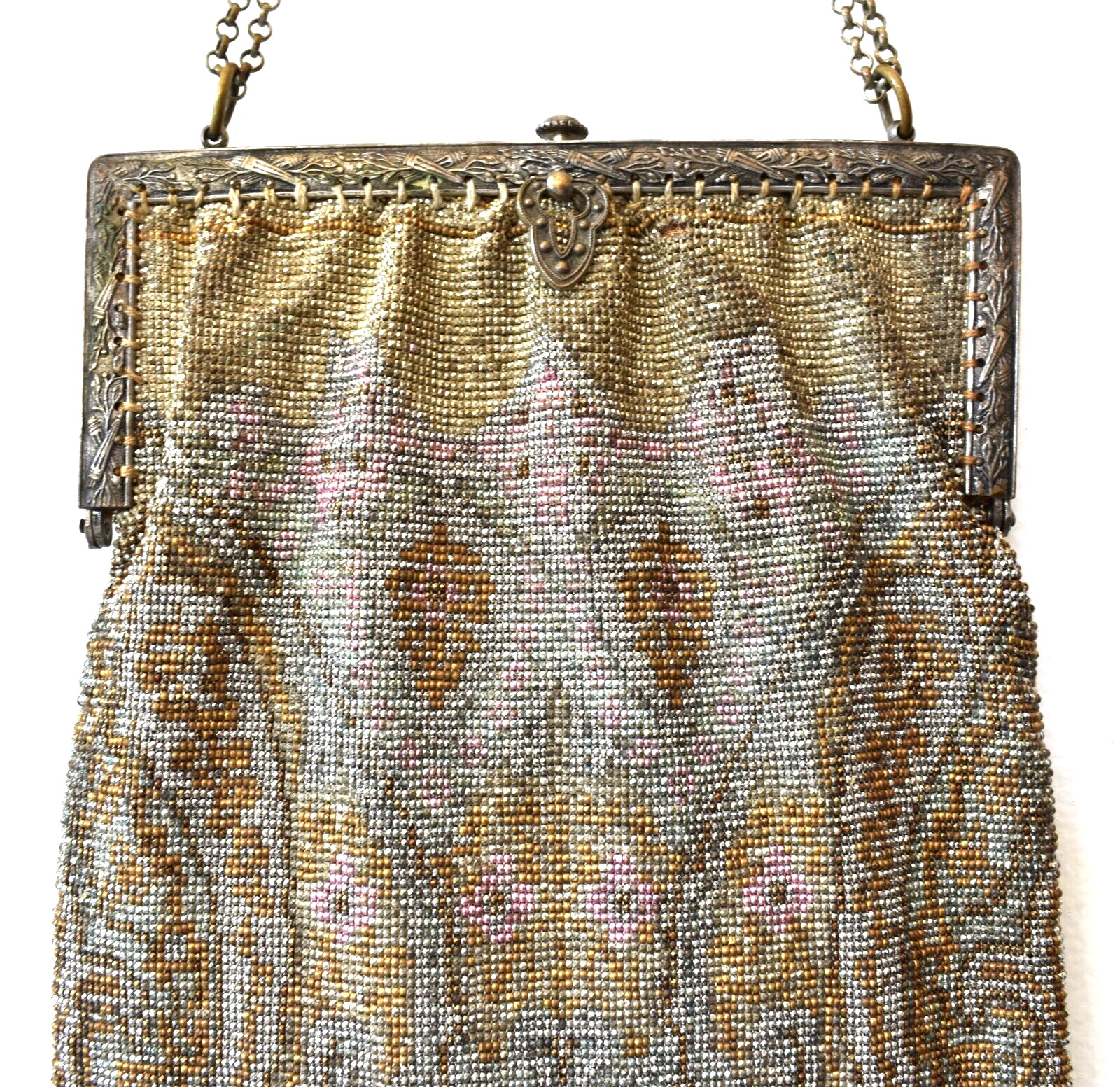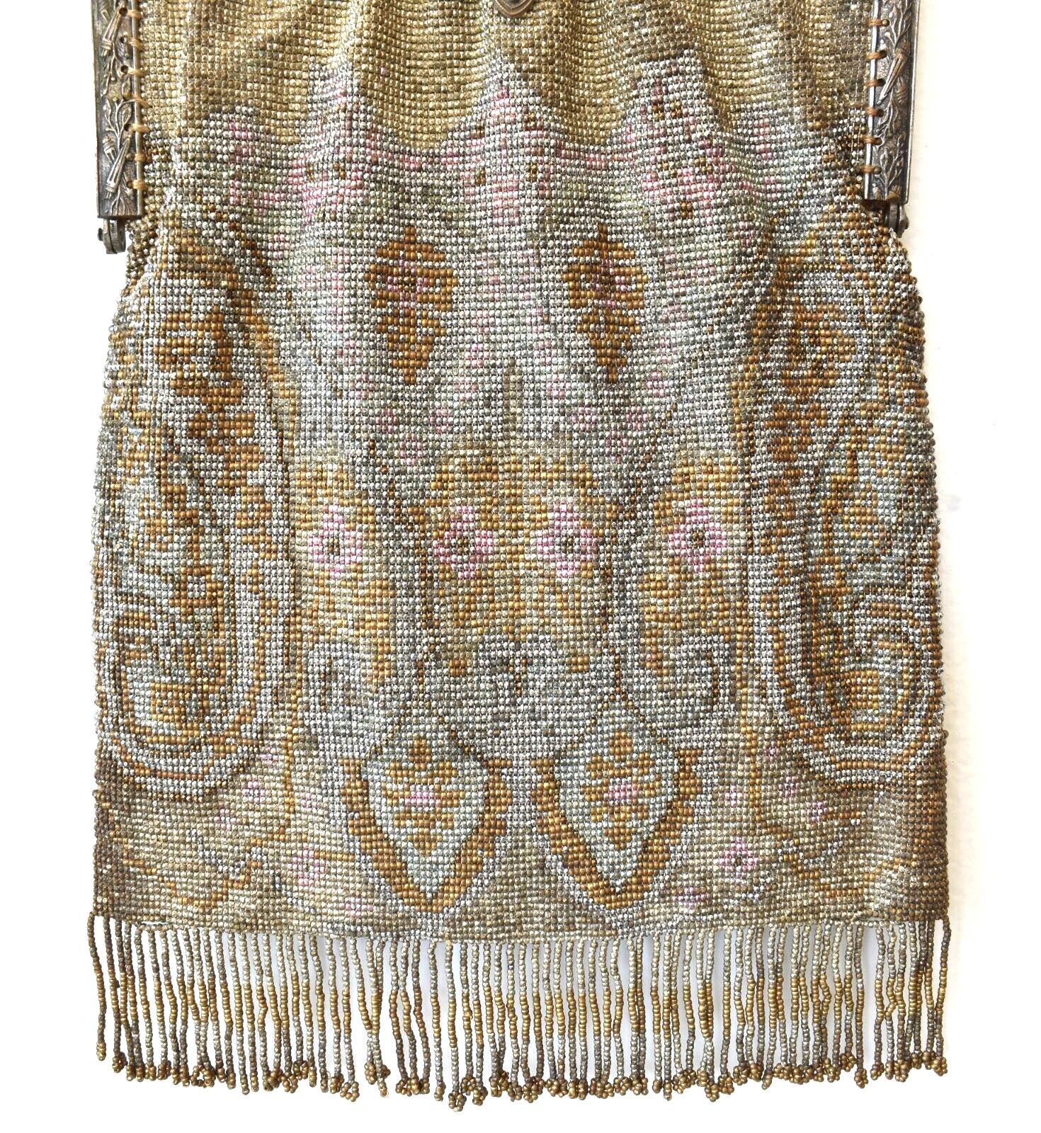 LRG Antique French Micro Beaded Gold Silver Made In France Flapper Purse Bag