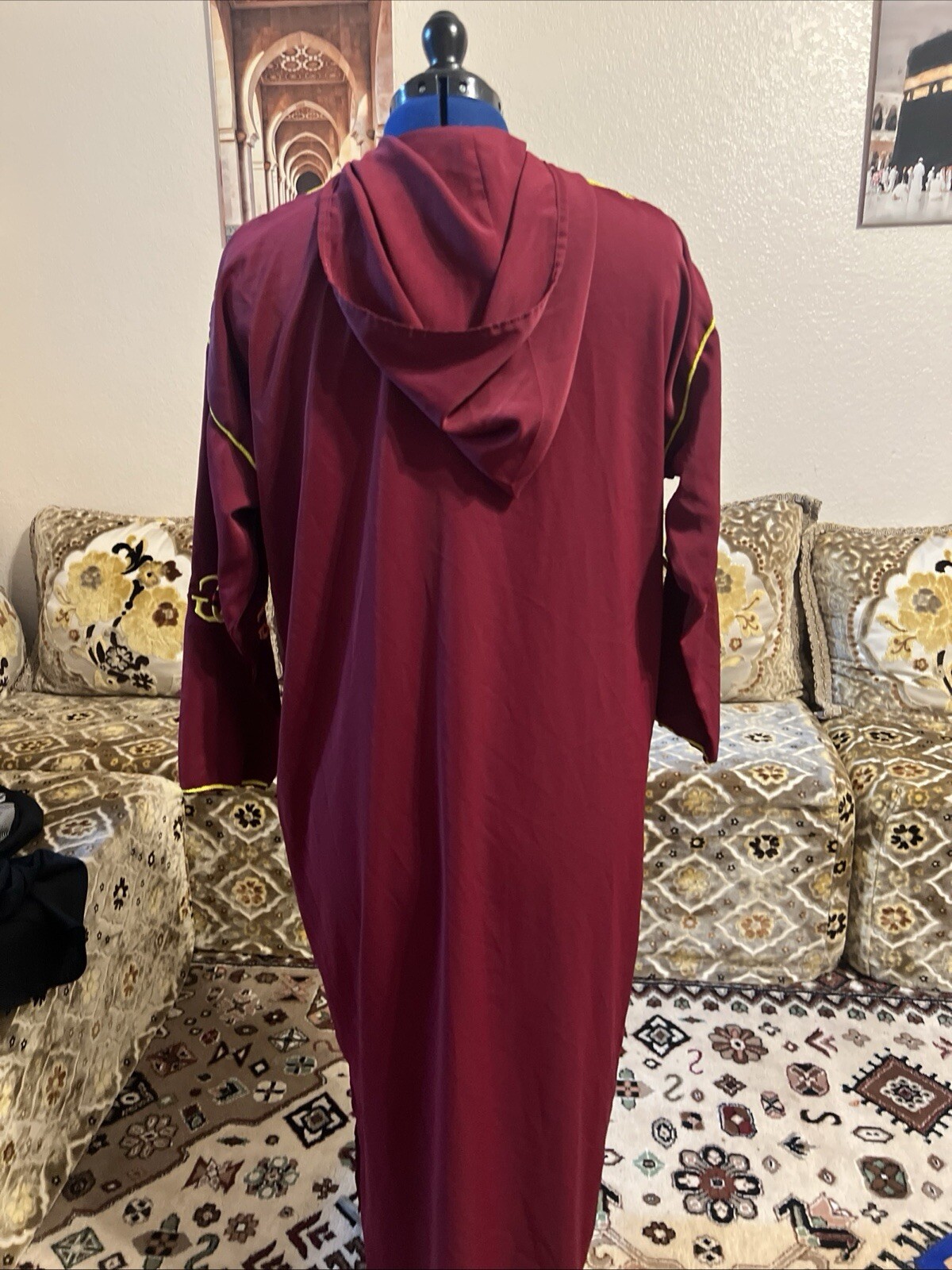 как выглядит Burgundy Hooded Djellaba Moroccan Embroidered Chest Standard Size Casual Women фото
