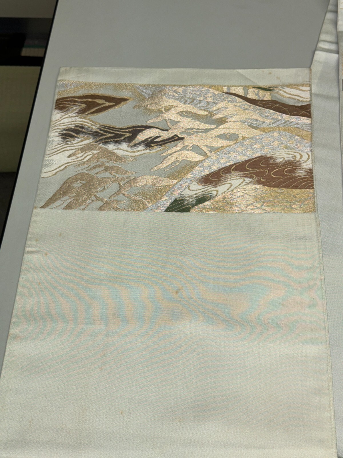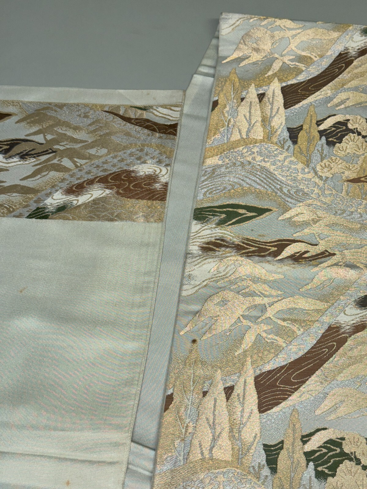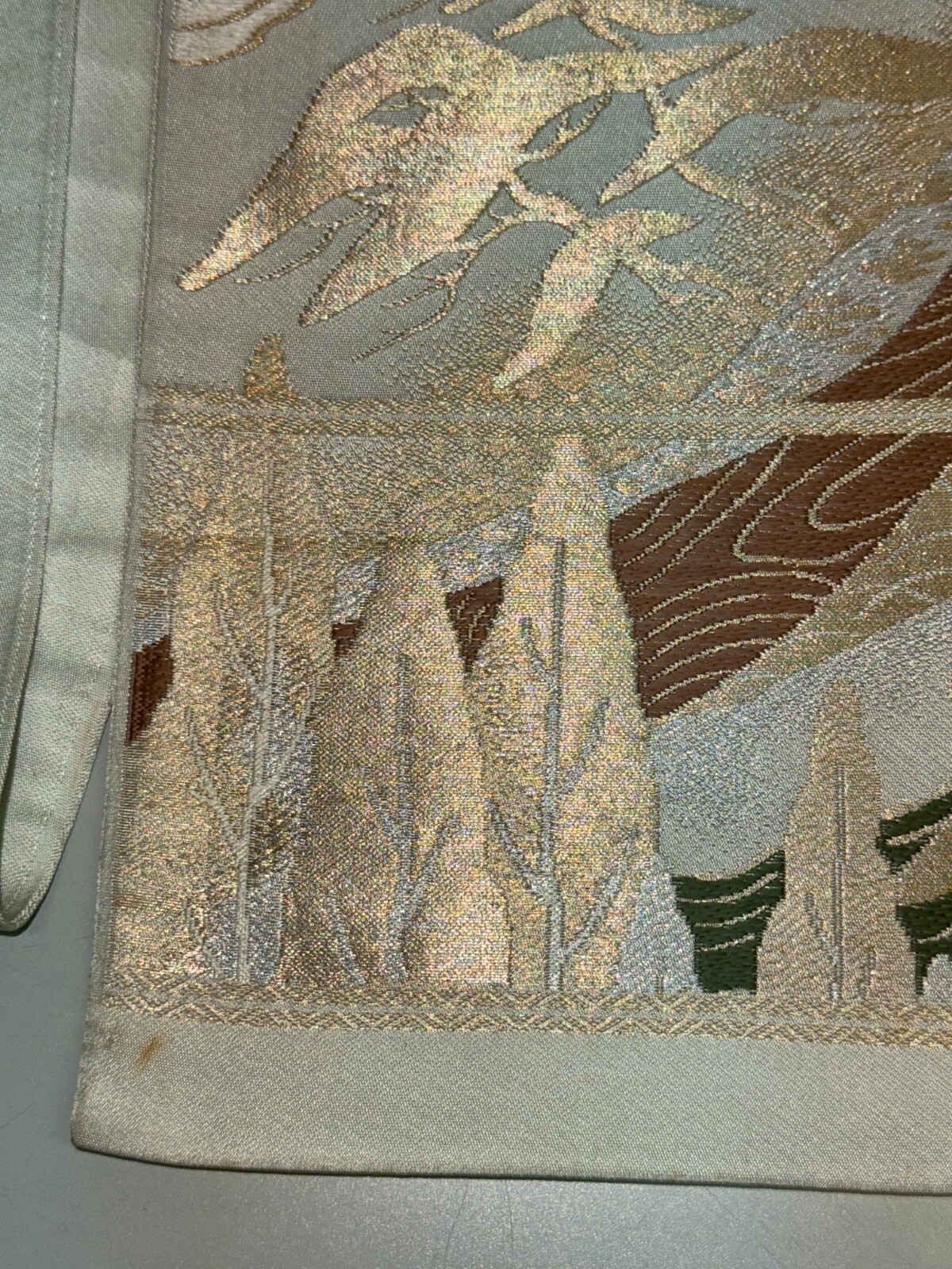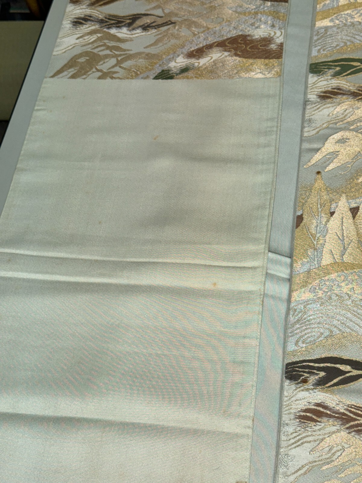 как выглядит Japanese Vintage Kimono Fukuro Obi silk gray japan scenery expensive 157x11.8in фото