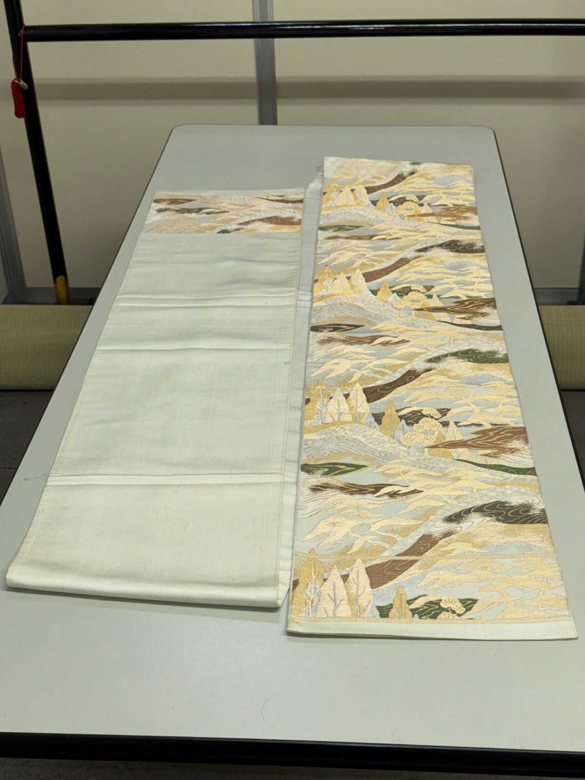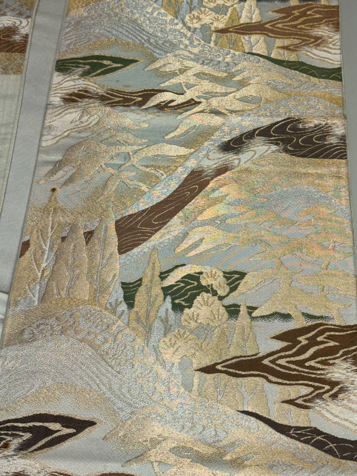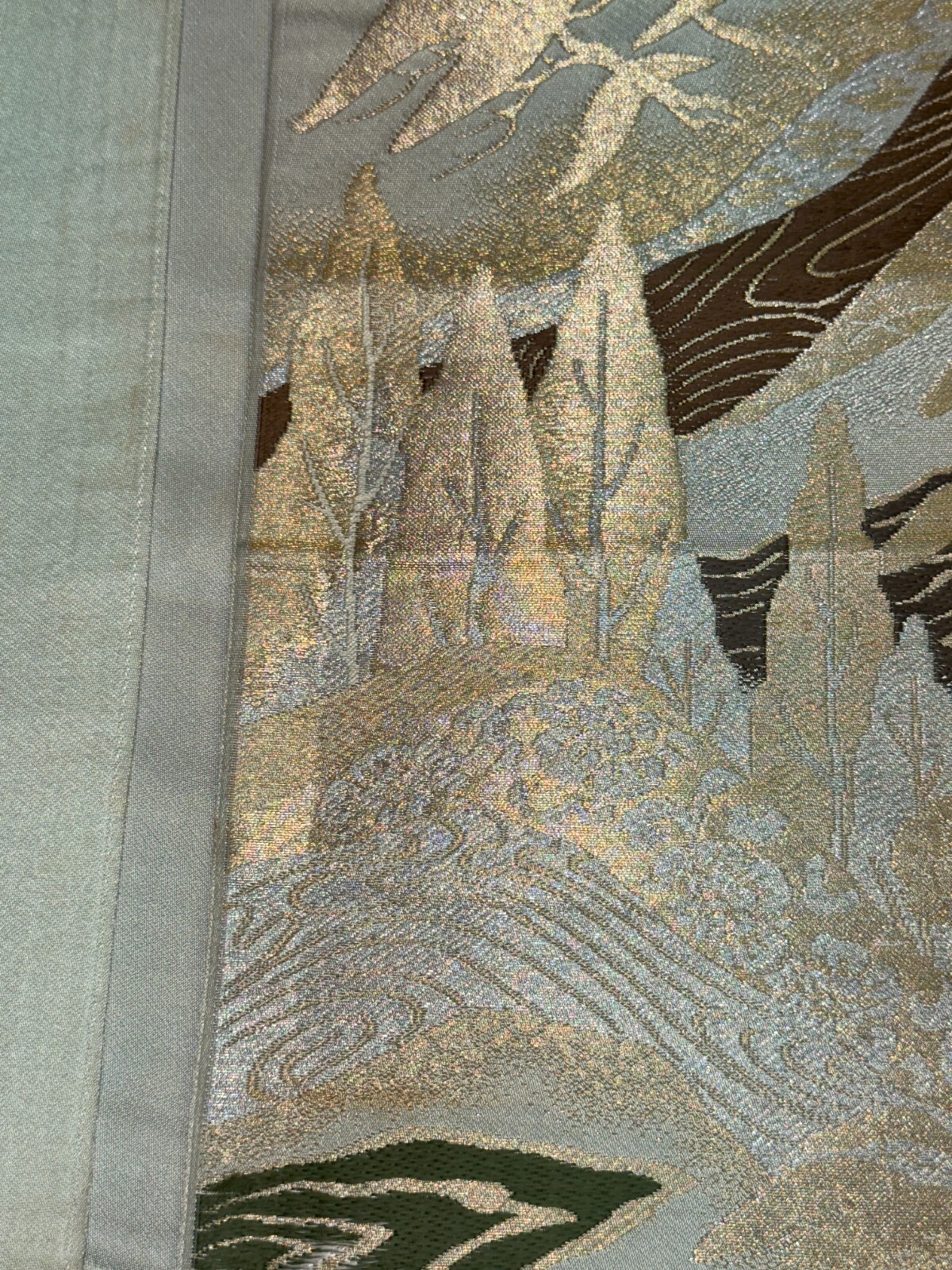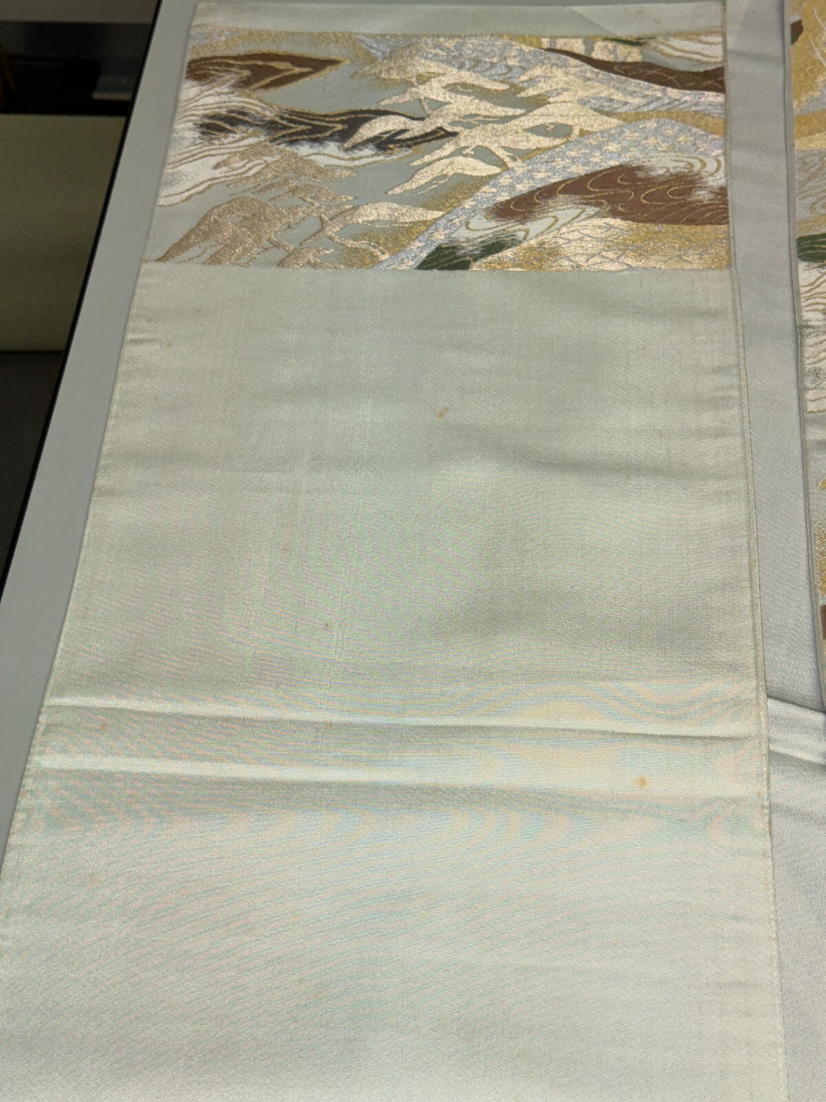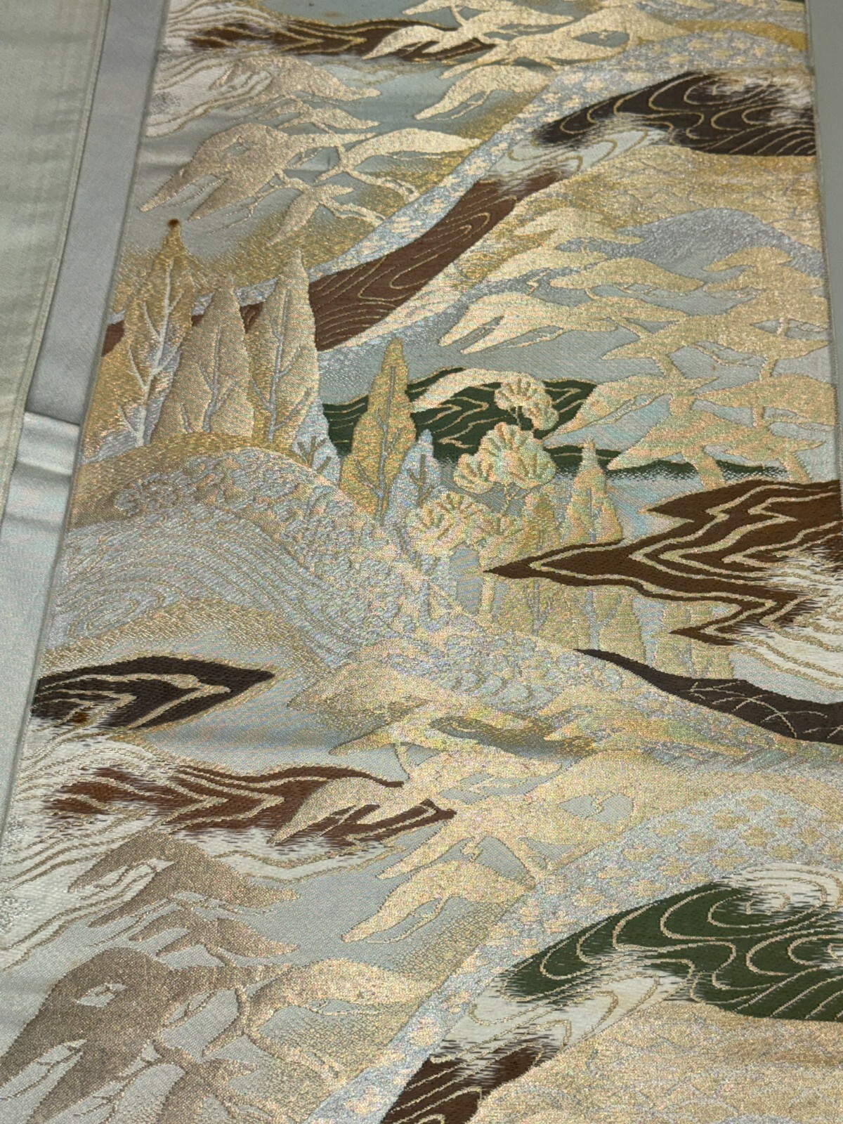 как выглядит Japanese Vintage Kimono Fukuro Obi silk gray japan scenery expensive 157x11.8in фото