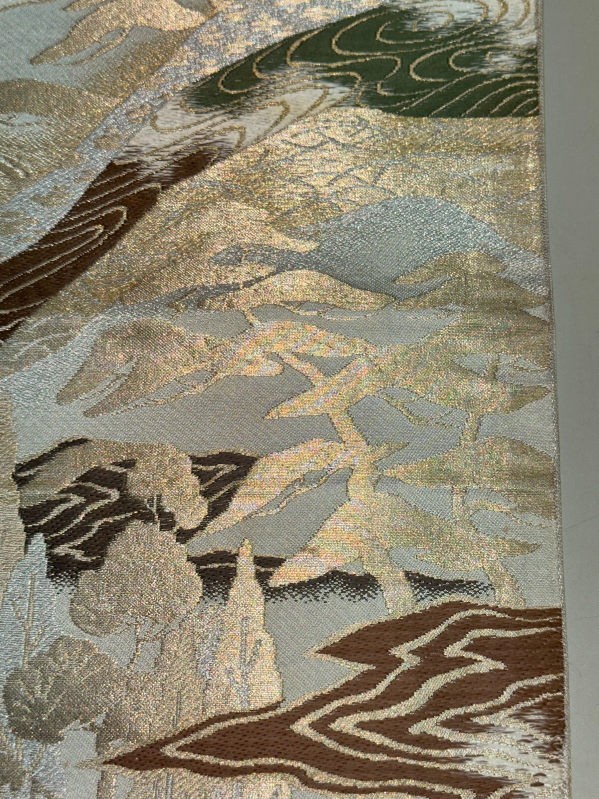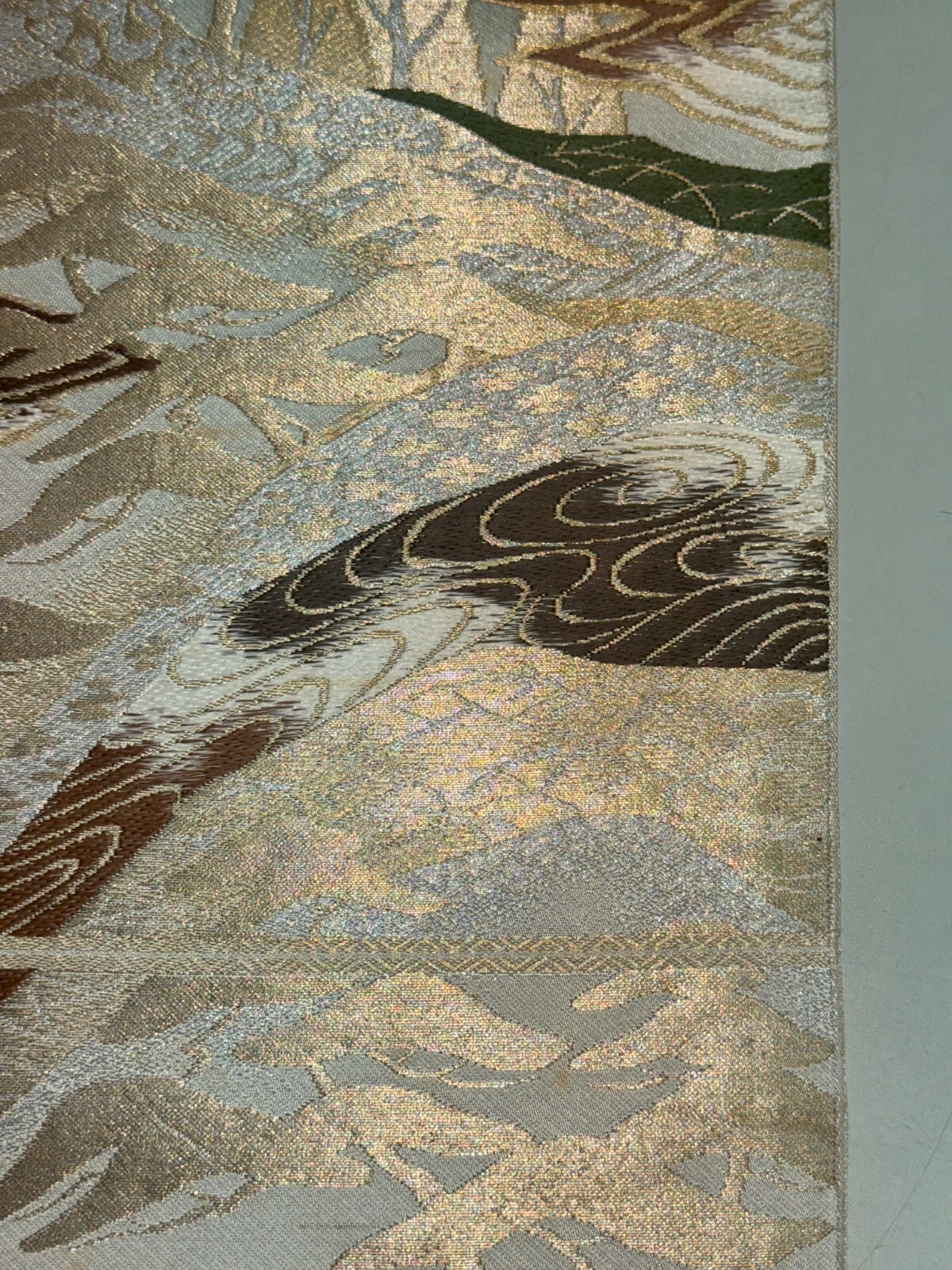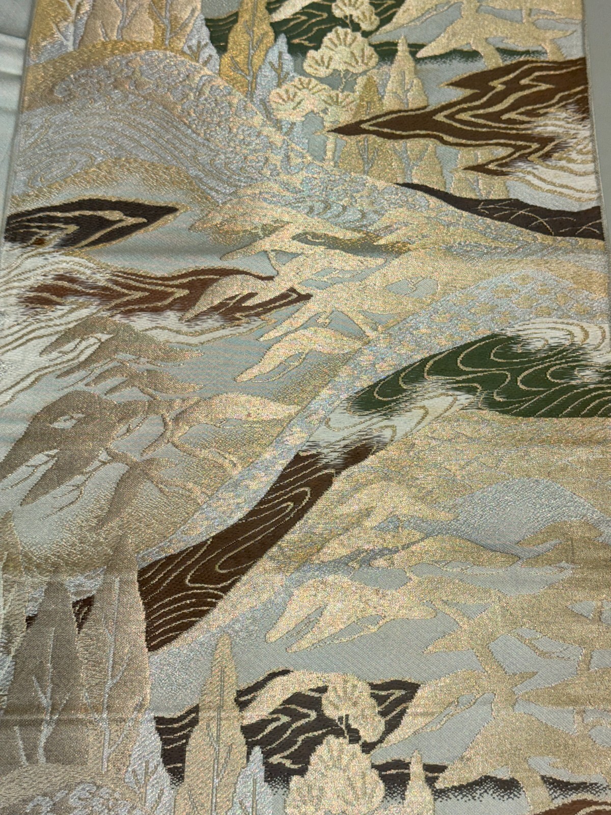 Japanese Vintage Kimono Fukuro Obi silk gray japan scenery expensive 157x11.8in