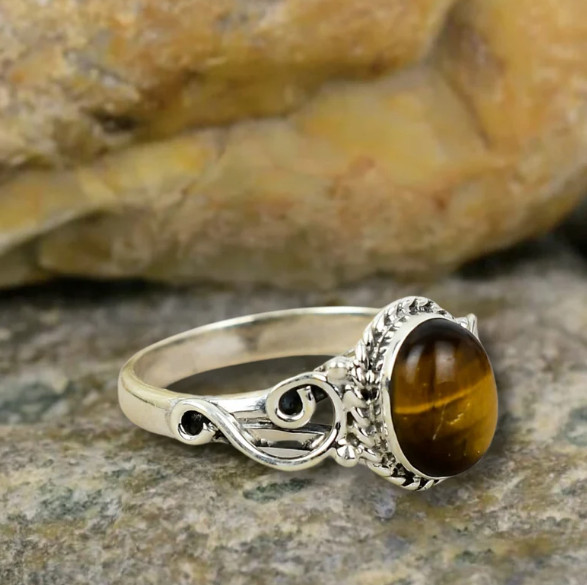 Tiger's Eye Ring Solid 925 Silver Handmade Statement Women Ring All Size SR542