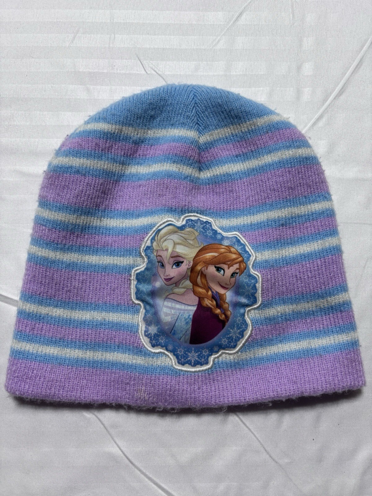 2pc Disney Frozen Beanie Hat Girls Cap Purple Blue Strip