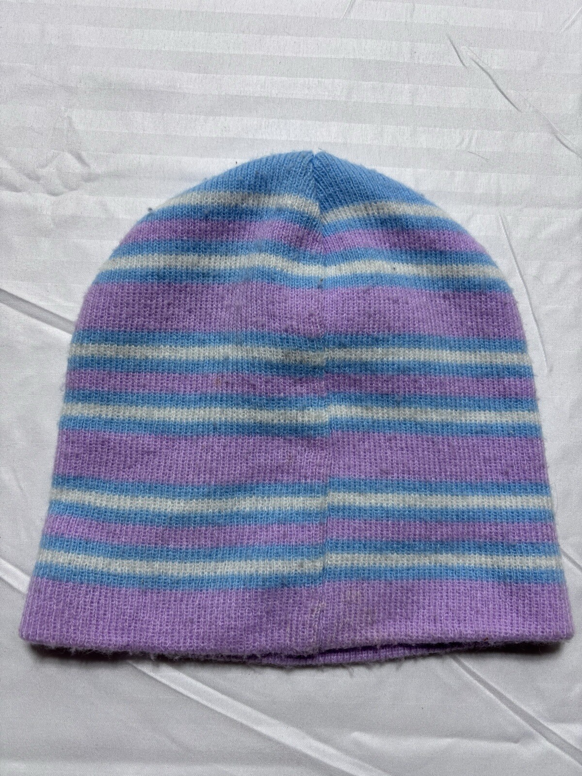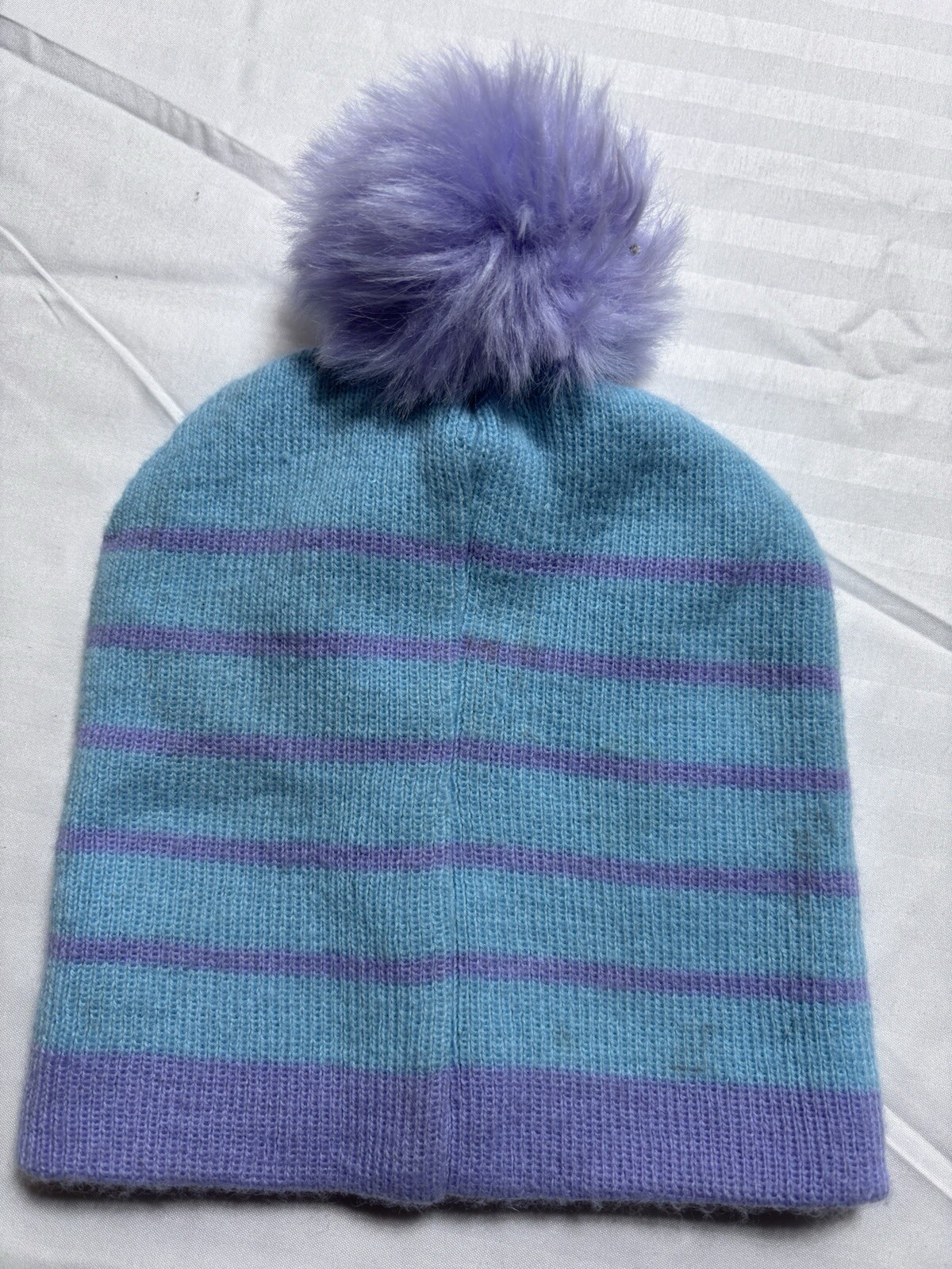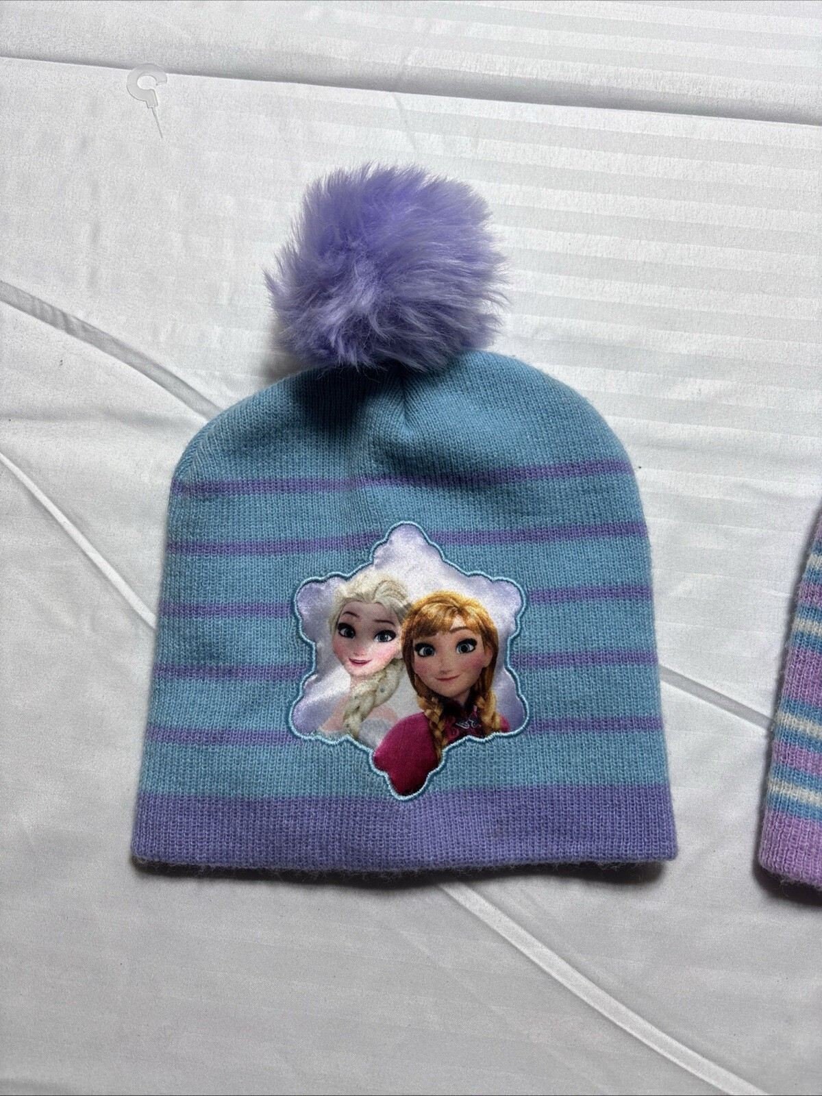 как выглядит 2pc Disney Frozen Beanie Hat Girls Cap Purple Blue Strip фото