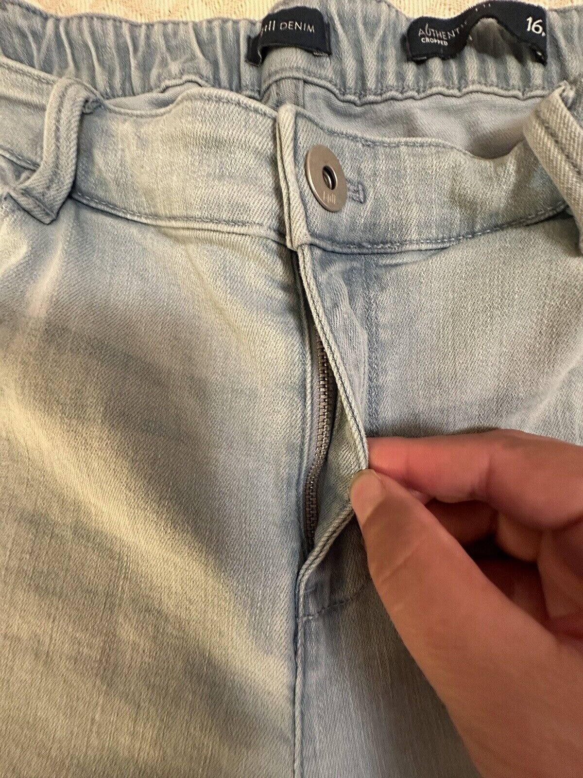 как выглядит J.Jill Womens Jeans Sz 16 Petite Cropped Fringed Hem Stretch Light Wash Straight фото