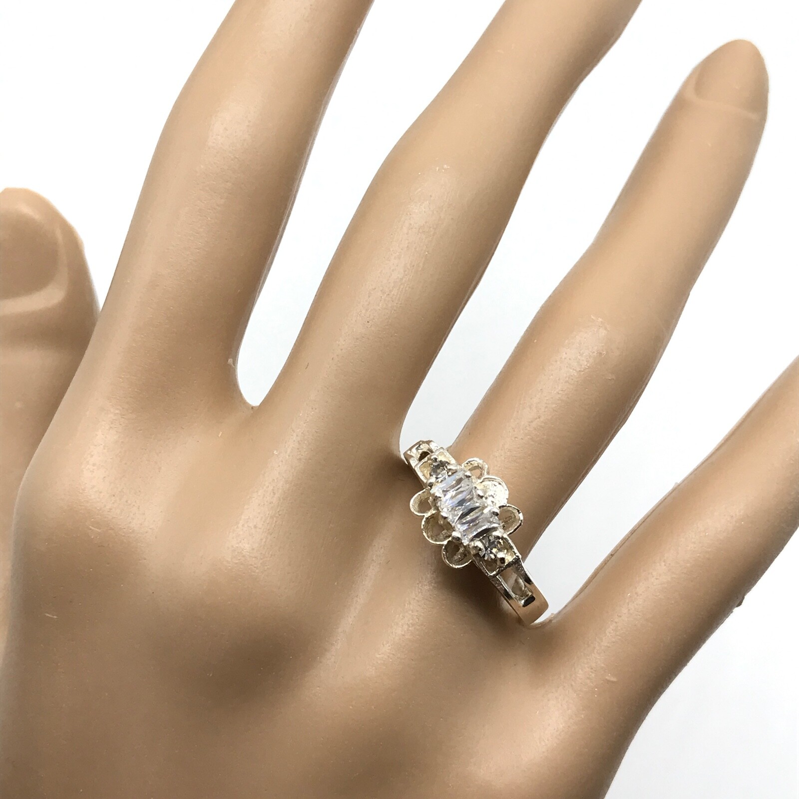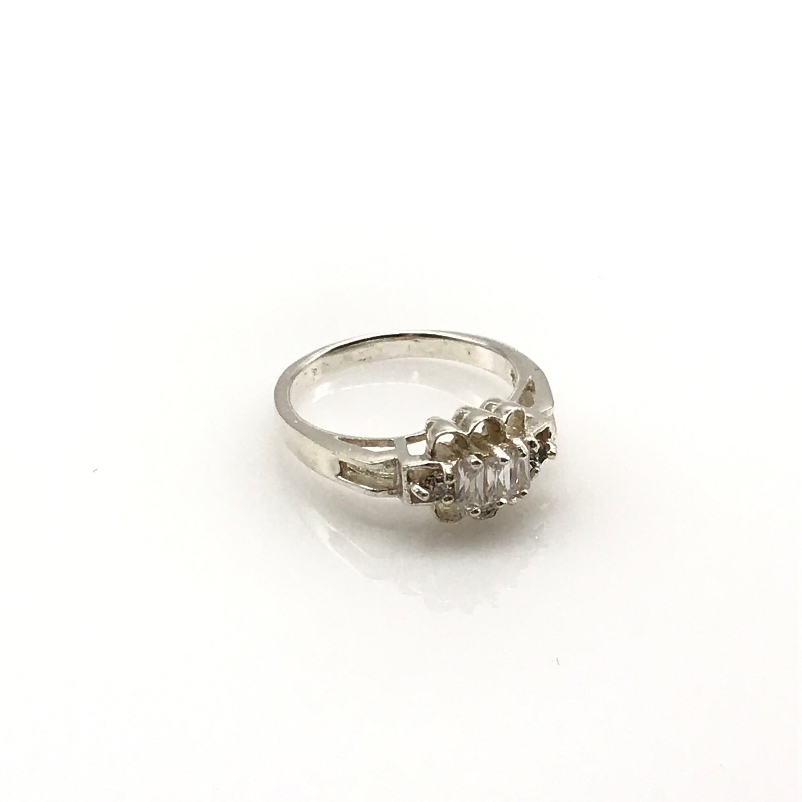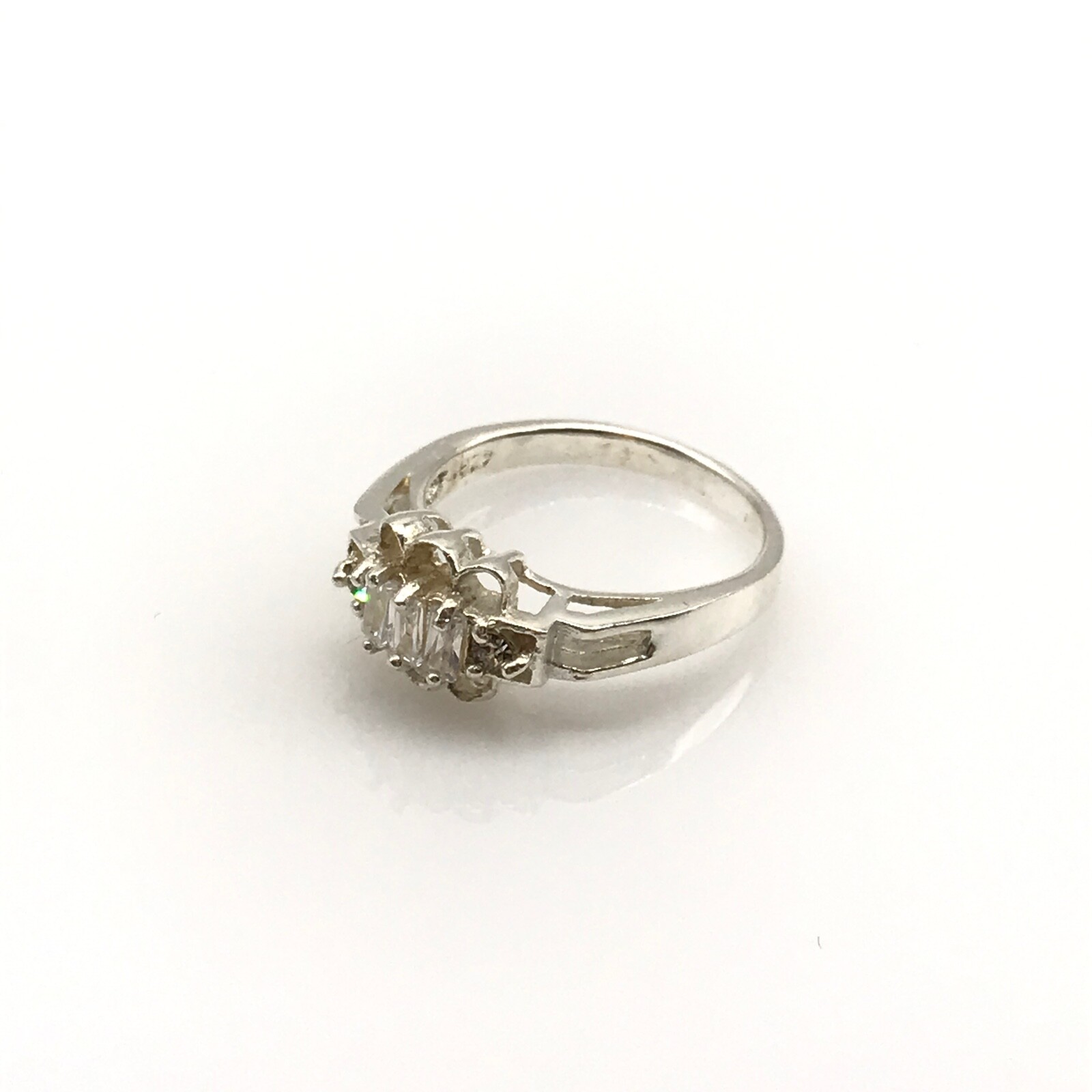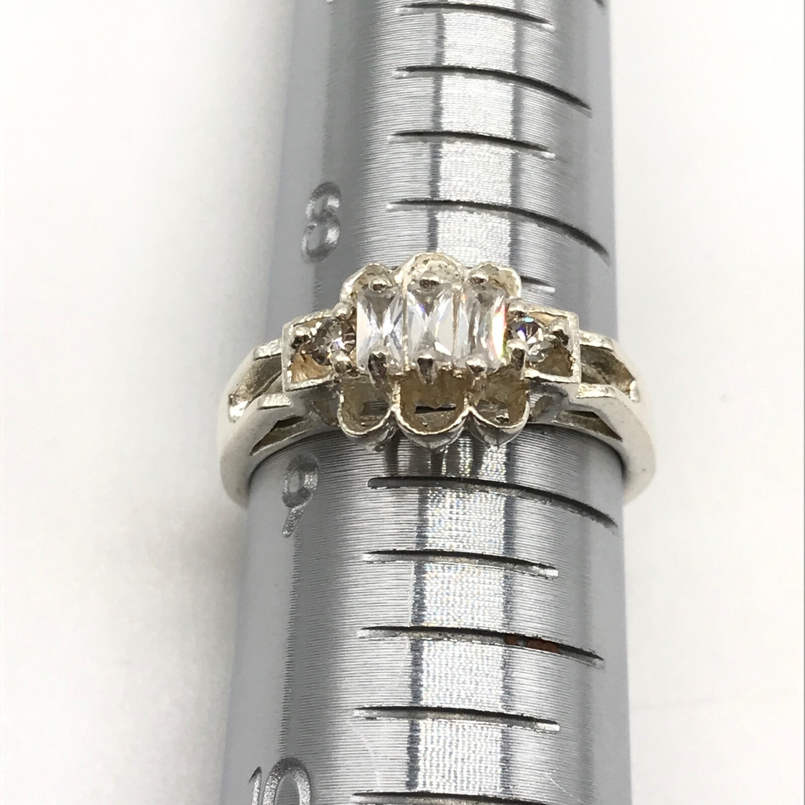 как выглядит Vintage 925 Sterling Silver Clear CZ Ladies Band Ring Size 8.75 фото