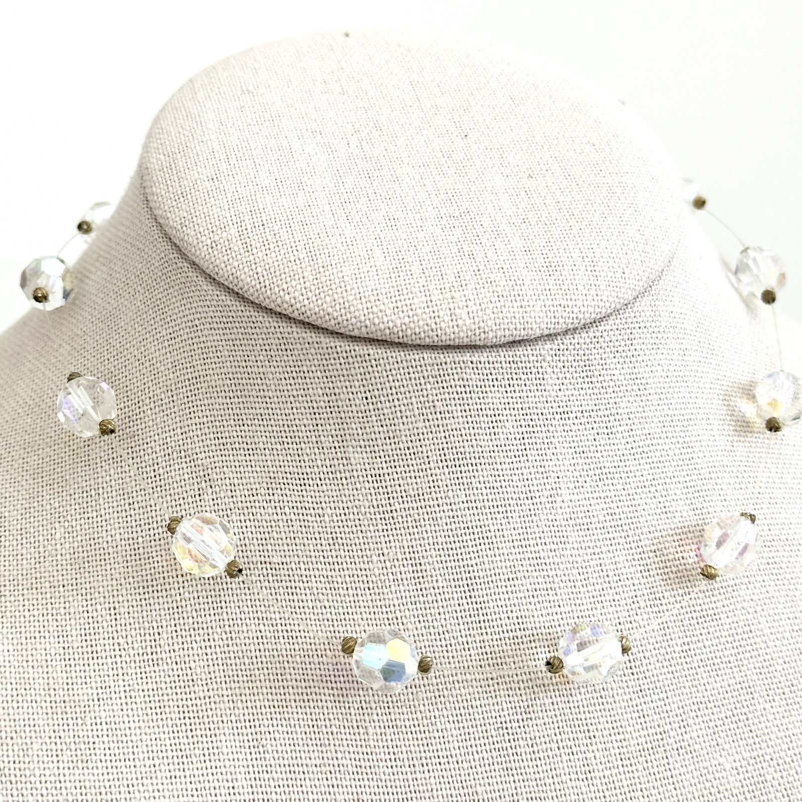 Vintage Floating Aurora Borealis AB Crystal Strand Choker Necklace 15