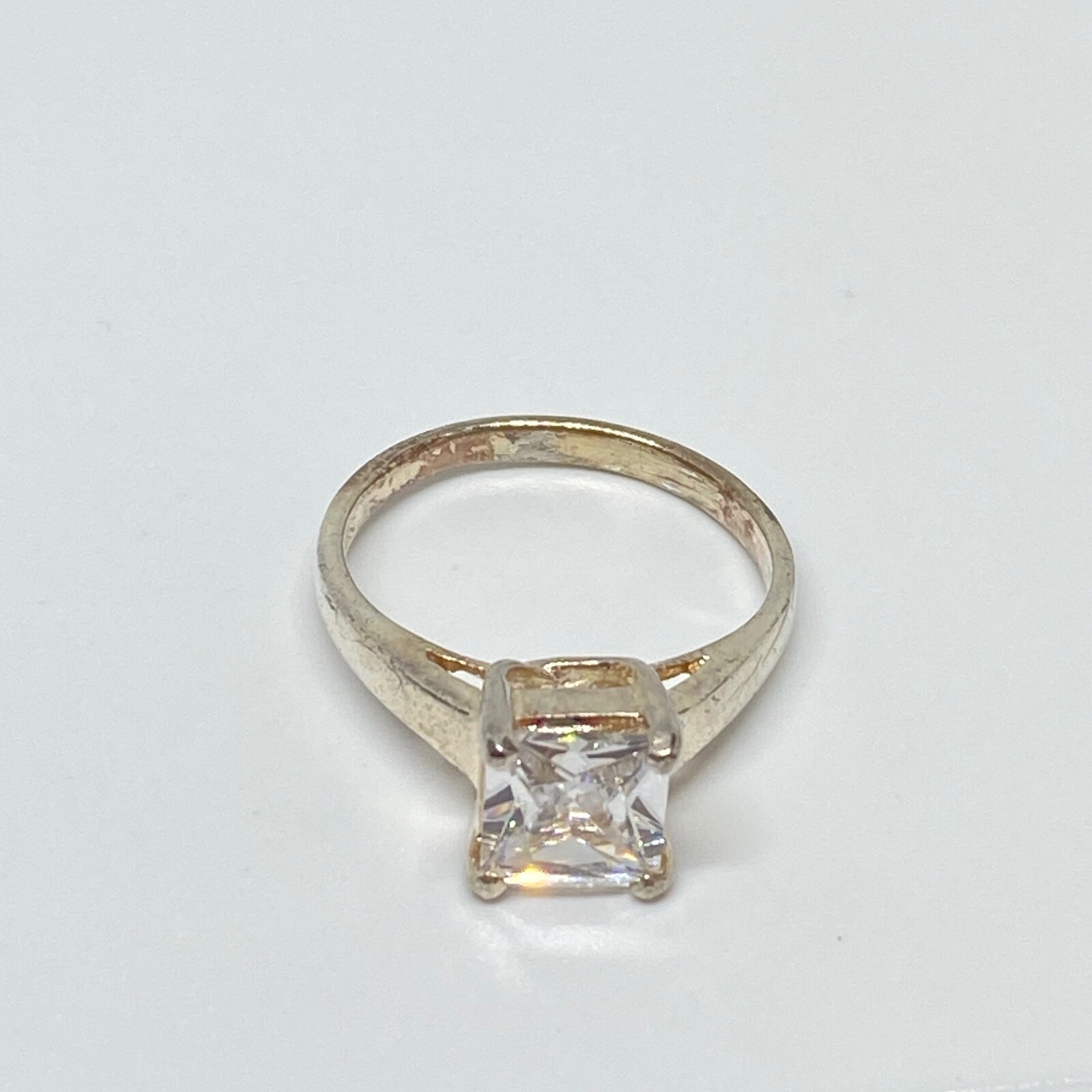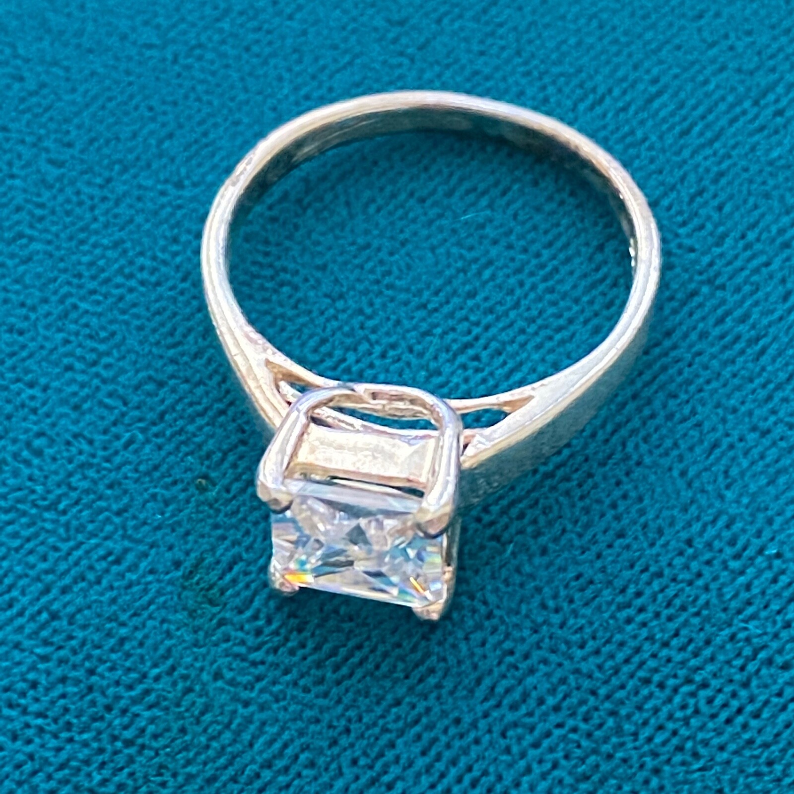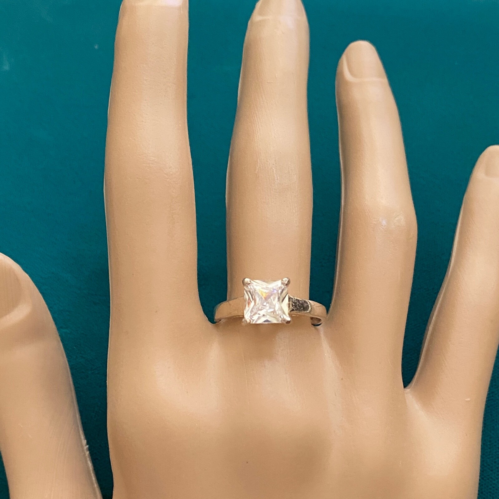 как выглядит Vintage 925 Sterling Silver NF Signed Clear CZ Solitaire Band Ring Size 7 фото