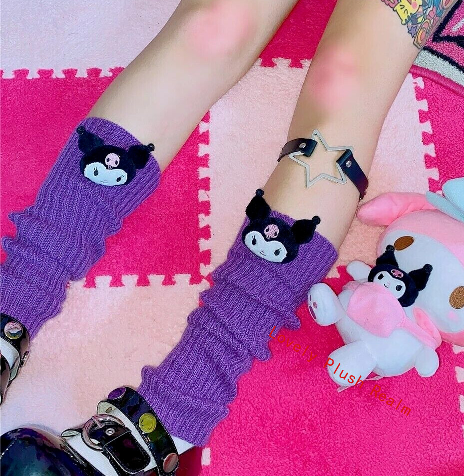 Characters Kuromi Soft Plush Winter Knit Long Sock Purple Leg Warmers