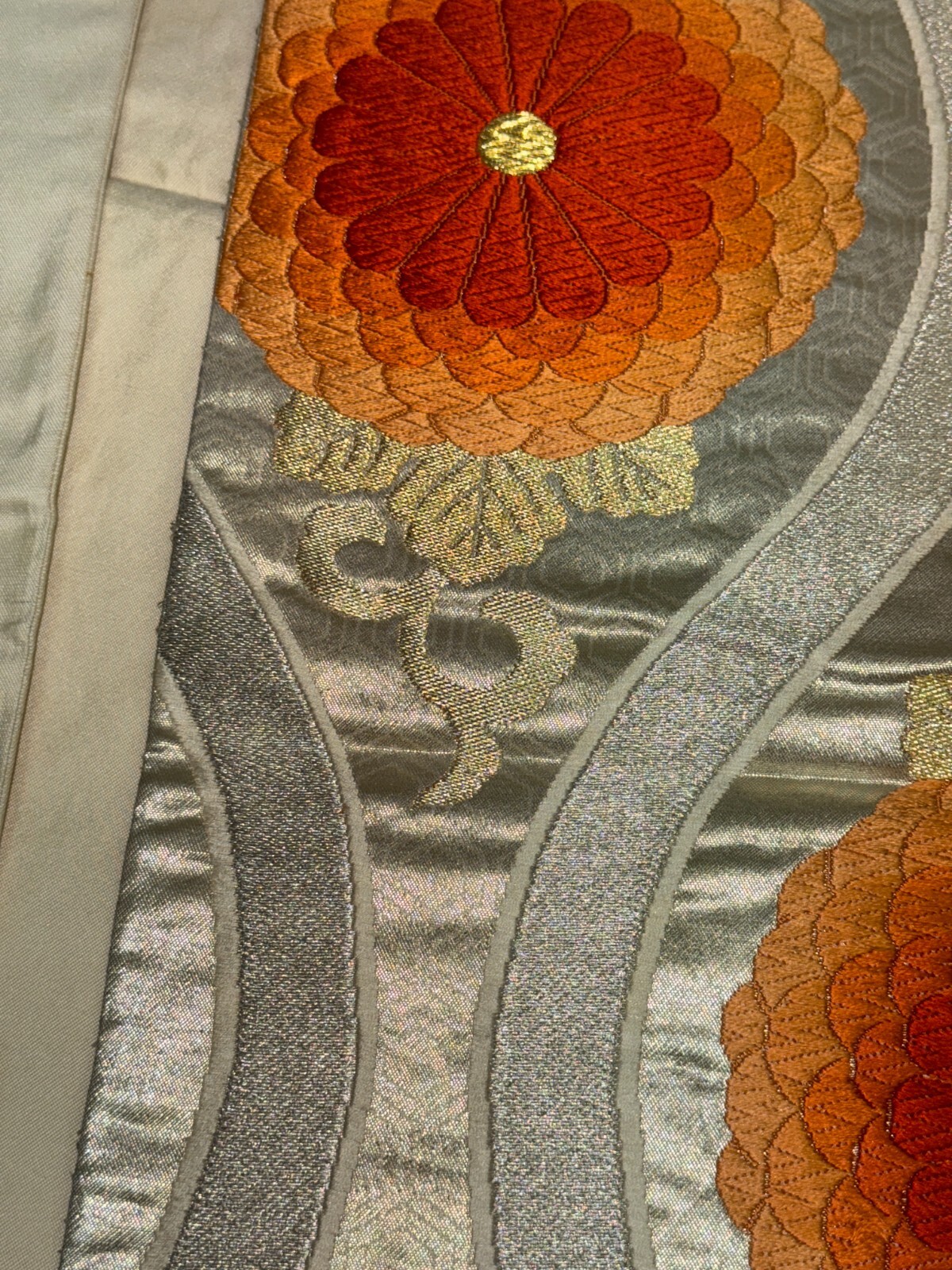 как выглядит Japanese Vintage Kimono Fukuro Obi silk Gold Embroidery Expensive 166.1x11.8in фото