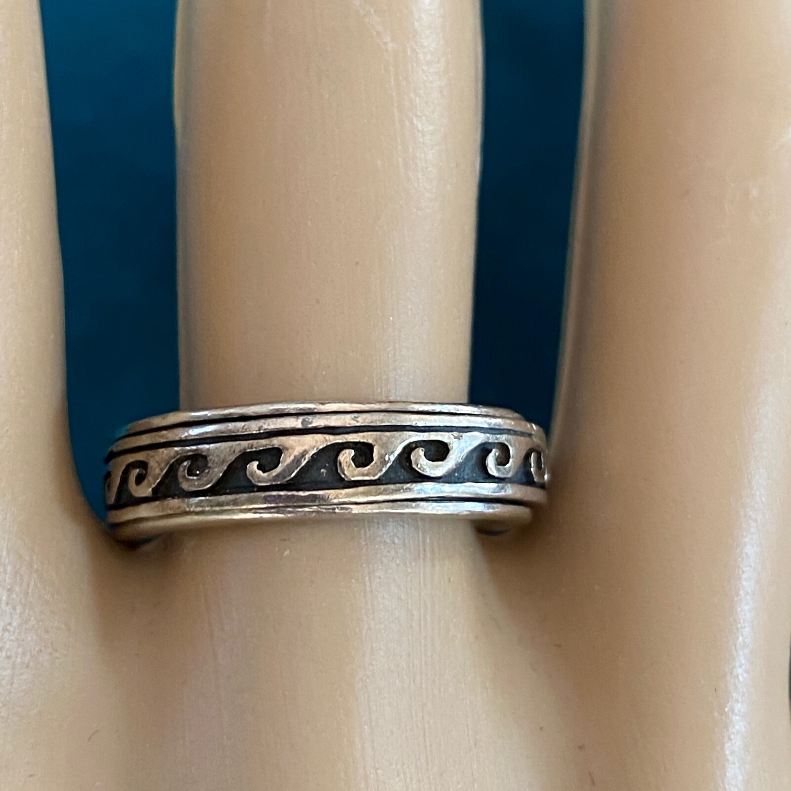 как выглядит Vintage 925 Sterling Silver Wave Design Band Ring Size 7 фото