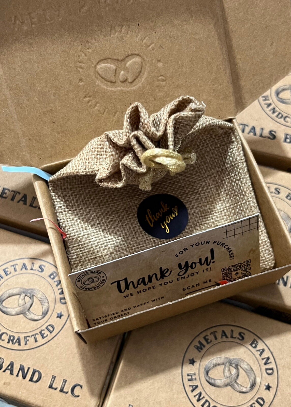 Wavy Damascus Ring with Brass Sleeve Handmade Durable Couple Band Jewelry