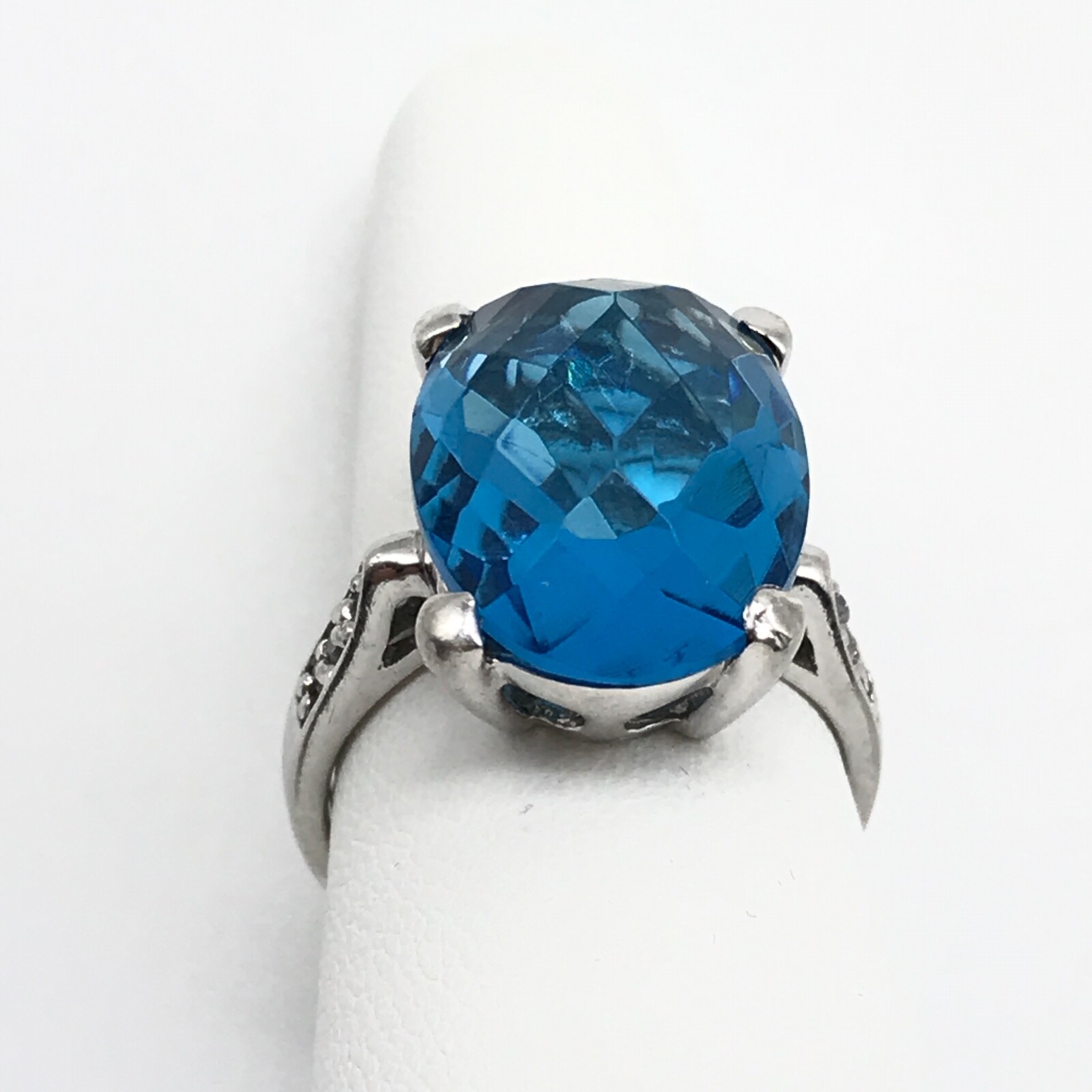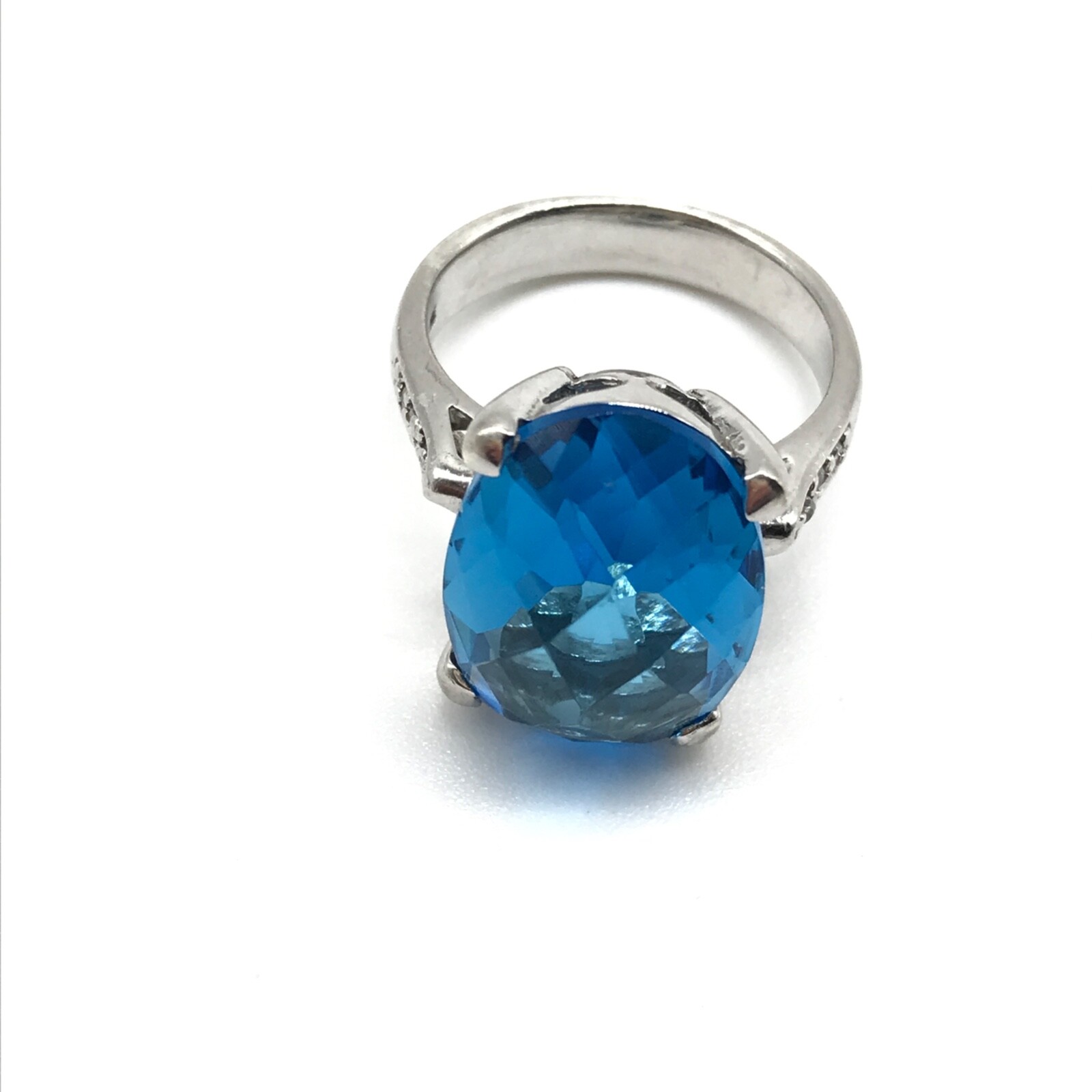 925 Sterling Silver Faceted Blue Tone Cubic Zirconia CZ Ring Size 7.75
