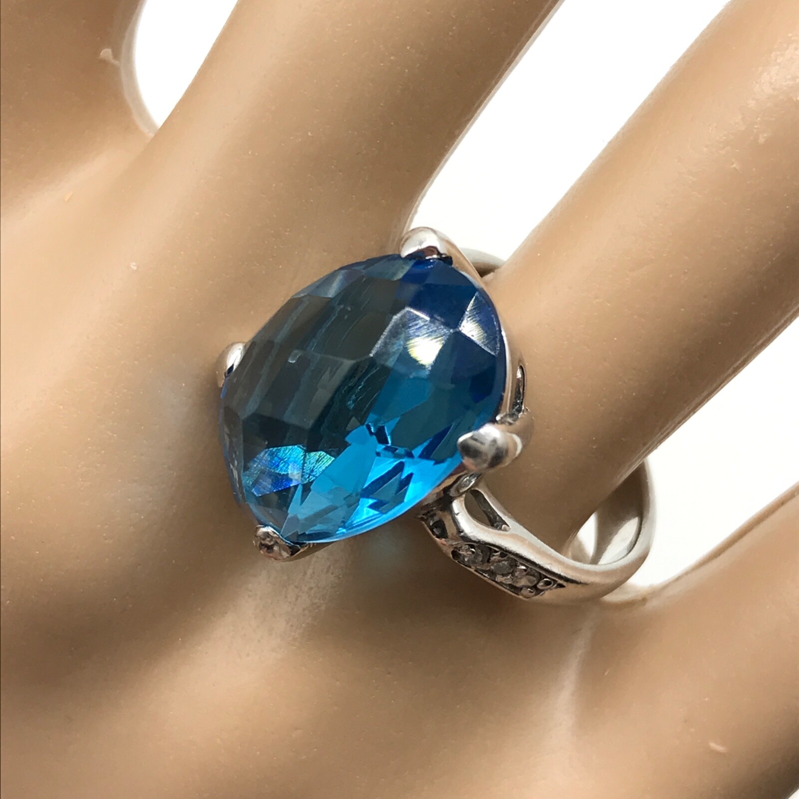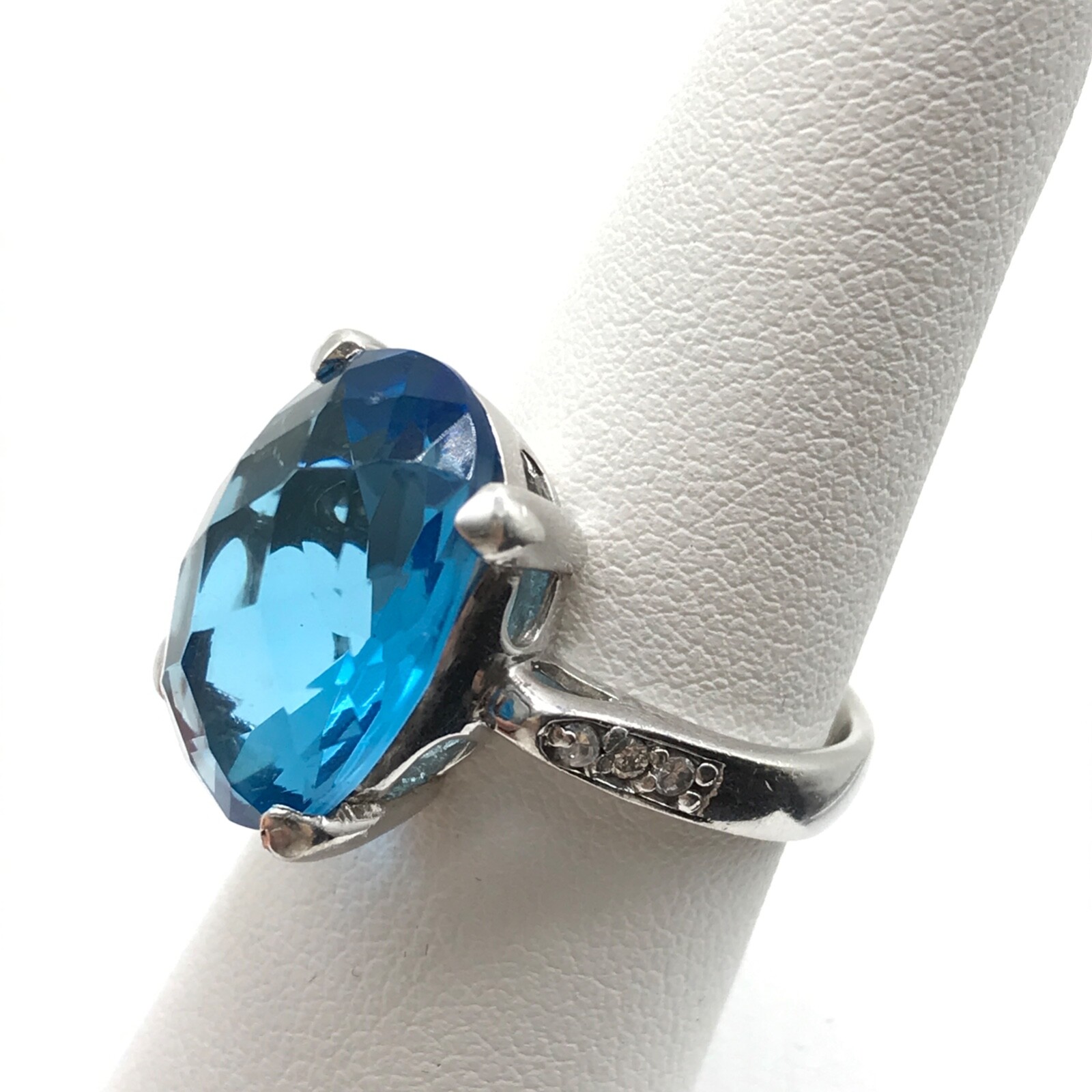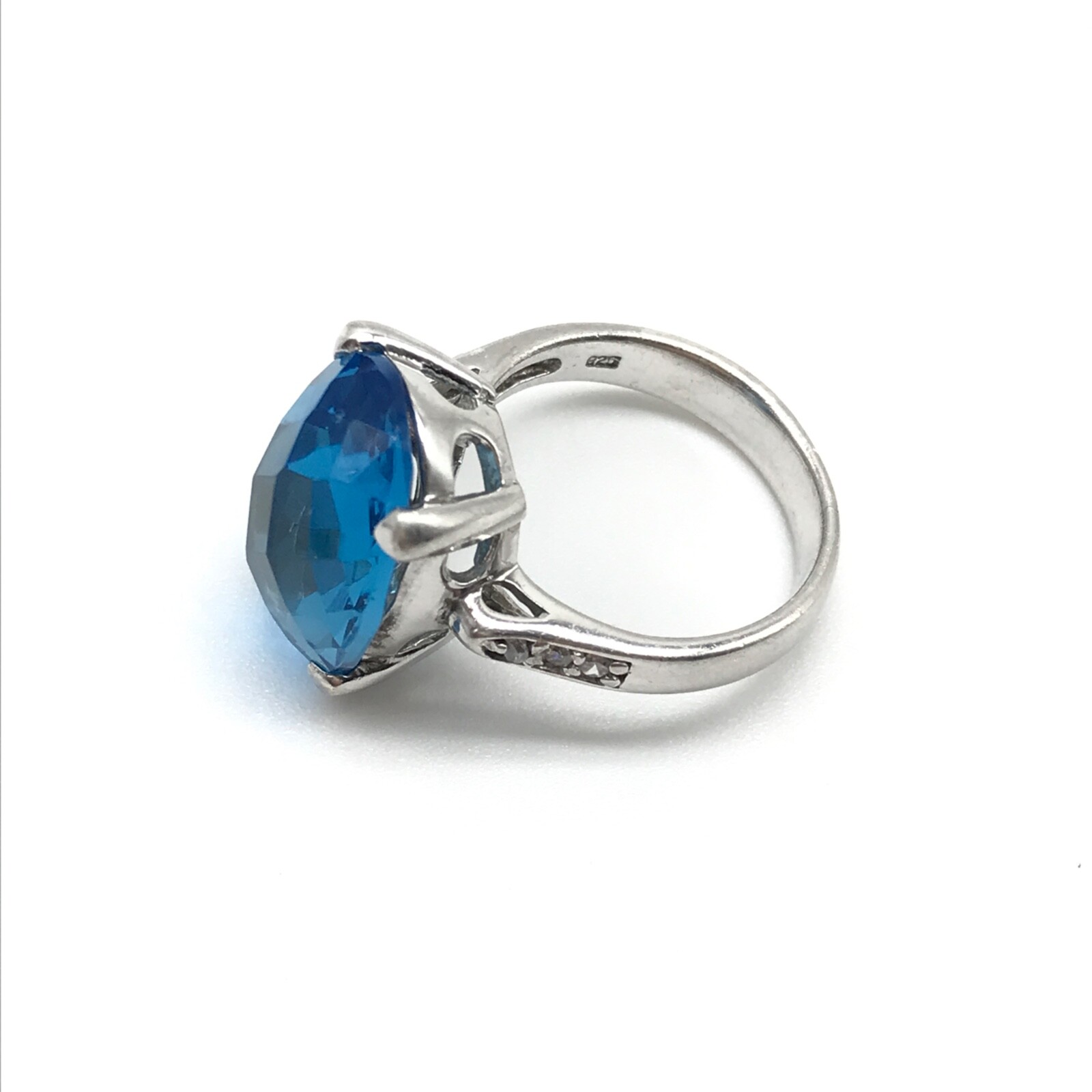 как выглядит 925 Sterling Silver Faceted Blue Tone Cubic Zirconia CZ Ring Size 7.75 фото