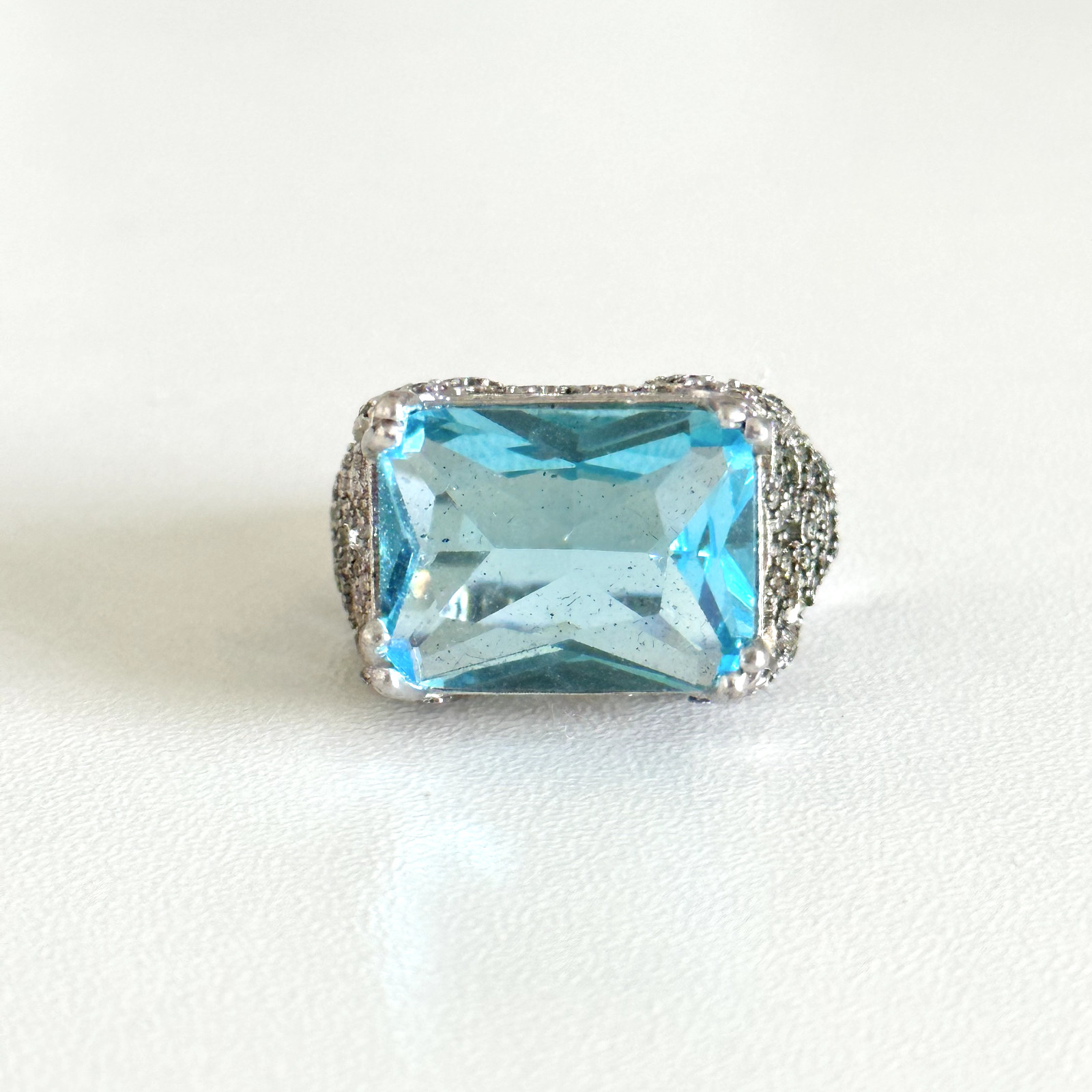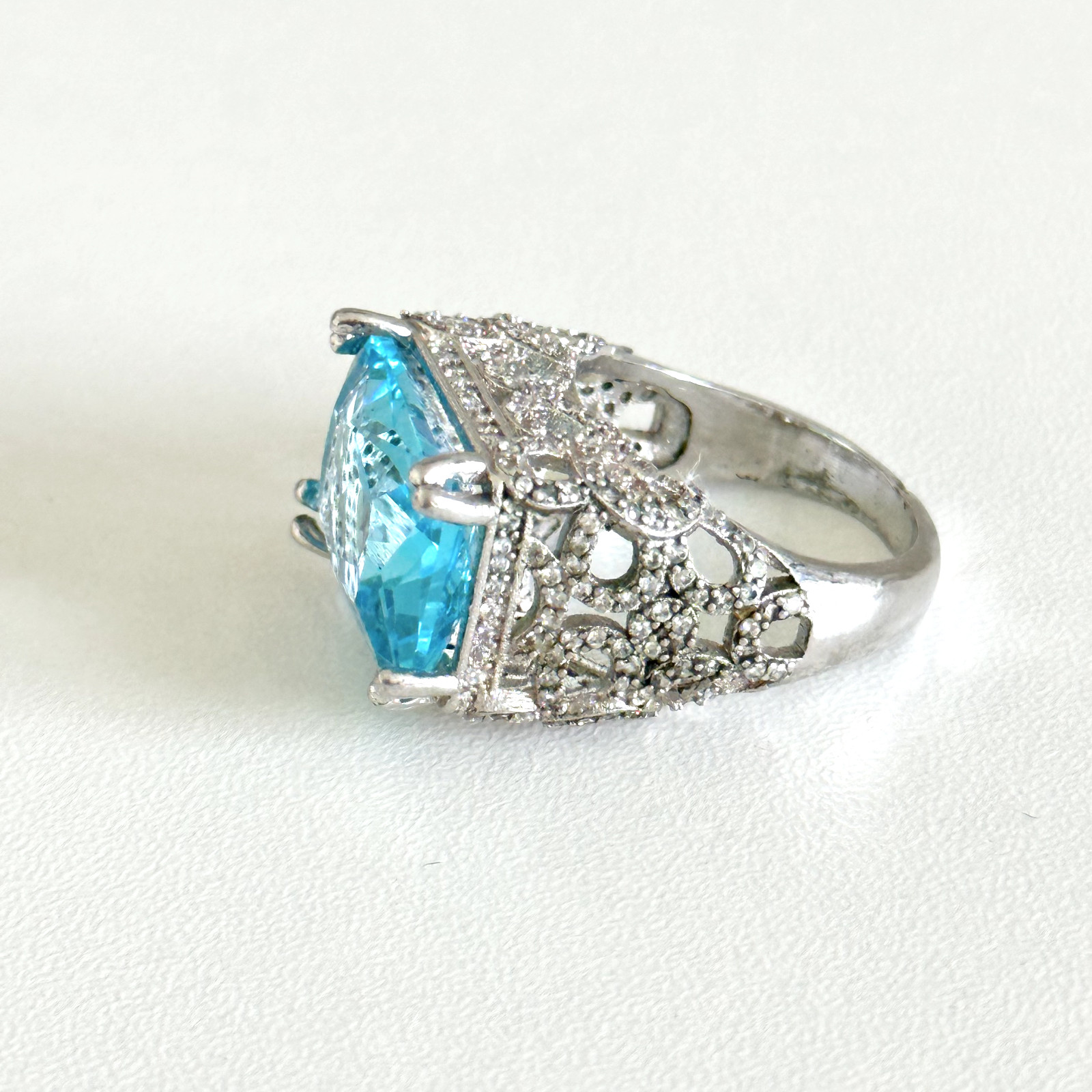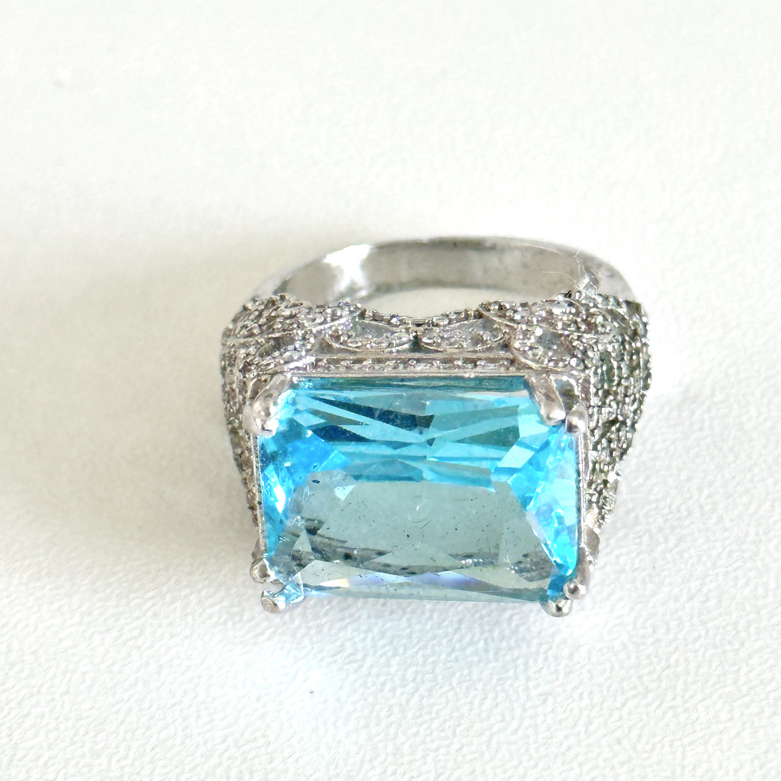 как выглядит 925 Sterling Silver Blue Clear Cubic Zirconia CZ Ladies Statement Ring Size 7 фото