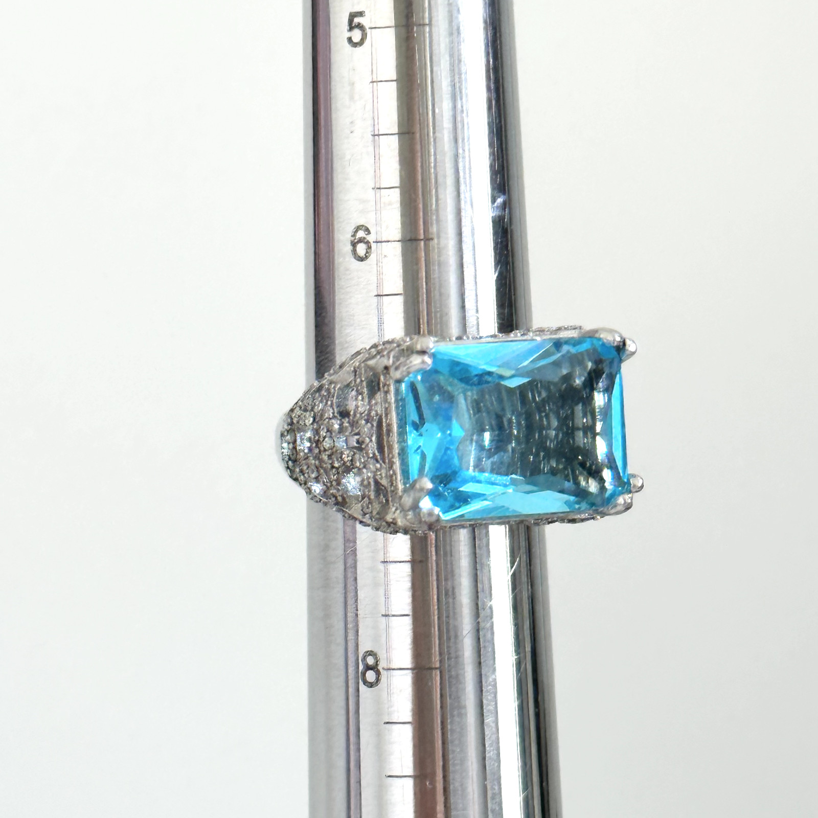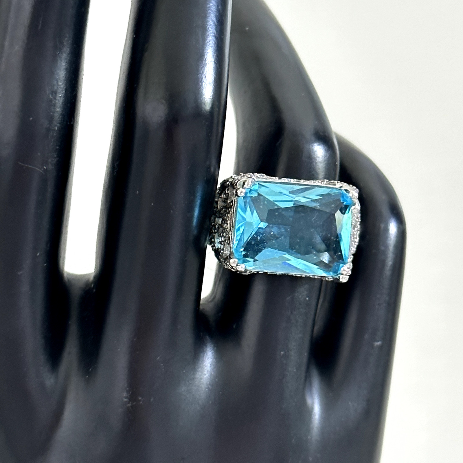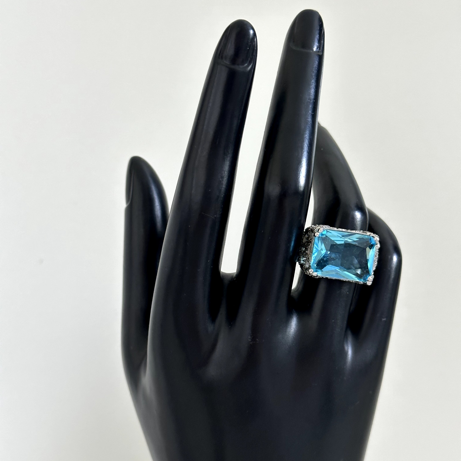 925 Sterling Silver Blue Clear Cubic Zirconia CZ Ladies Statement Ring Size 7